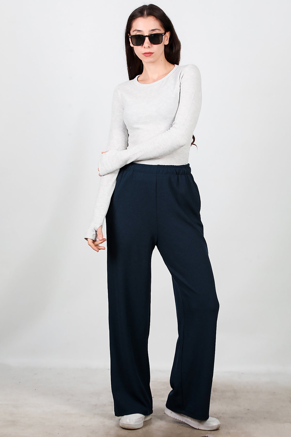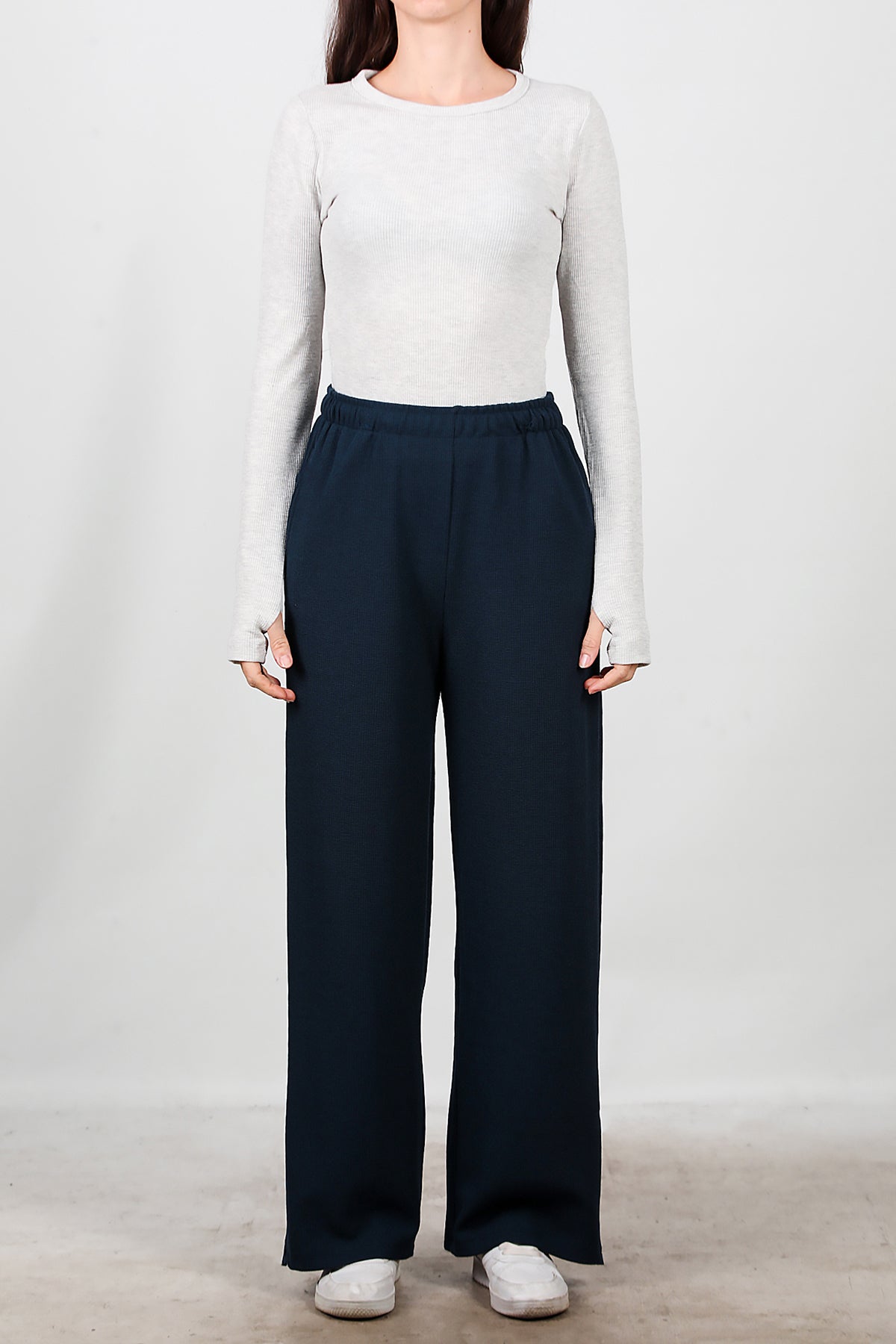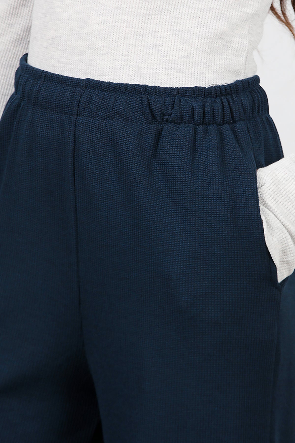 Kadın Bol Paça Waffle Eşofman Koyu Lacivert