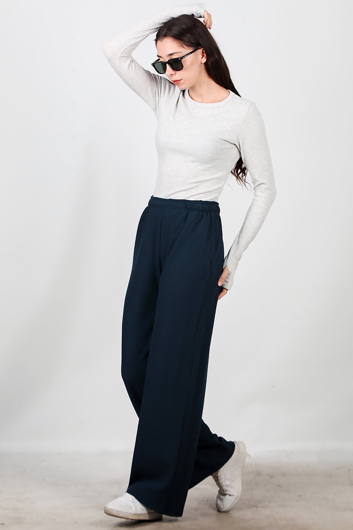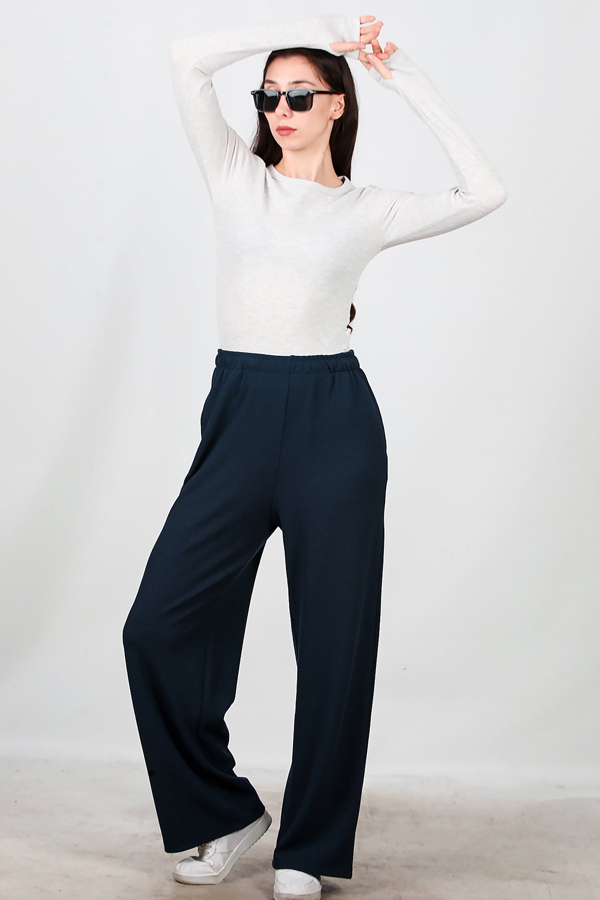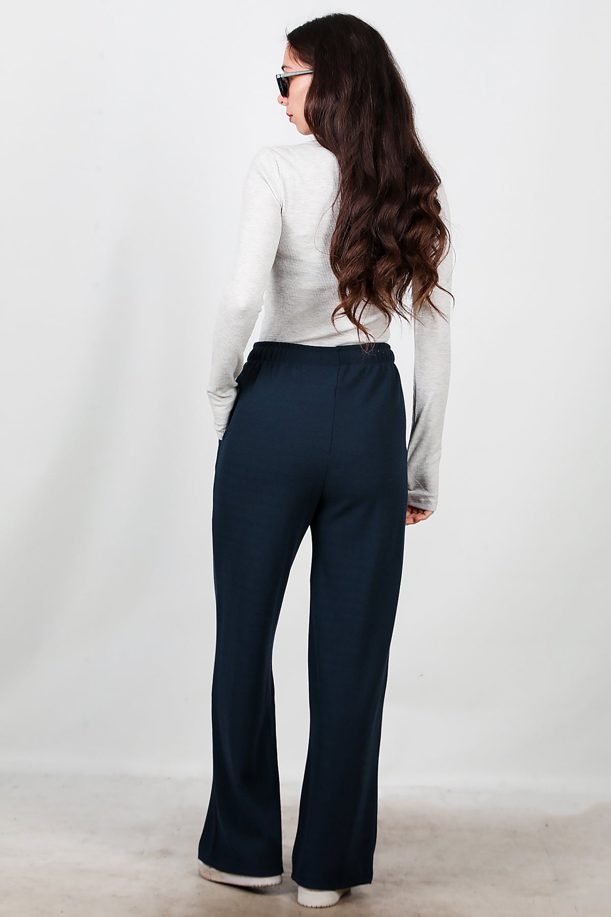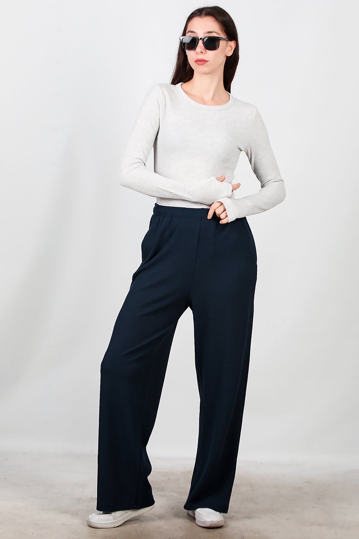 Kadın Bol Paça Waffle Eşofman Koyu Lacivert