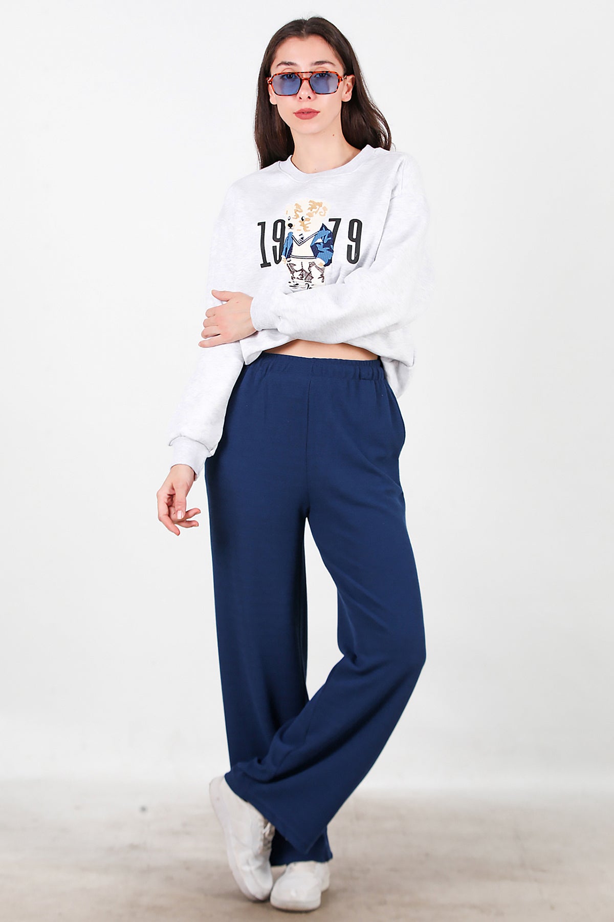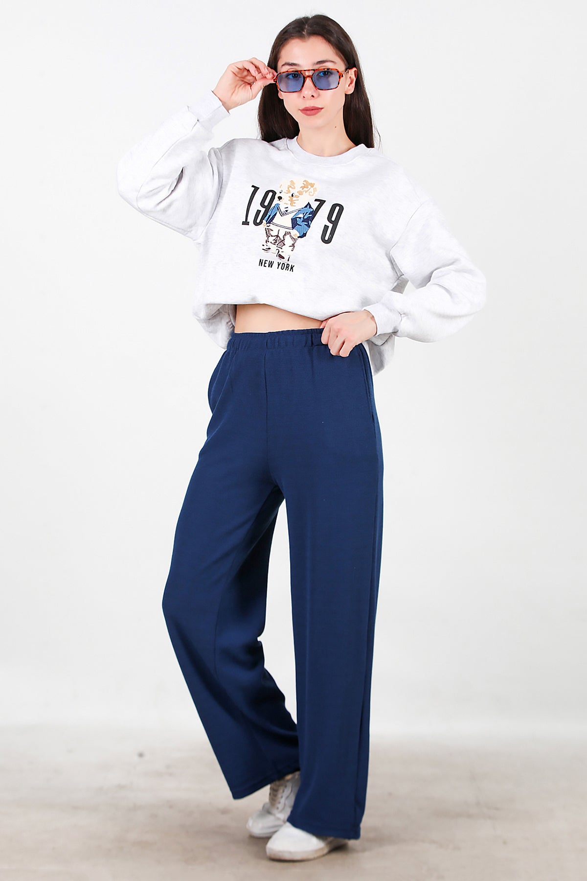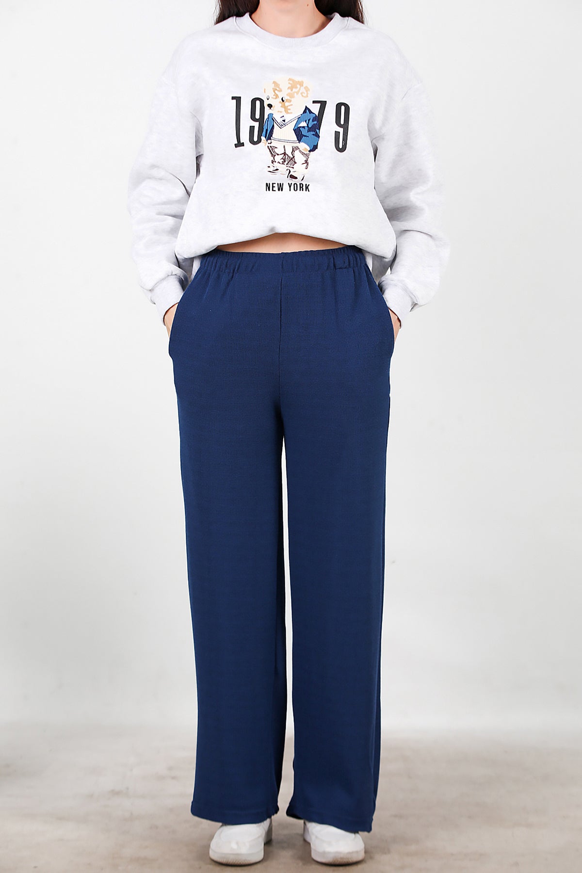 Kadın Bol Paça Waffle Eşofman Lacivert
