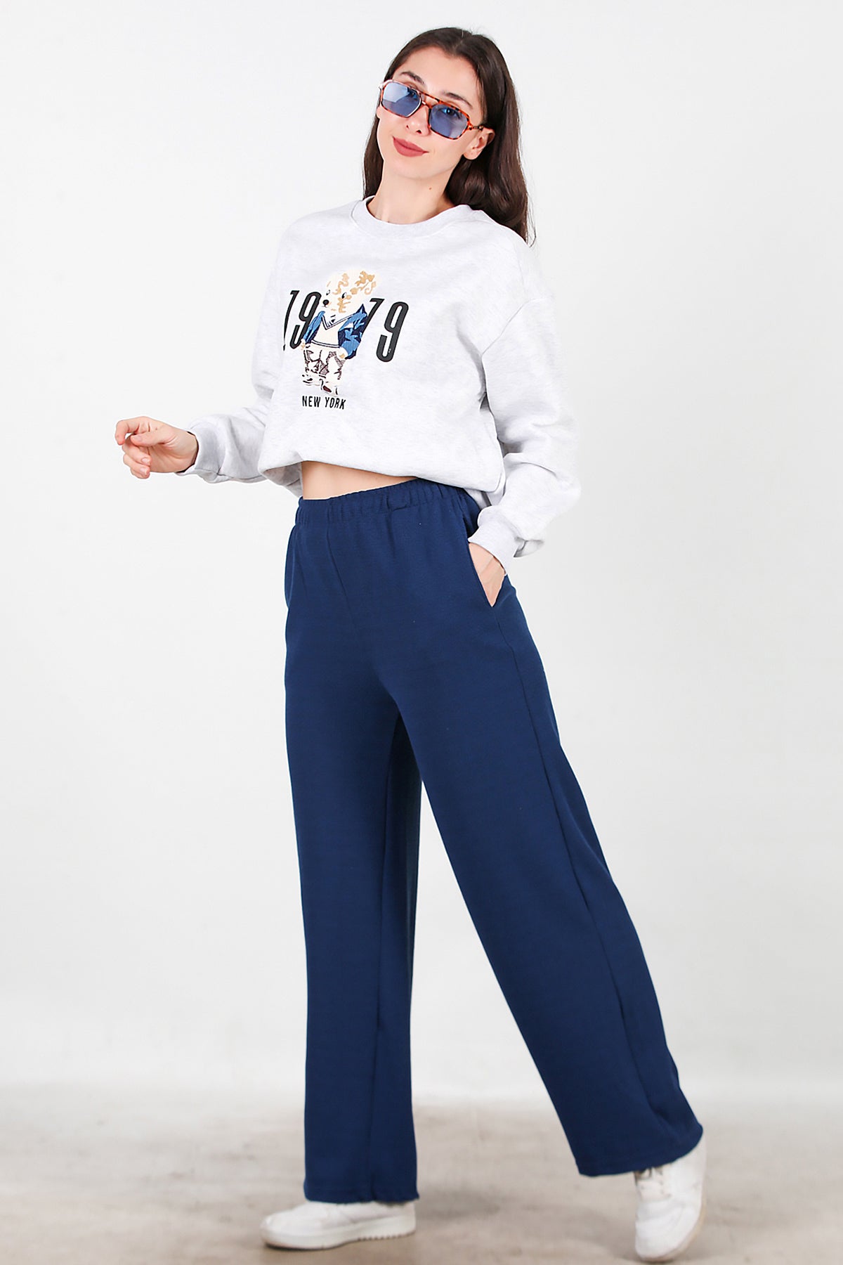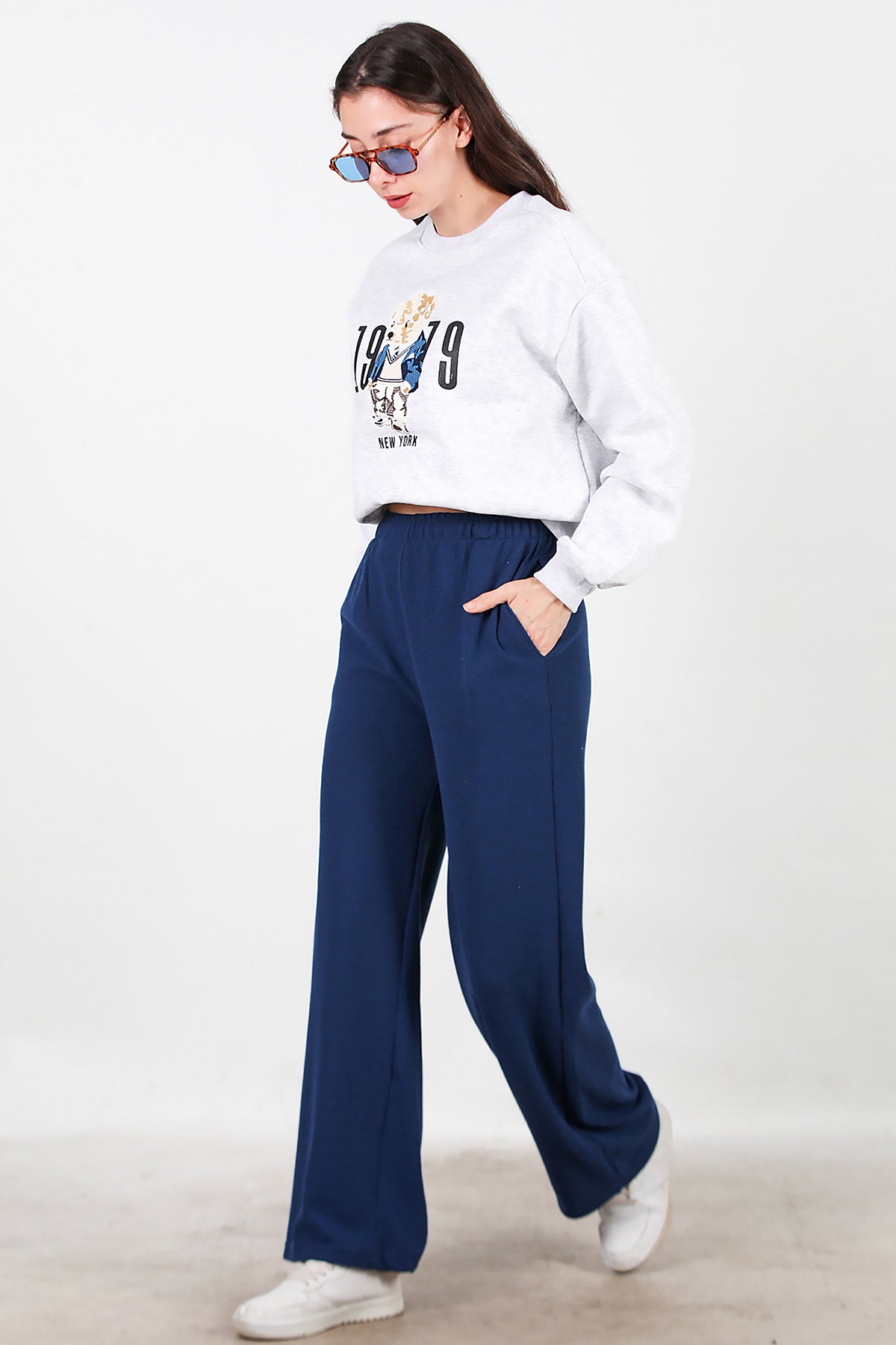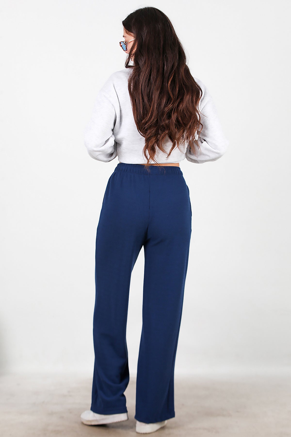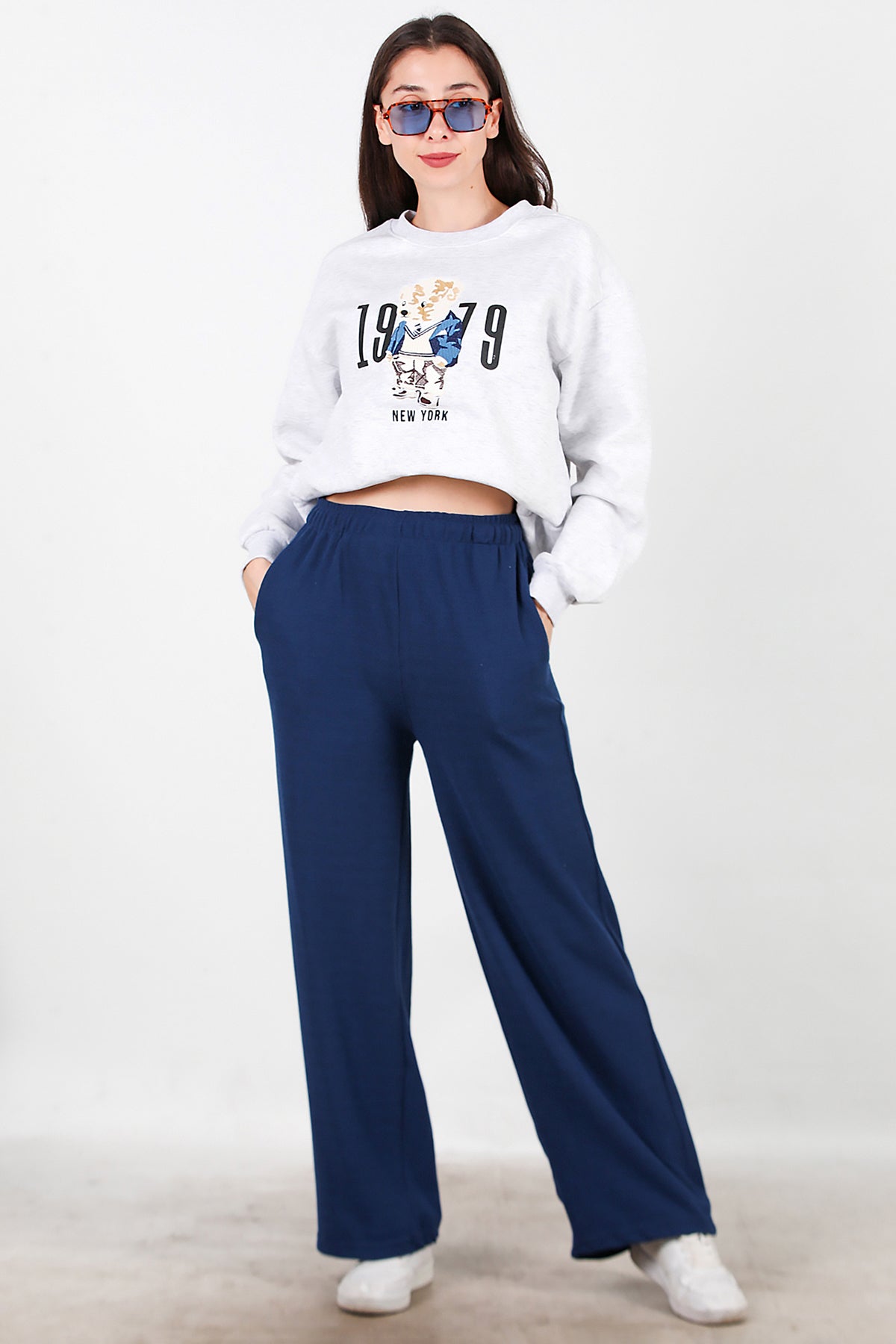 Kadın Bol Paça Waffle Eşofman Lacivert