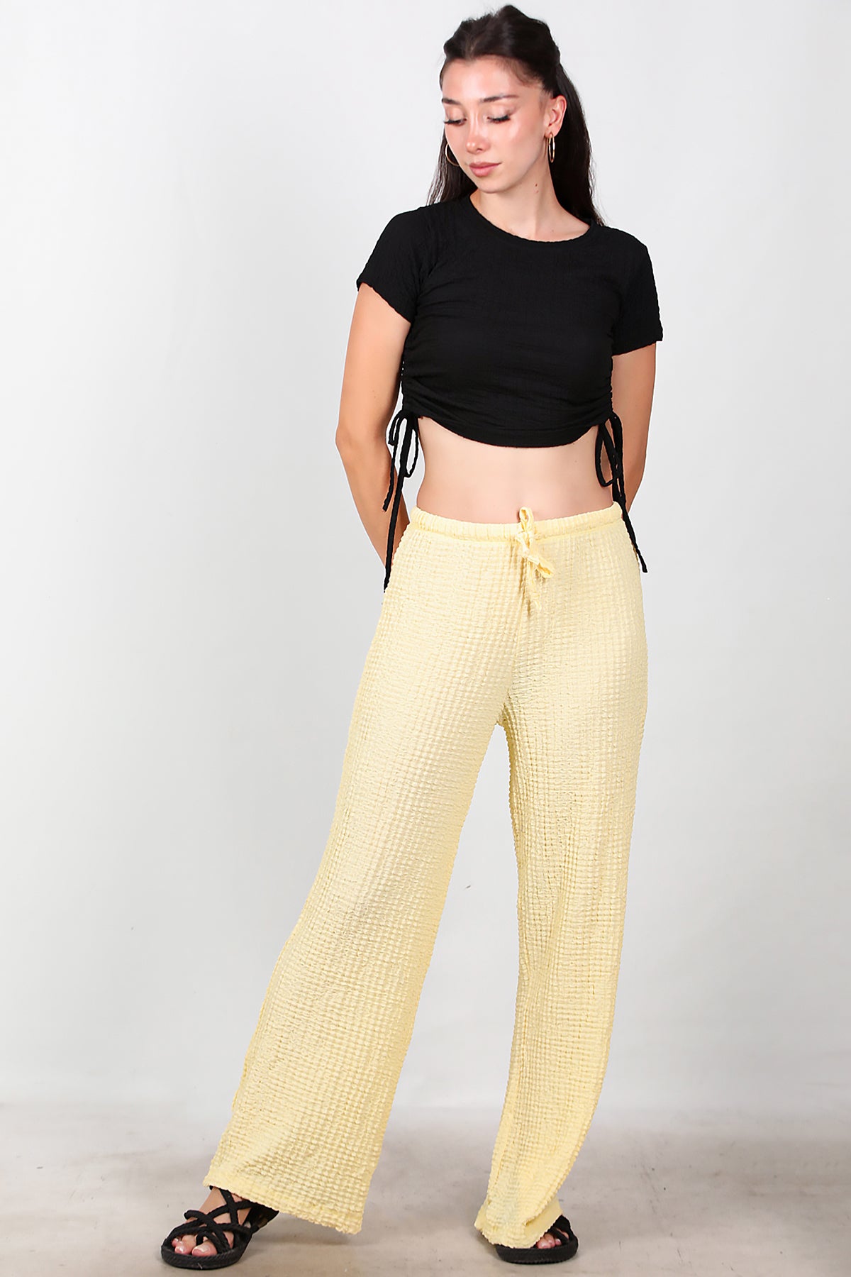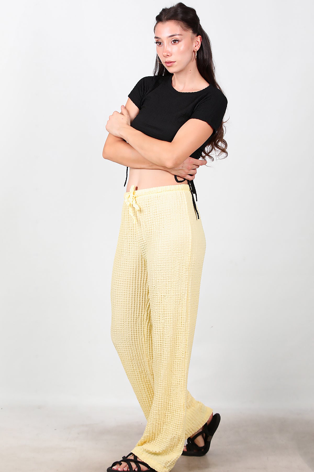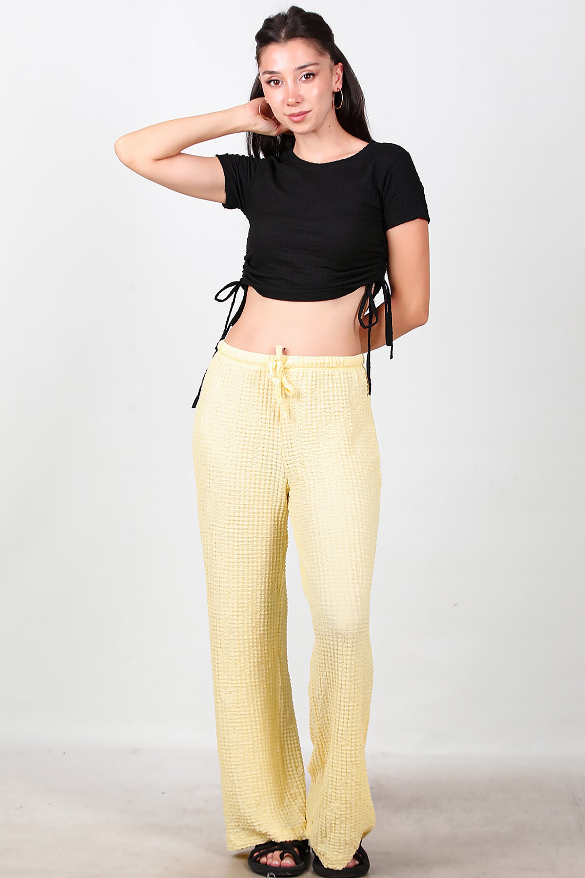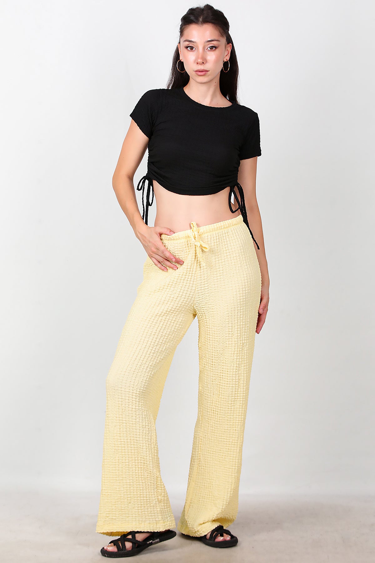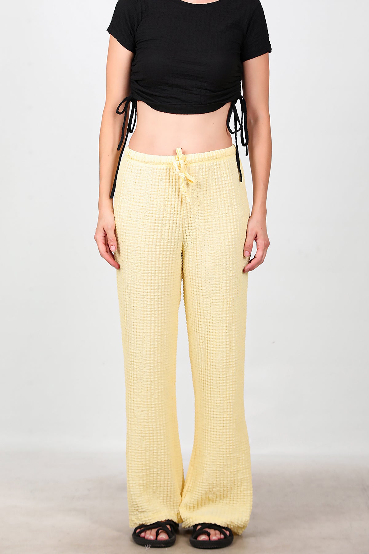 Kadın Bürümcük Geniş Paça Pantolon Sarı