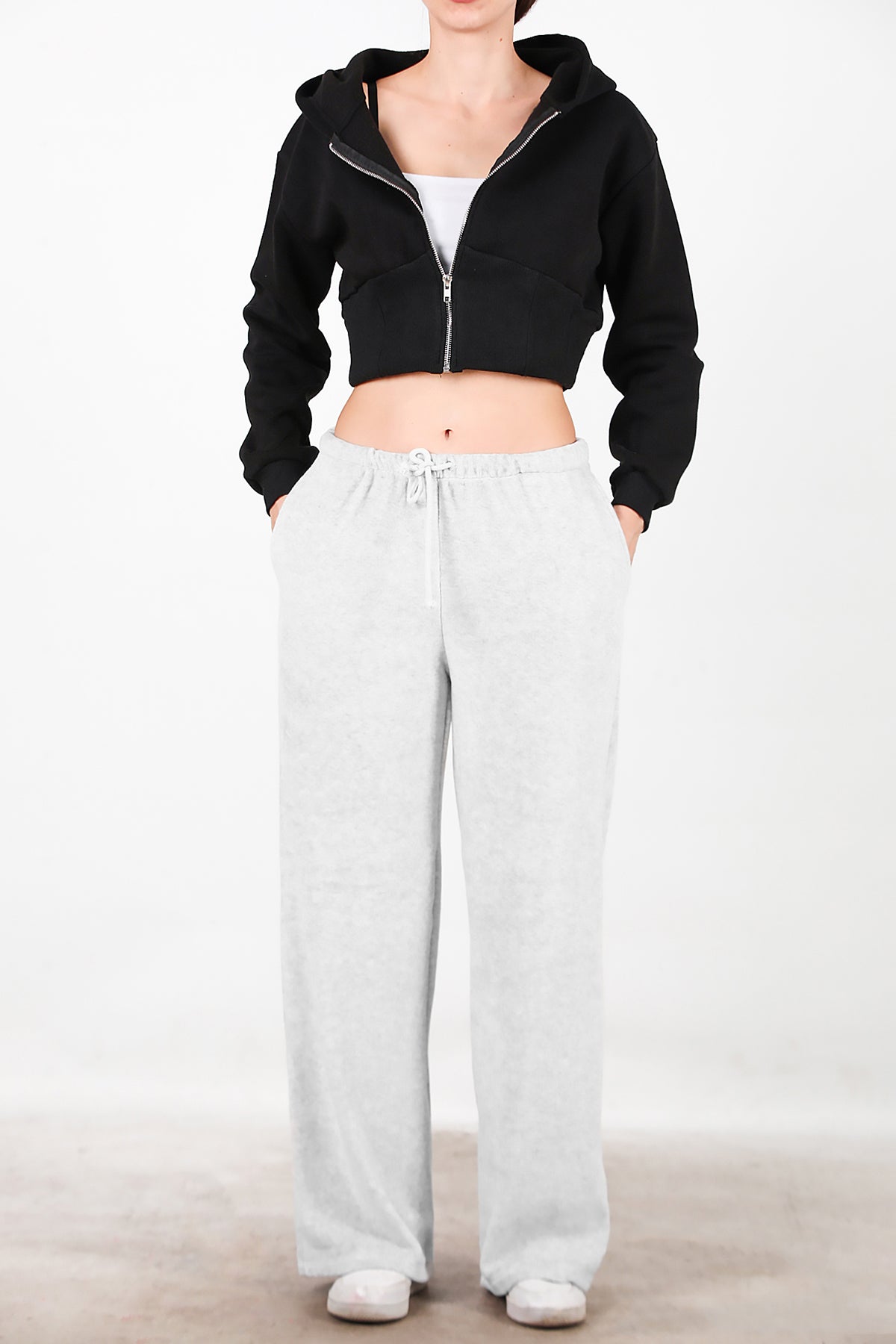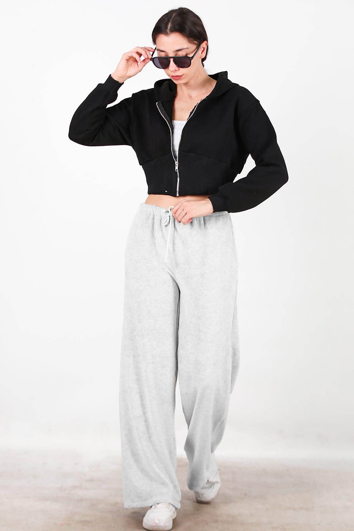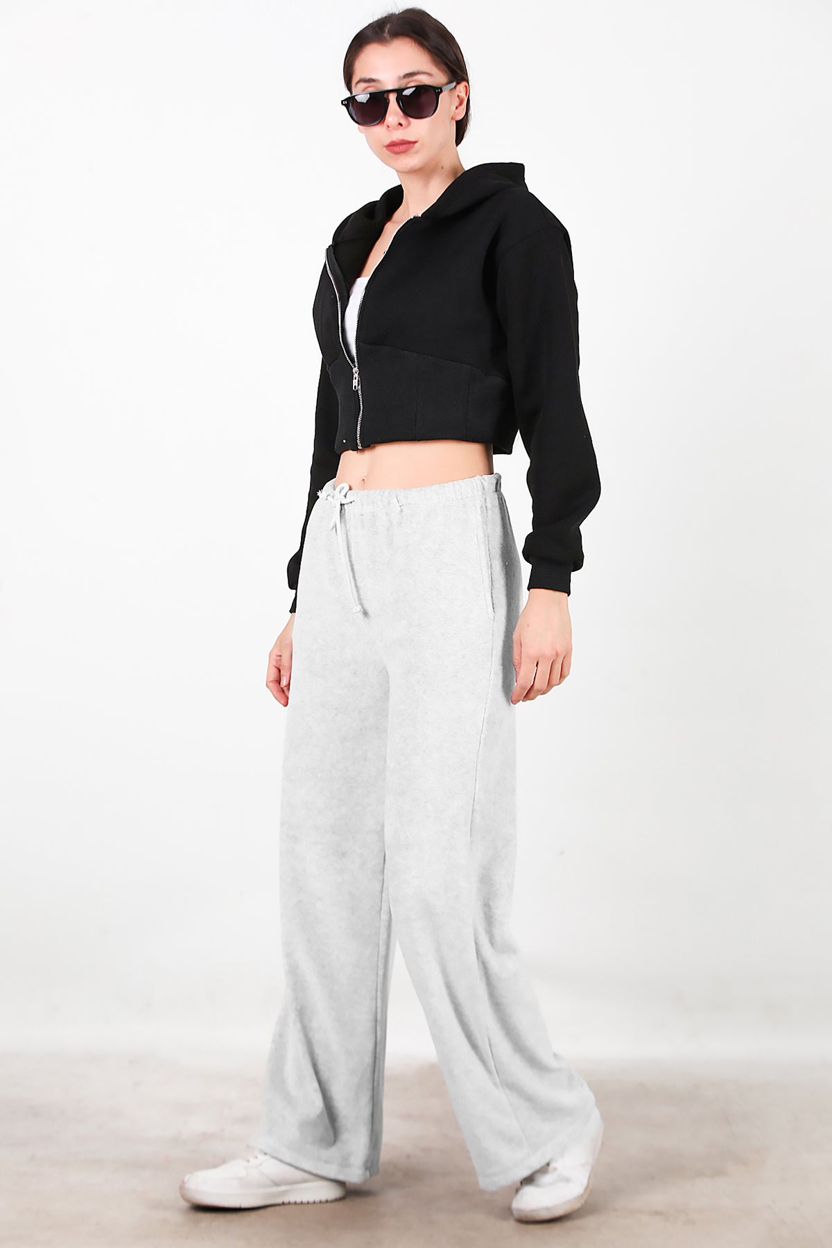 Kadın Cepli Bol Paça Havlu Pantolon Gri