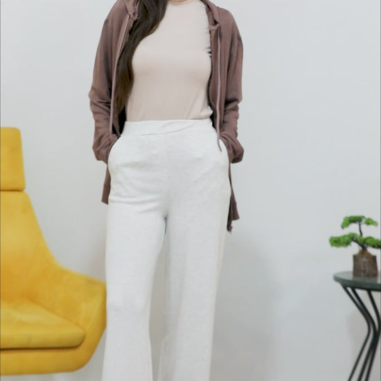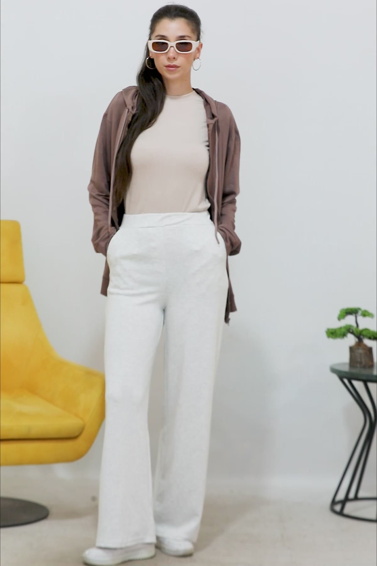 Kadın Cepli Bol Paça Pantolon Açık Gri