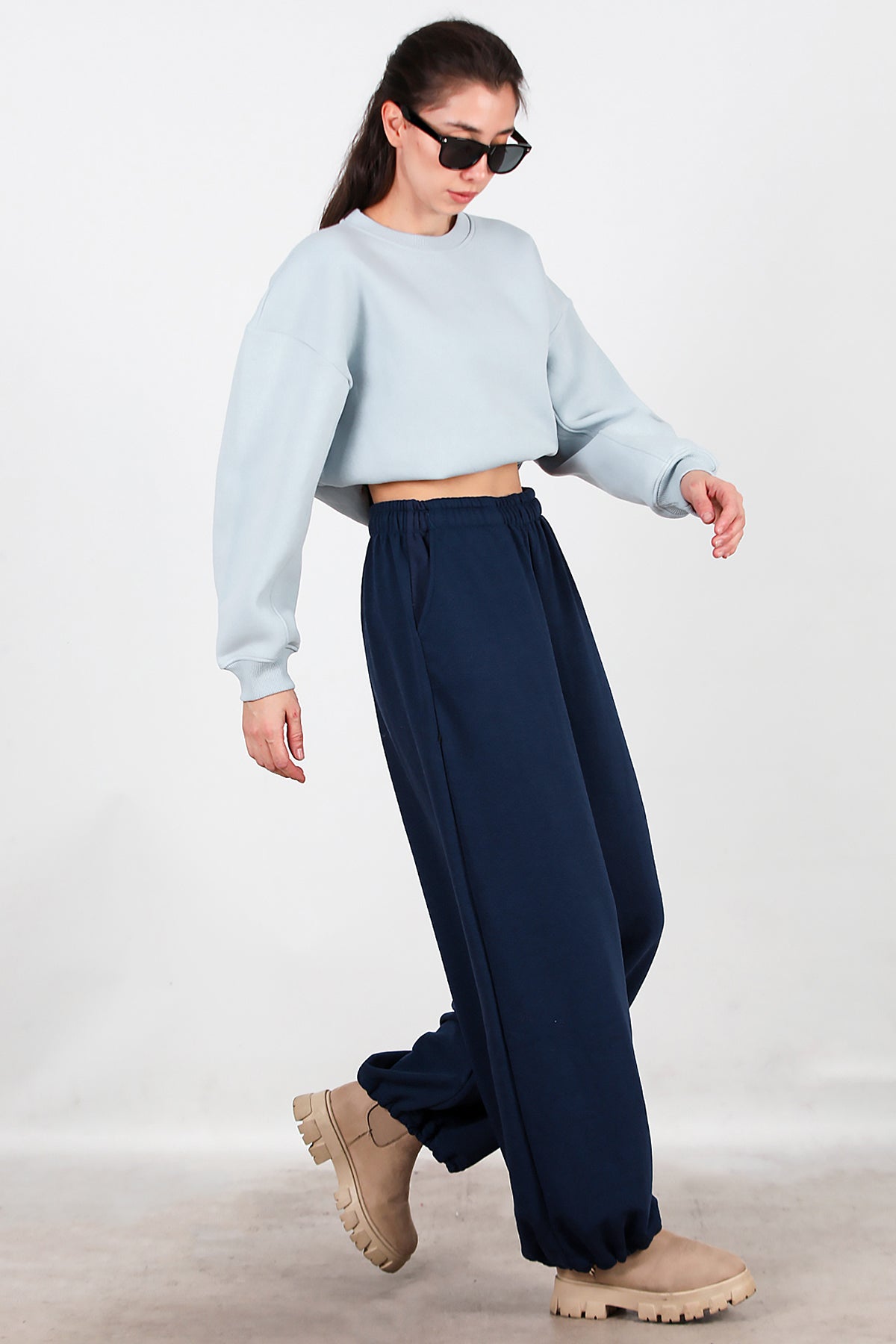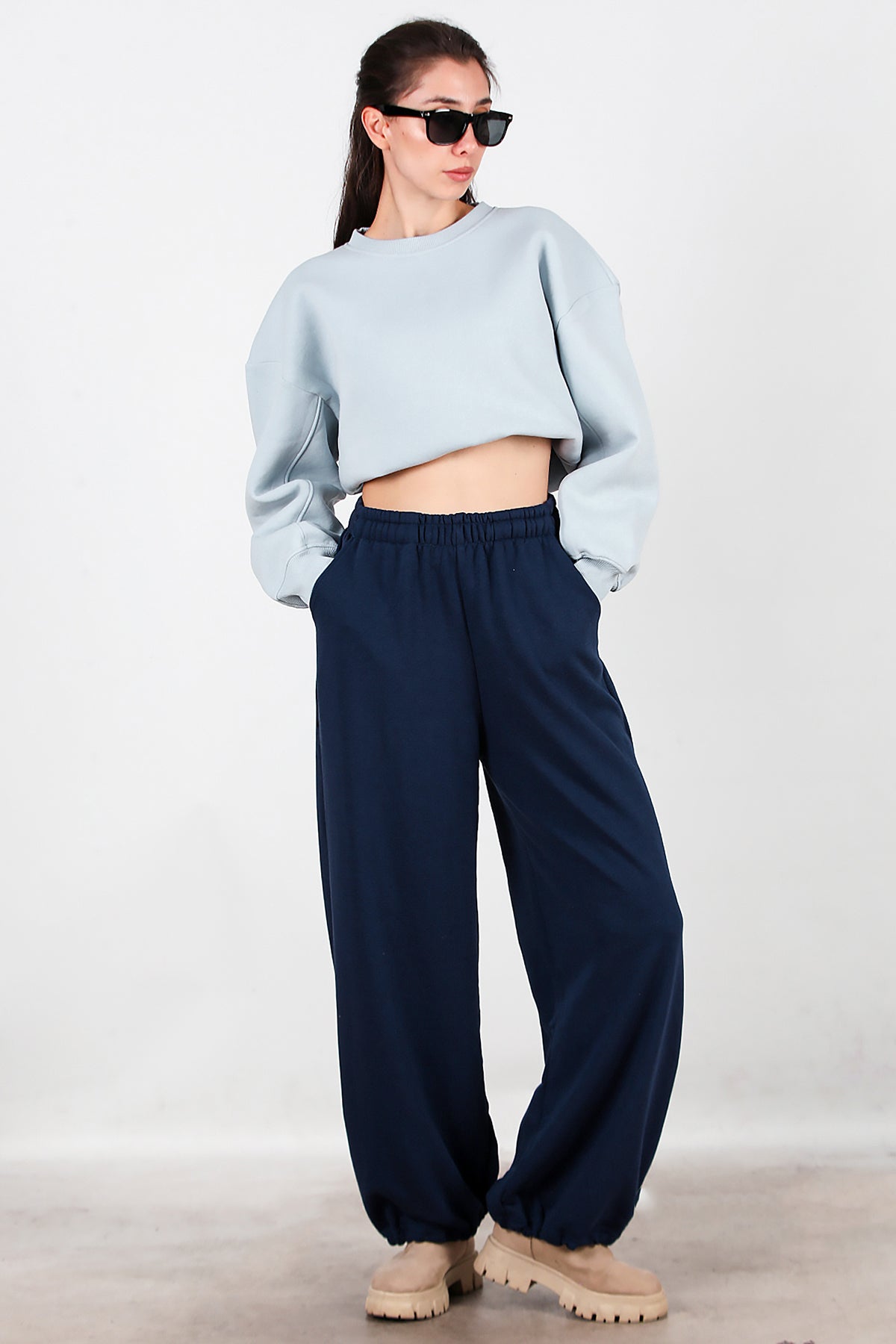 Kadın Cepli Paça Lastikli Eşofman Lacivert