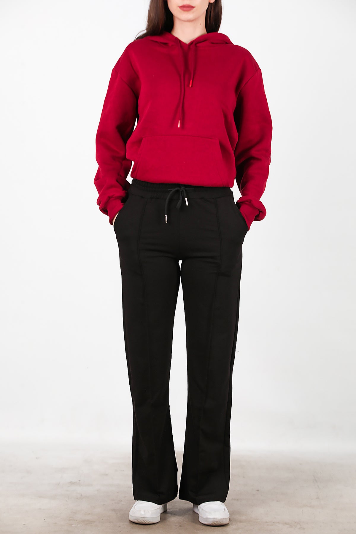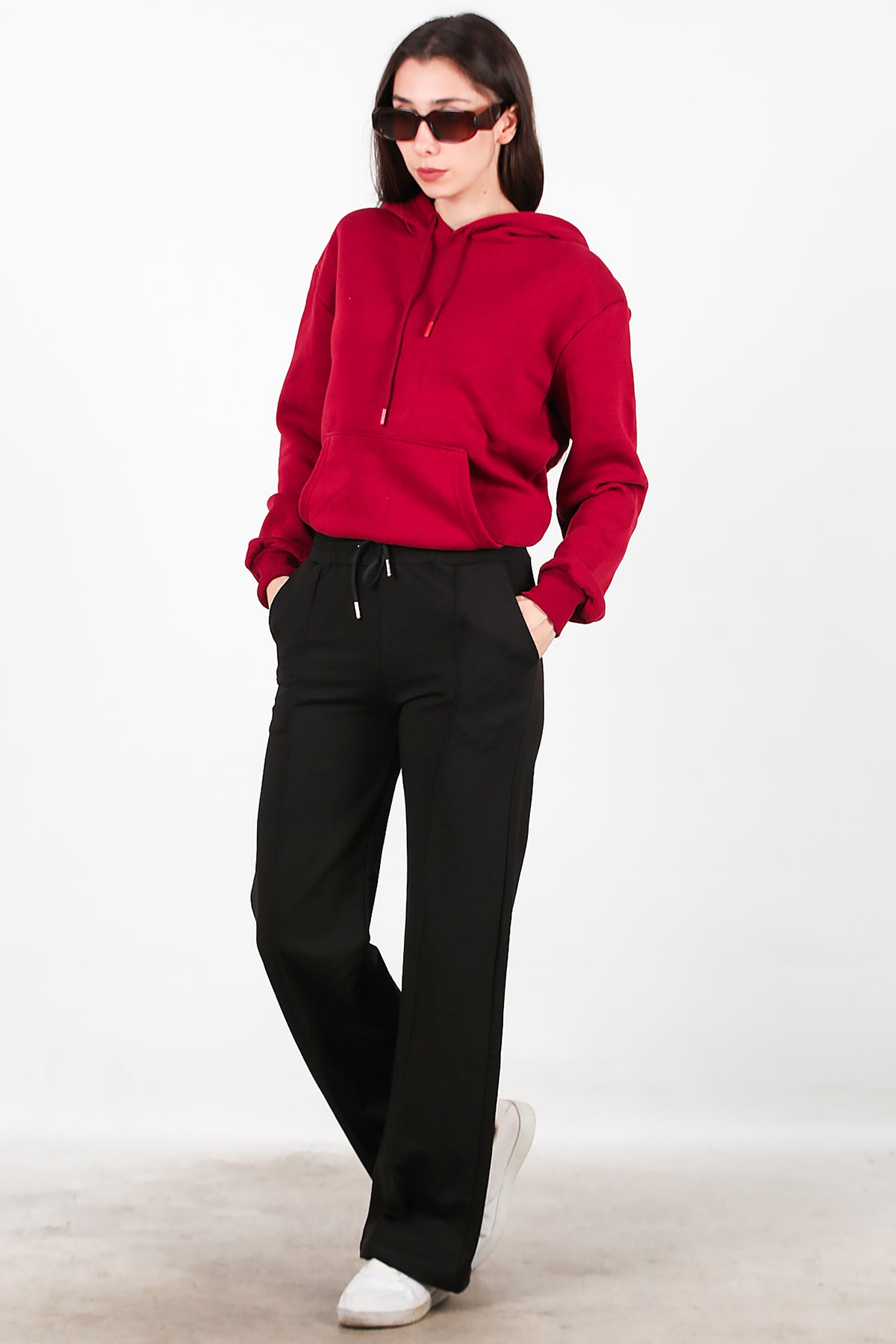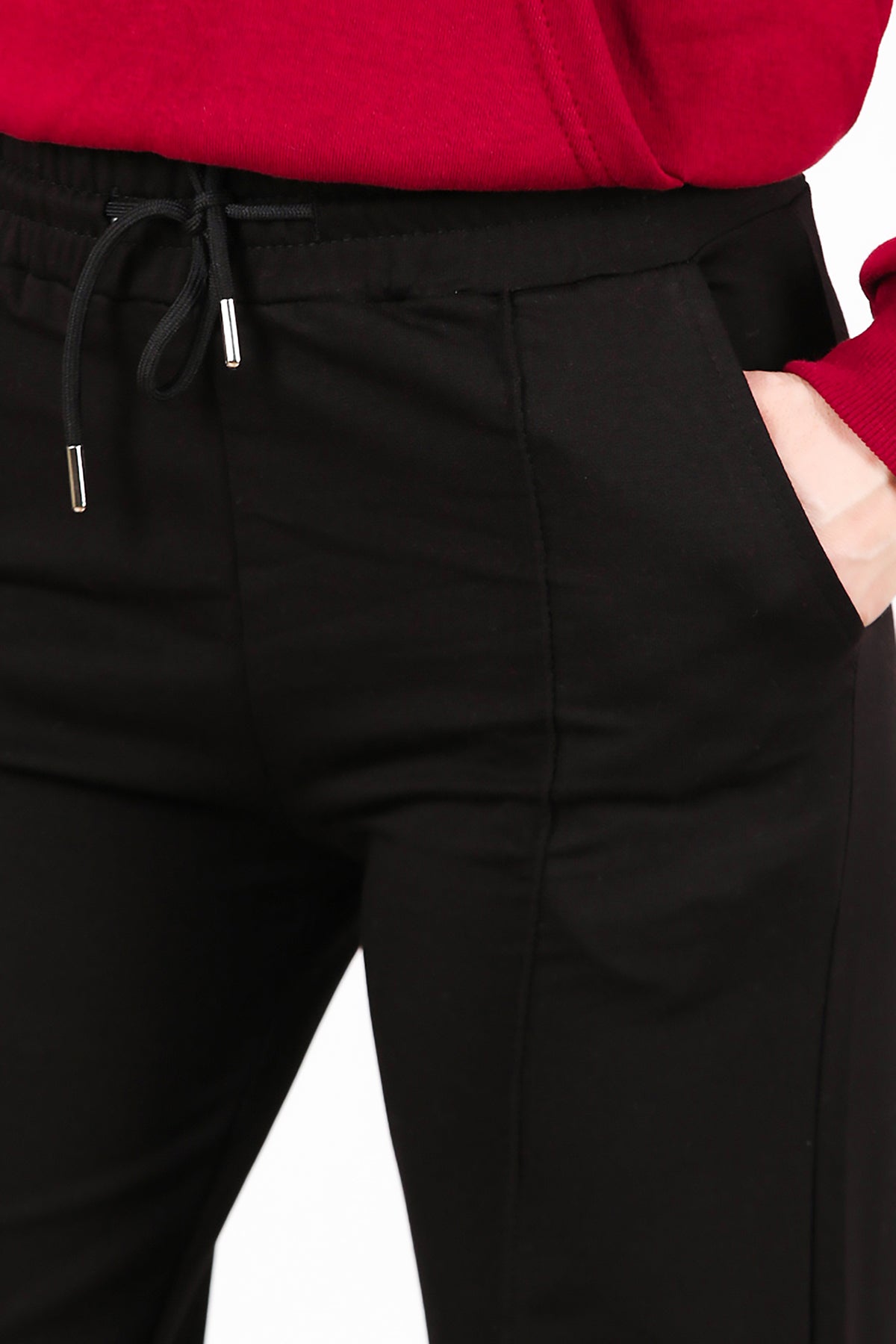 Kadın Çimalı Bol Paça Eşofman Siyah