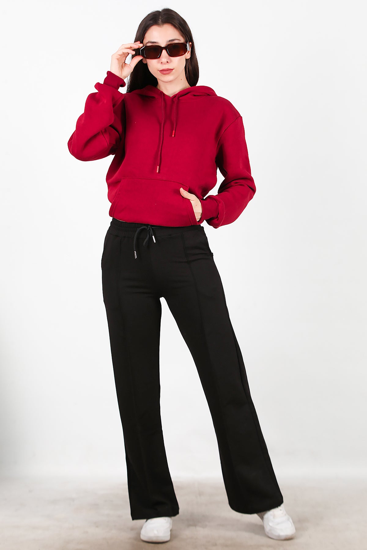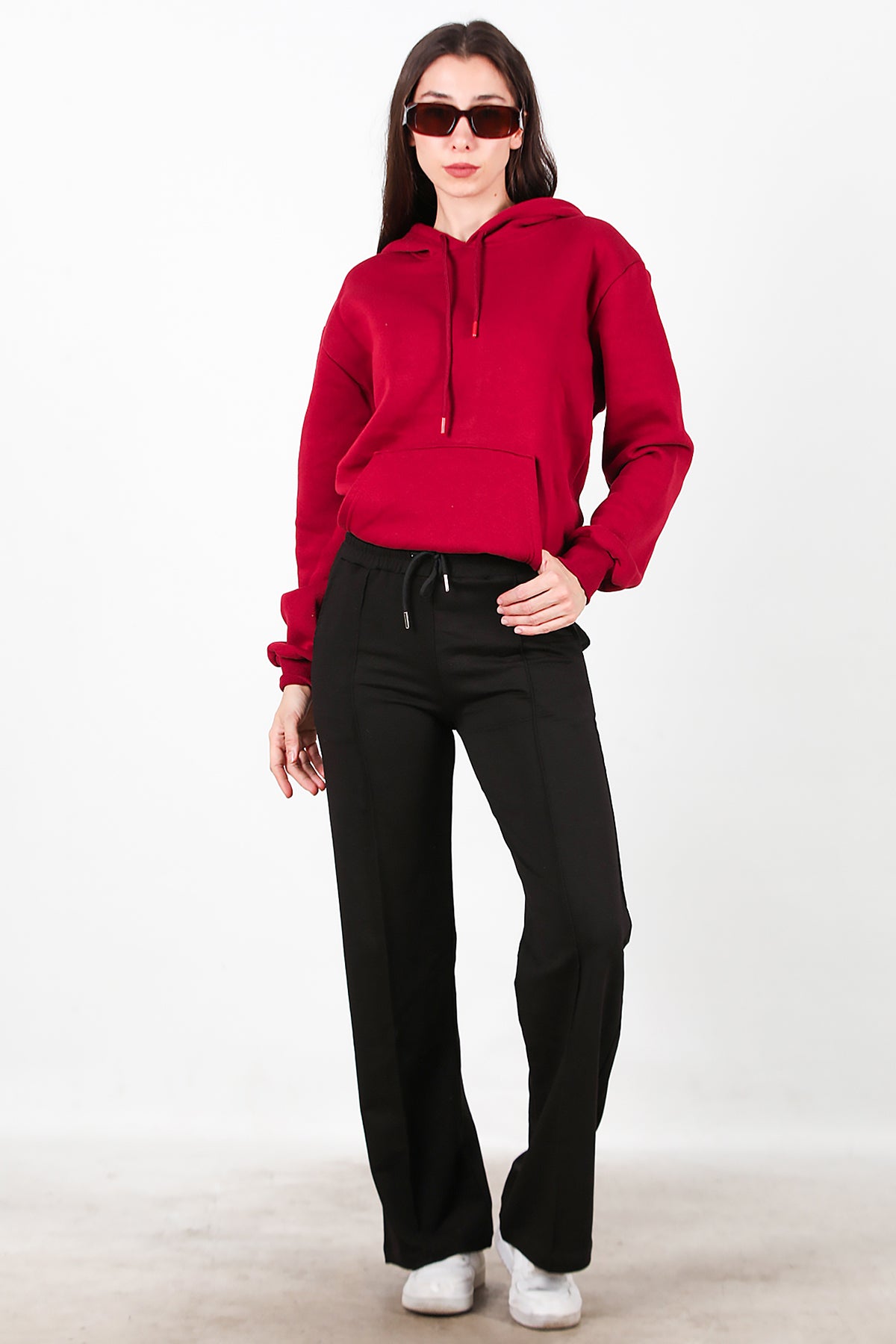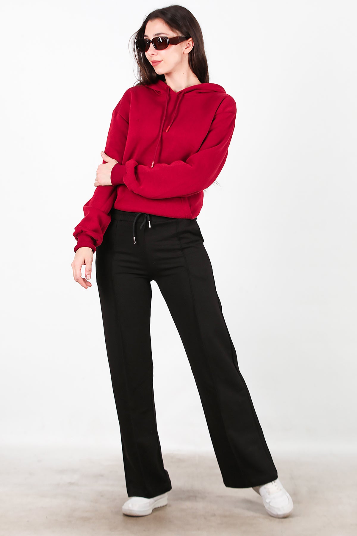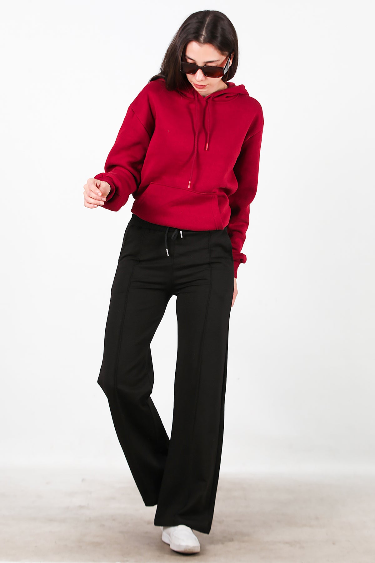 Kadın Çimalı Bol Paça Eşofman Siyah