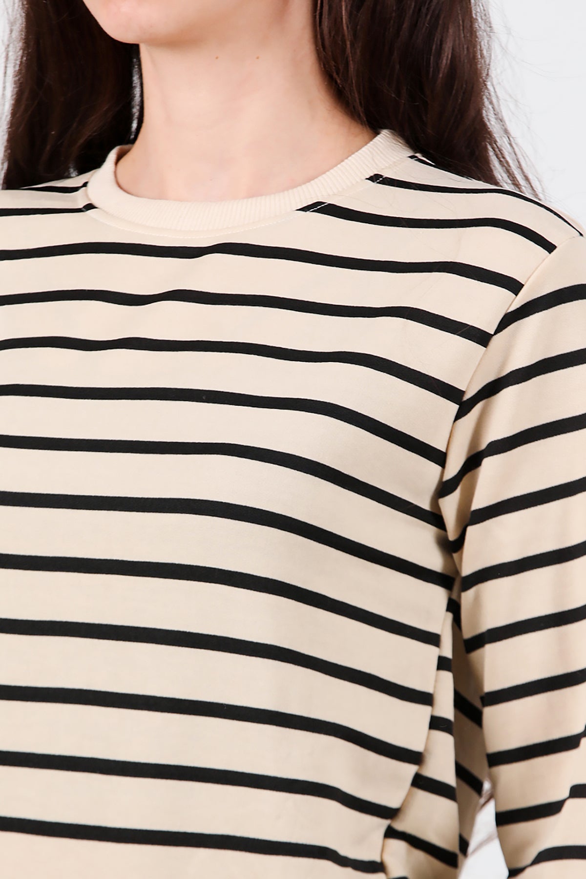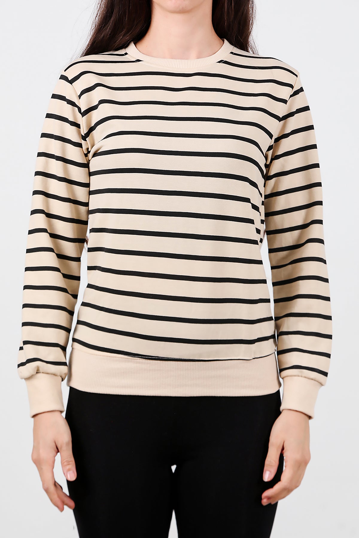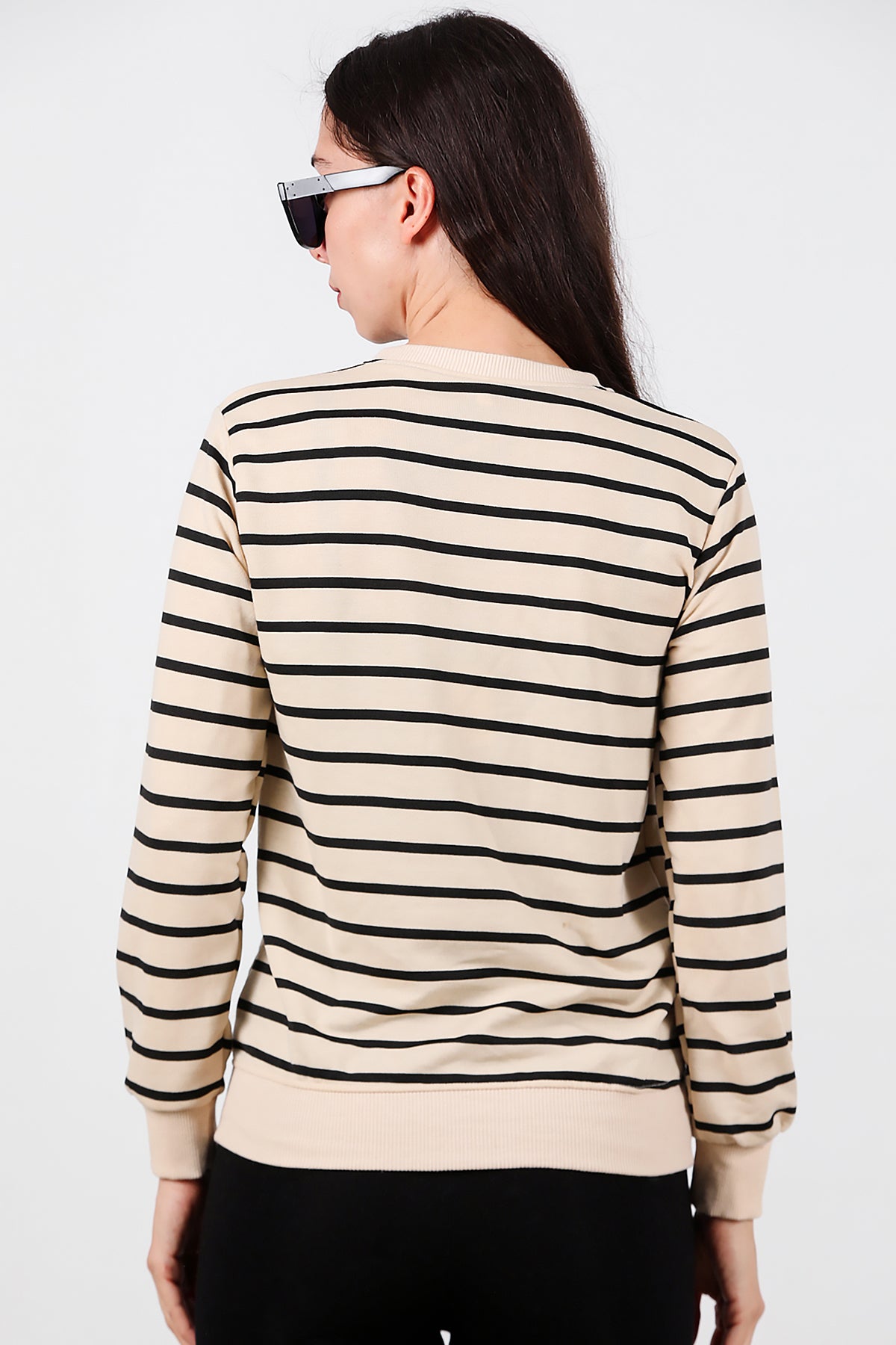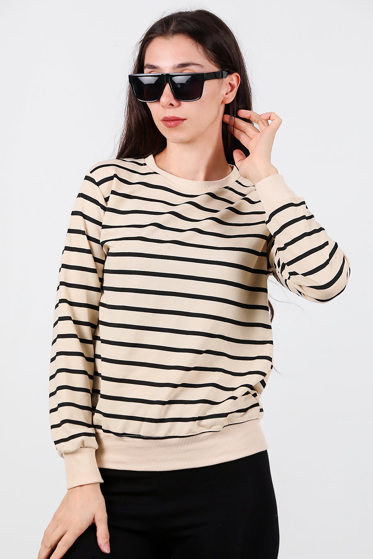 Kadın Çizgili Bisiklet Yaka Sweat Siyah