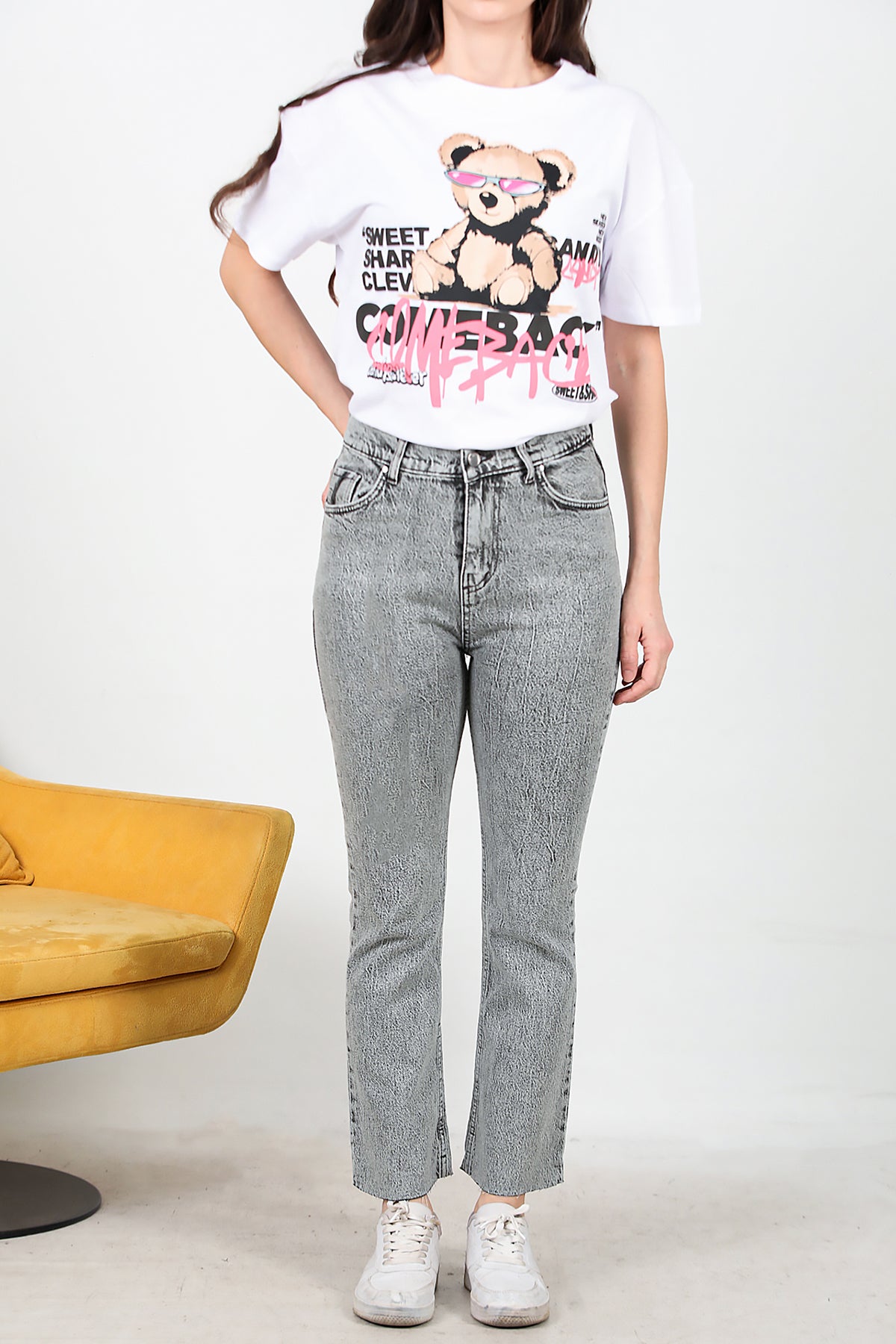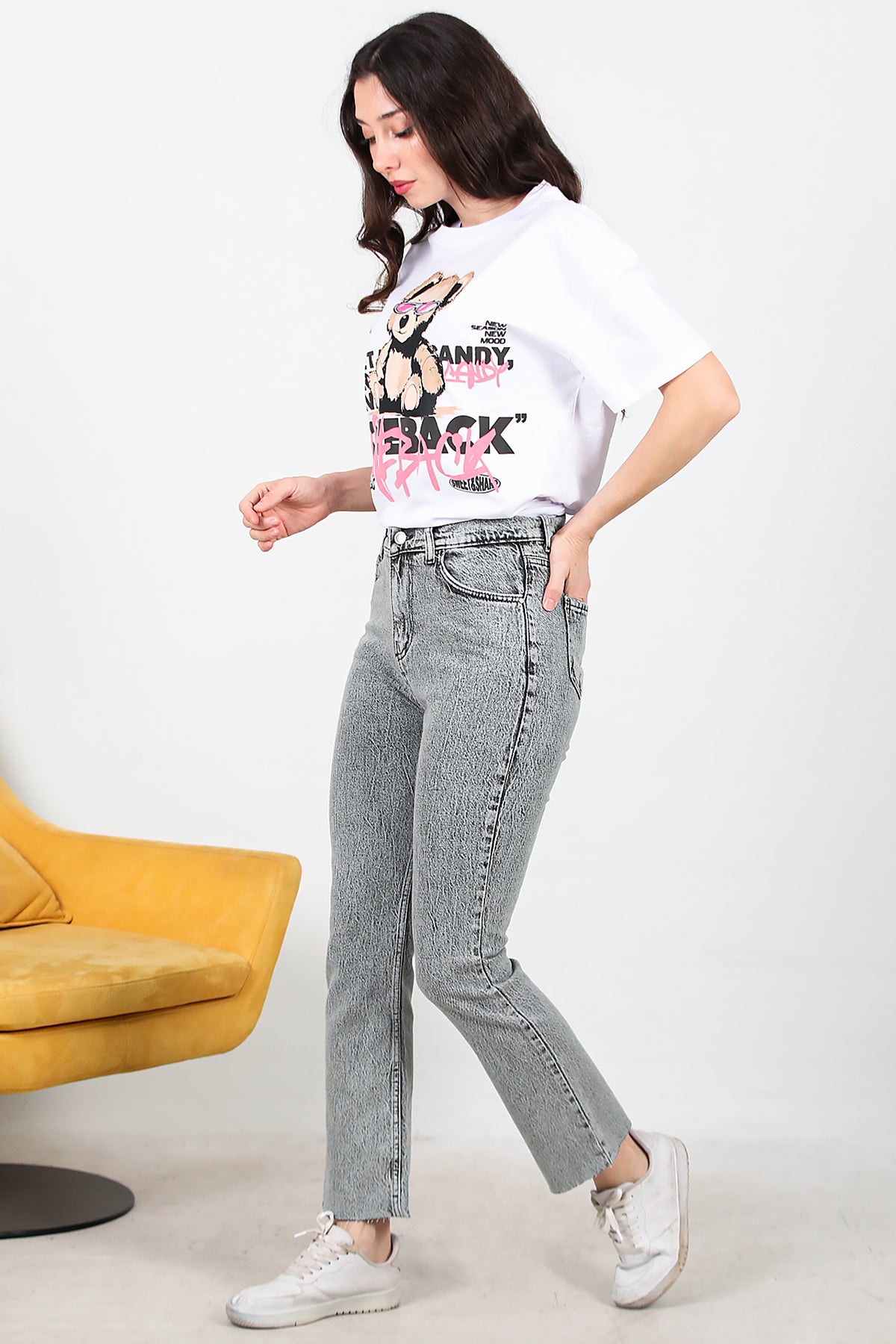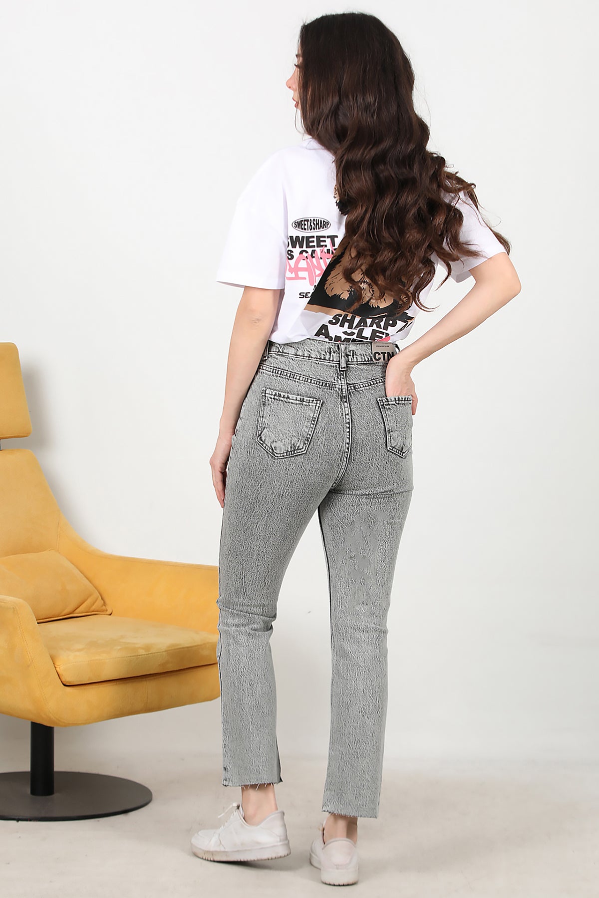 Kadın Crop Jeans Kot Pantolon Antrasit