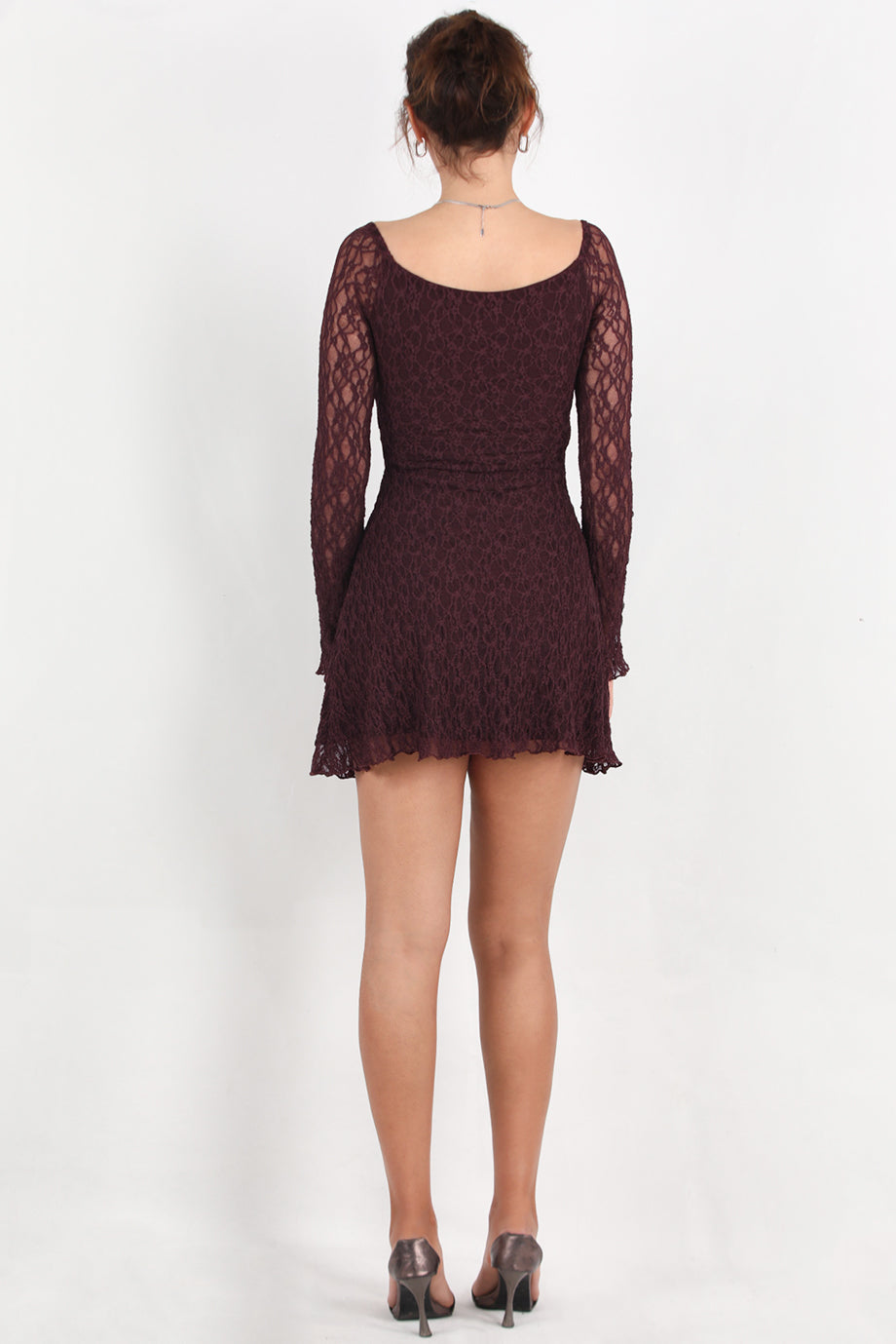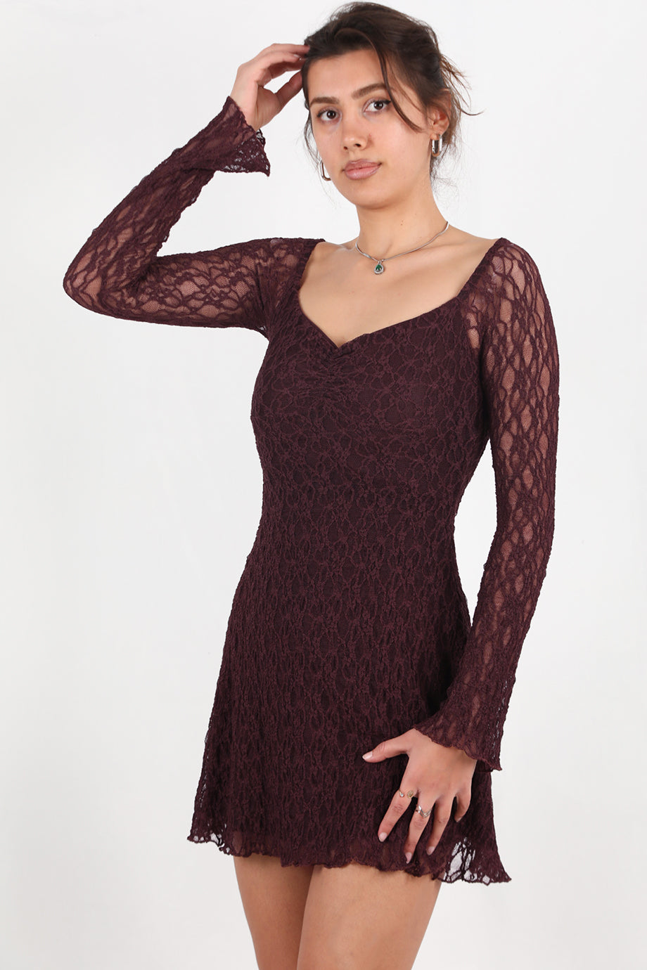 Muse Kadın Dantelli Kısa Elbise Kahverengi