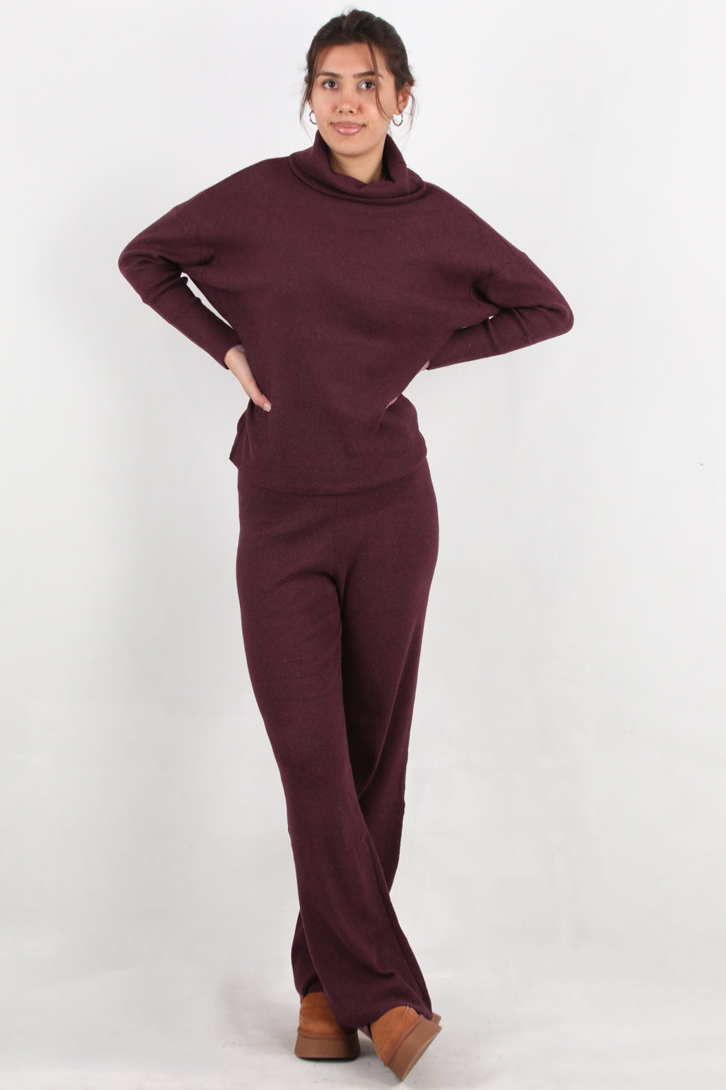 Twinra Kadın Degaje Yaka İkili Takım Bordo