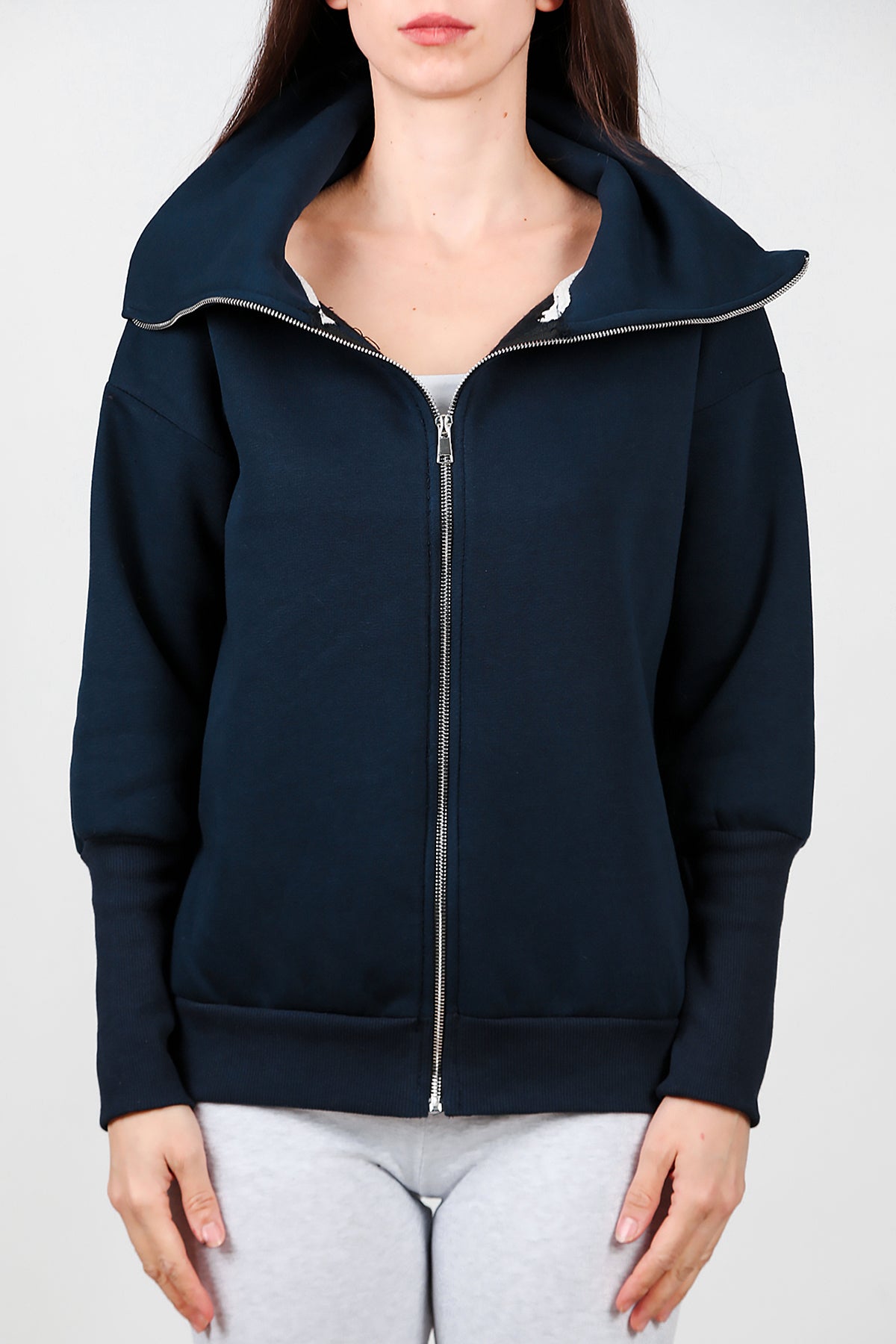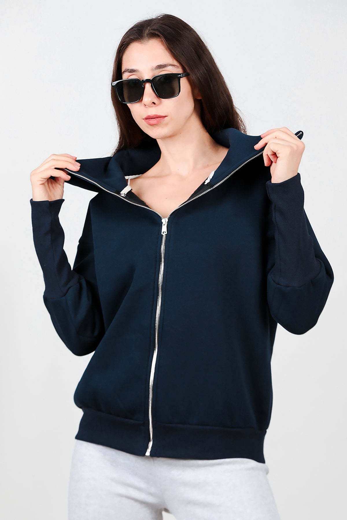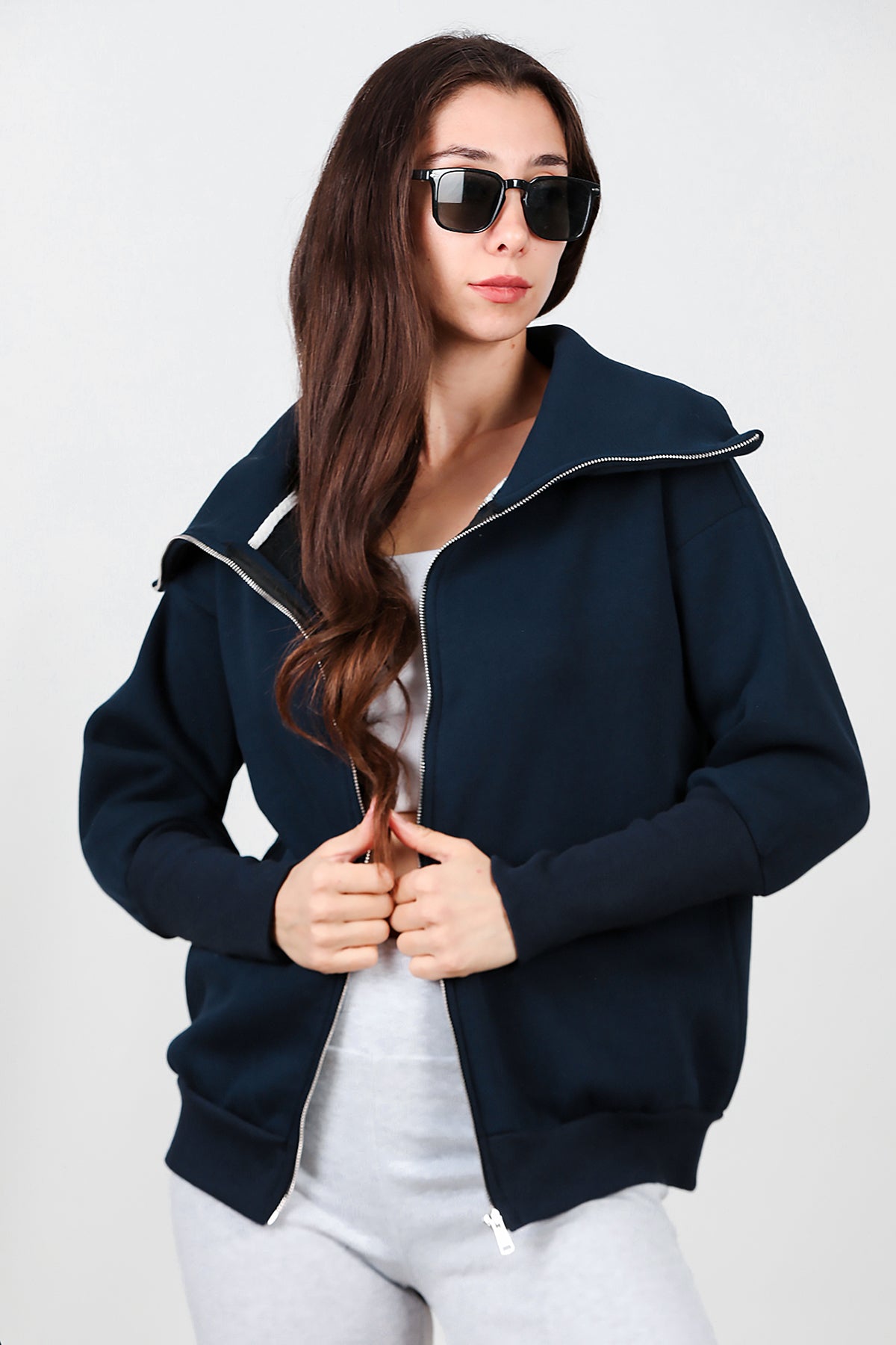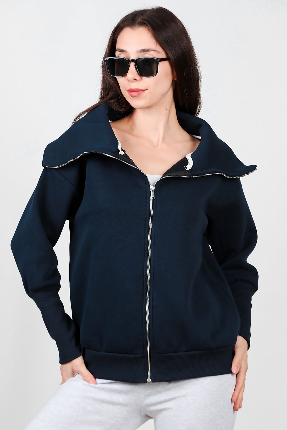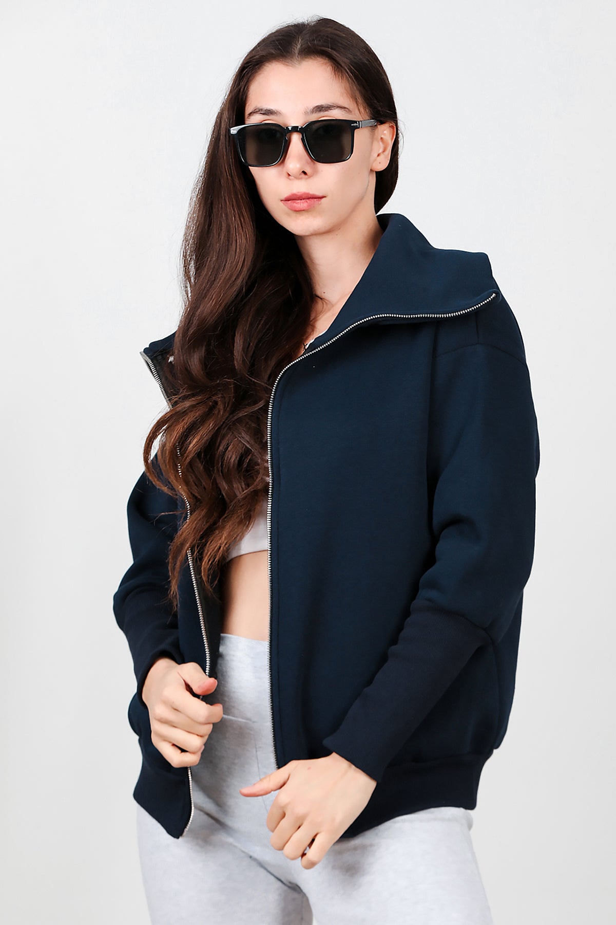 Kadın Dik Yaka Fermuarlı Sweat Lacivert