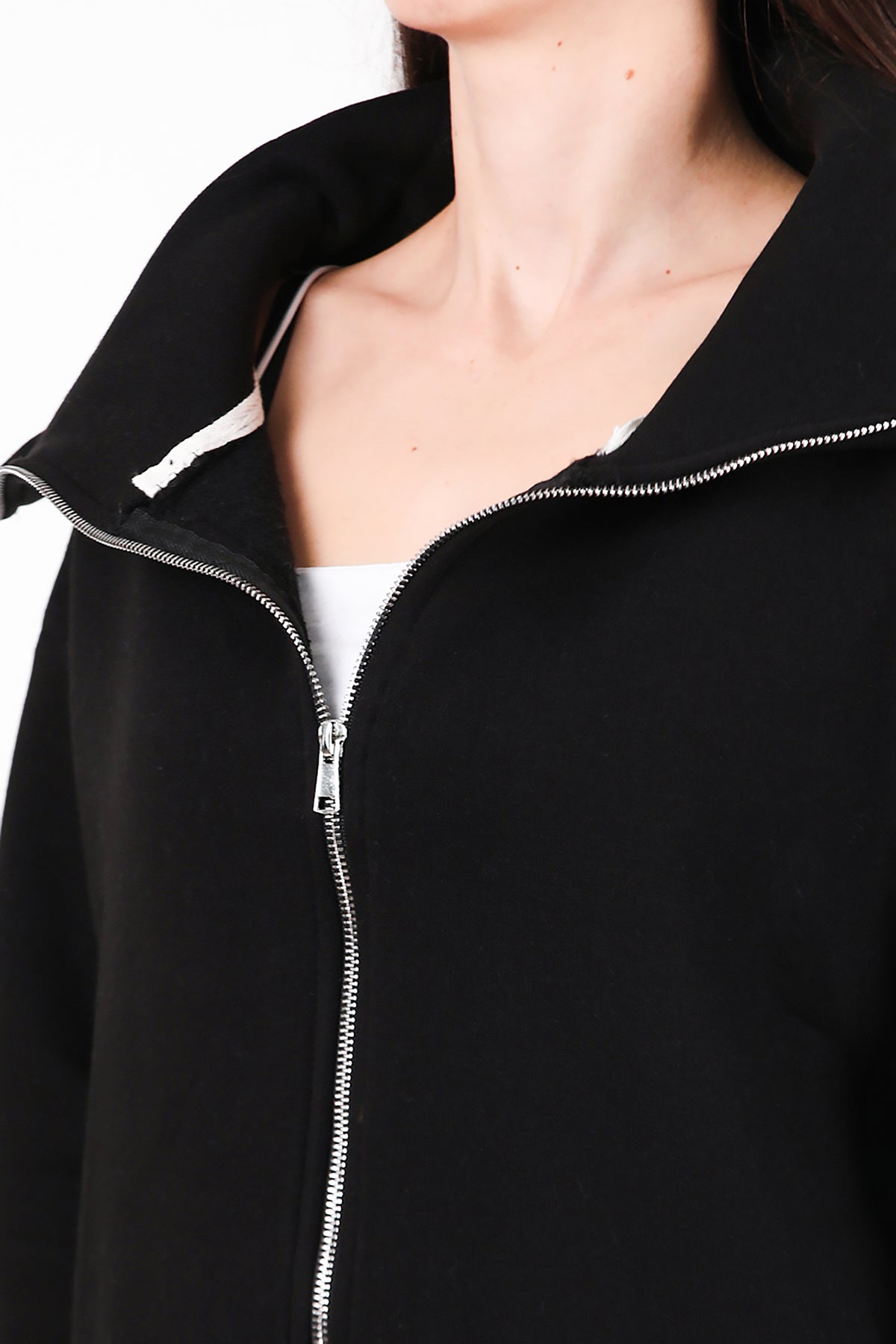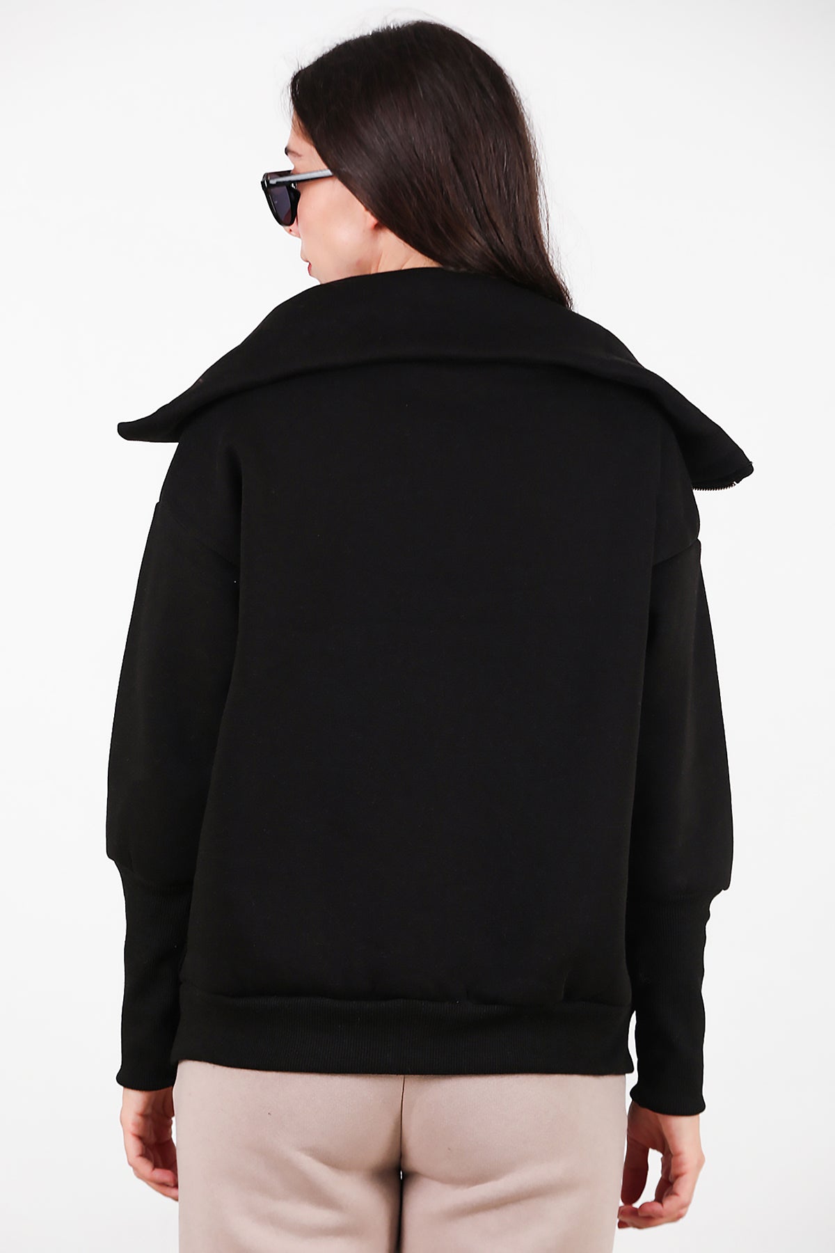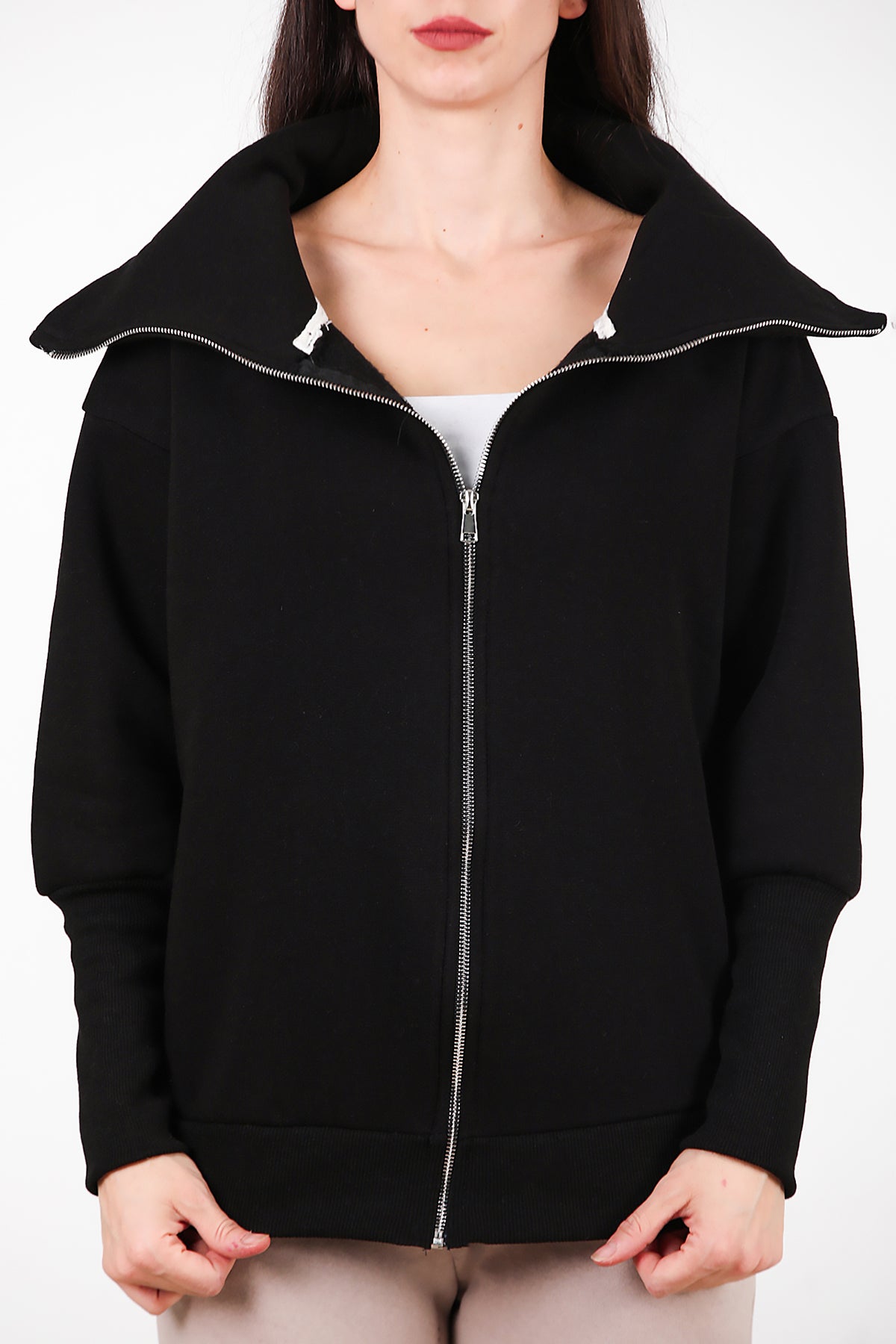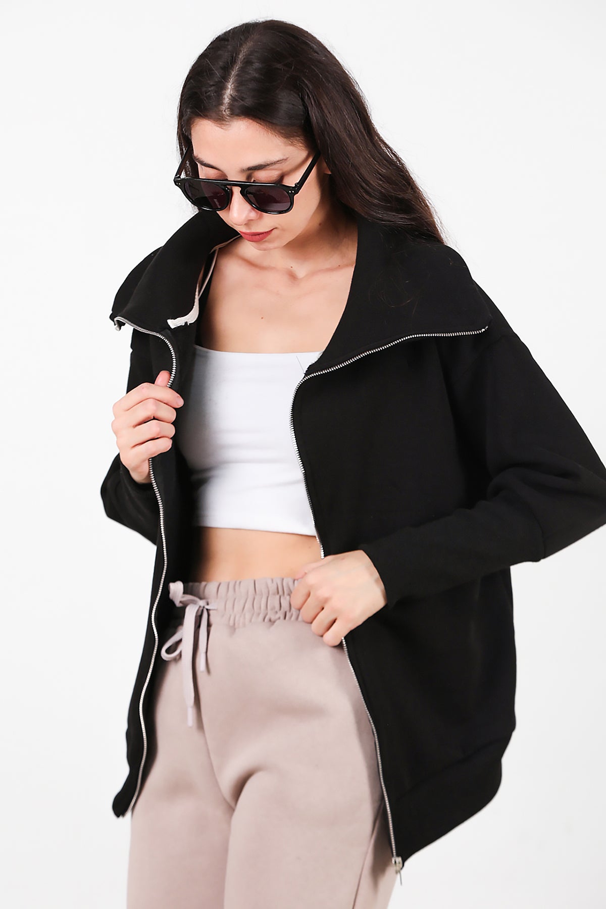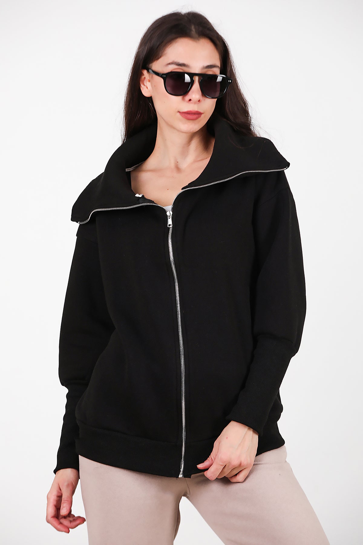 Kadın Dik Yaka Fermuarlı Sweat Siyah