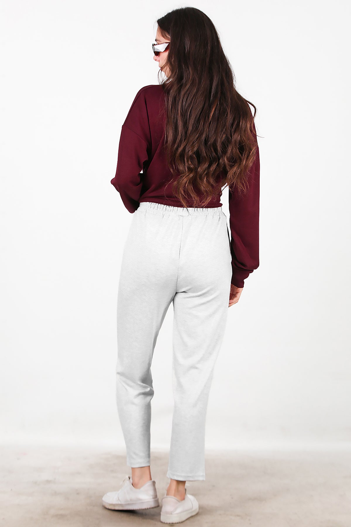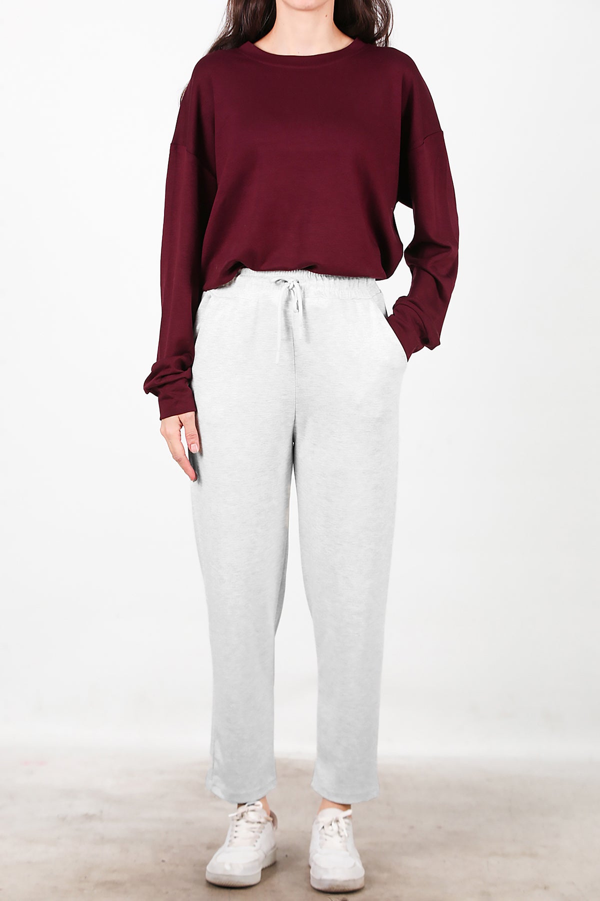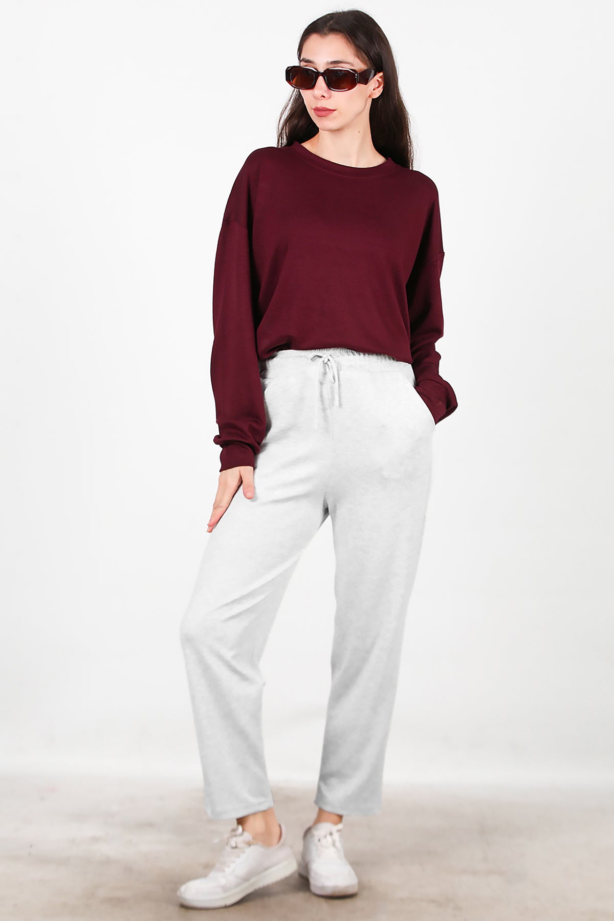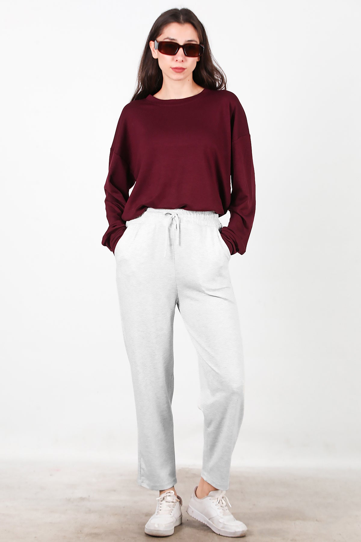 Kadın Düz Paça Cepli Eşofman Ekru