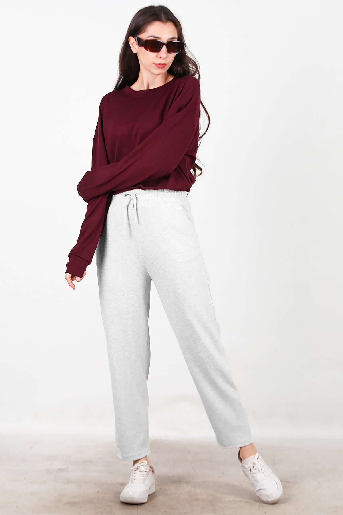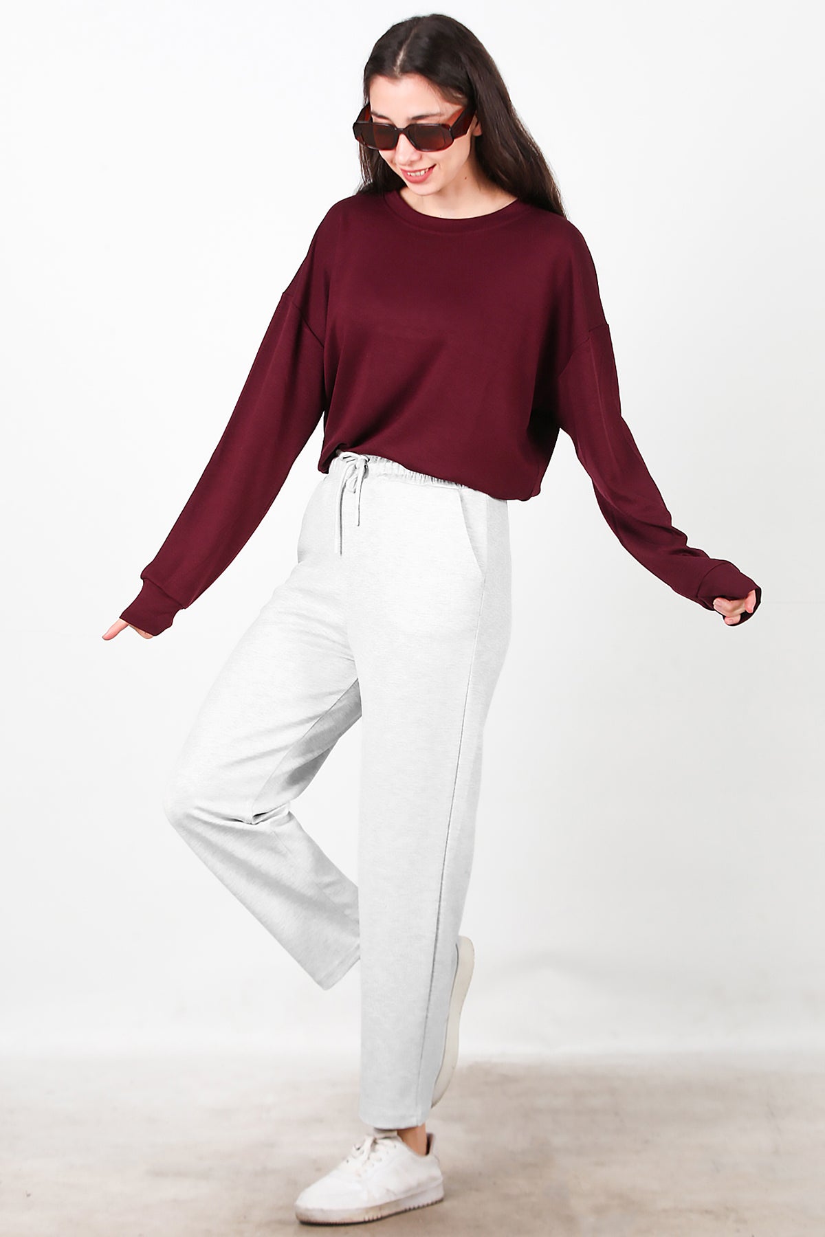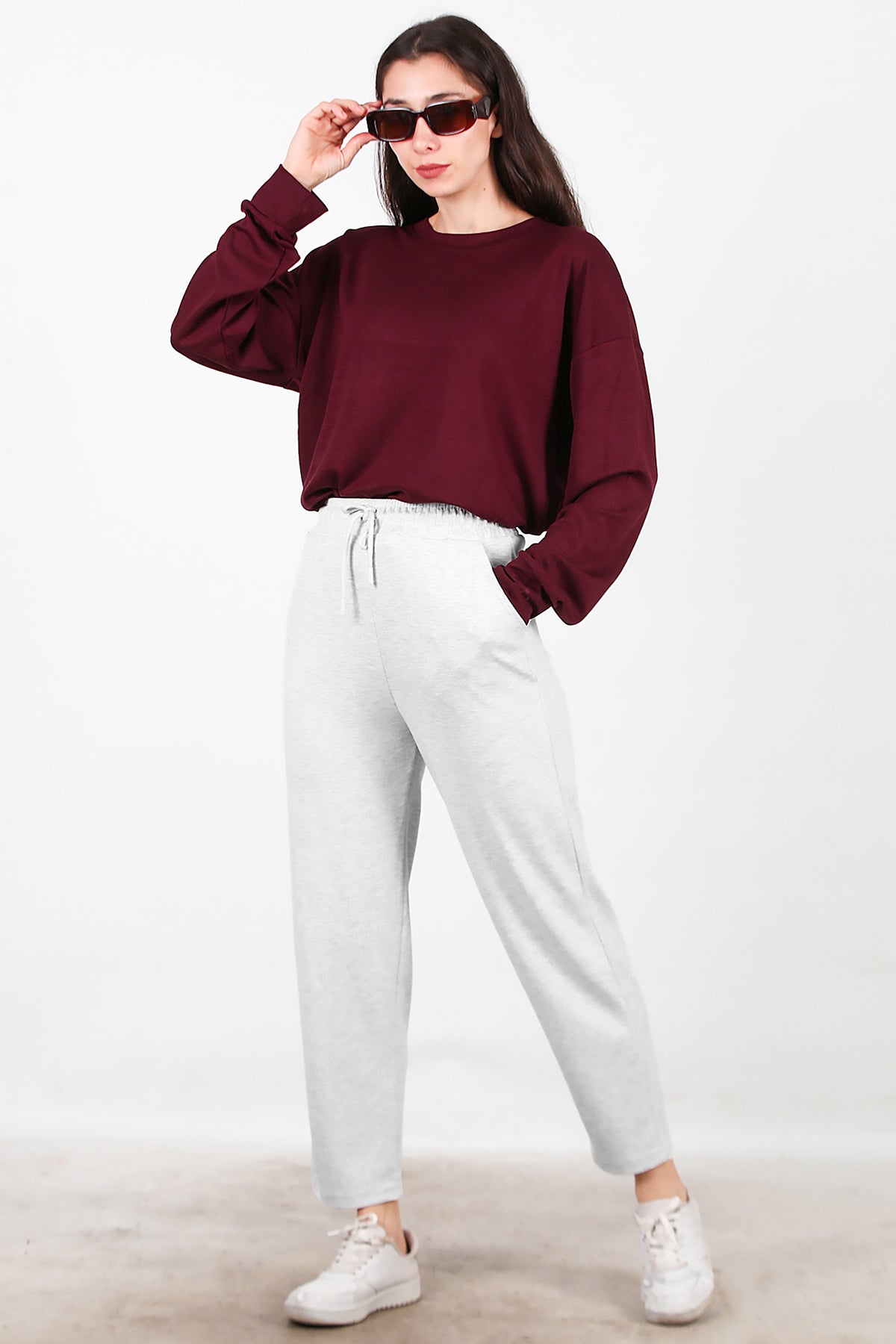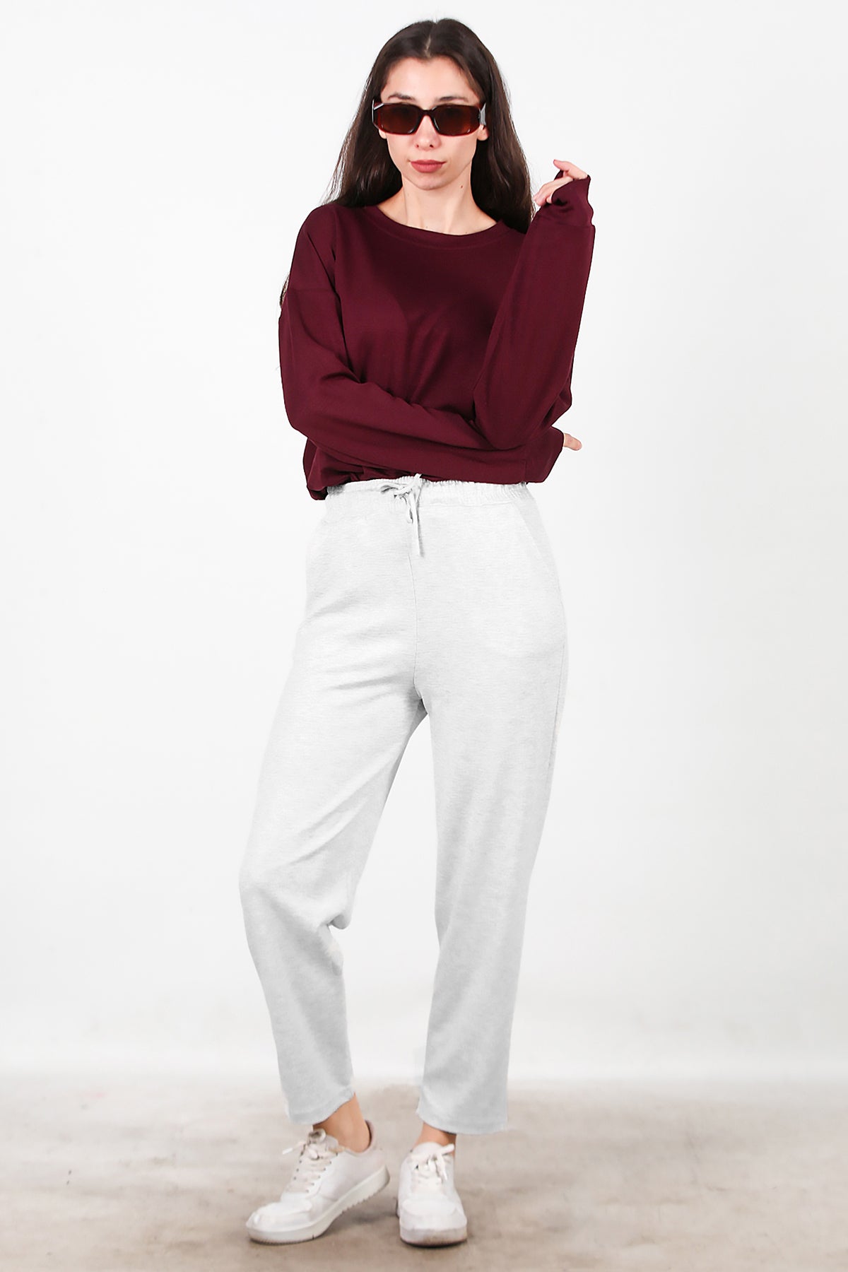 Kadın Düz Paça Cepli Eşofman Ekru