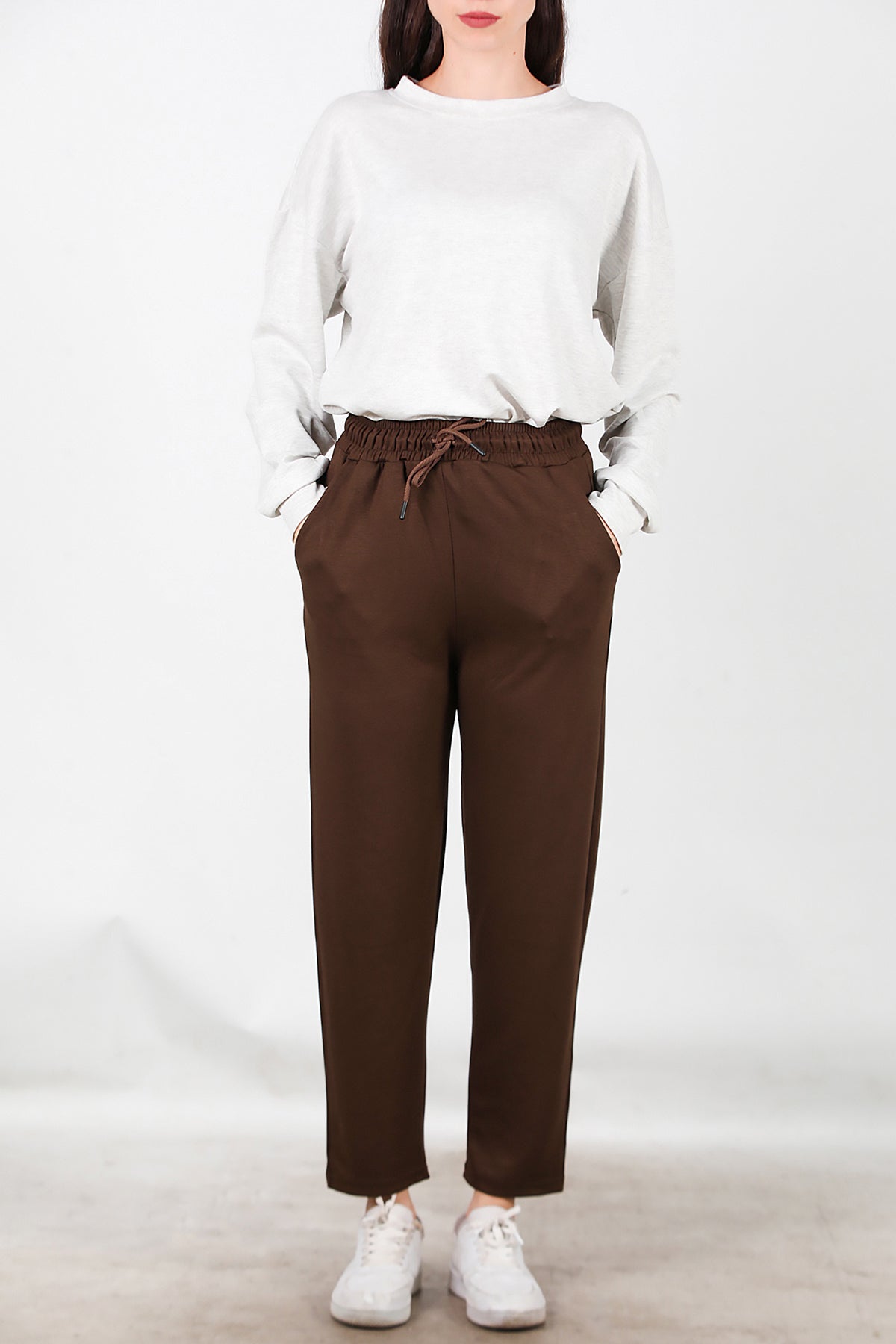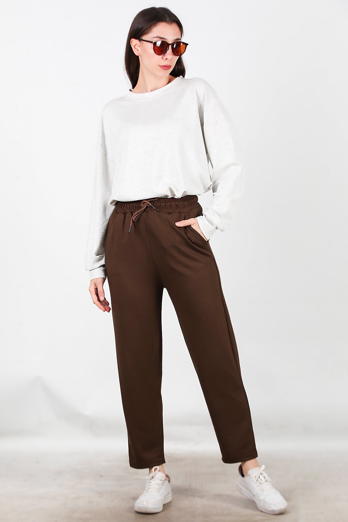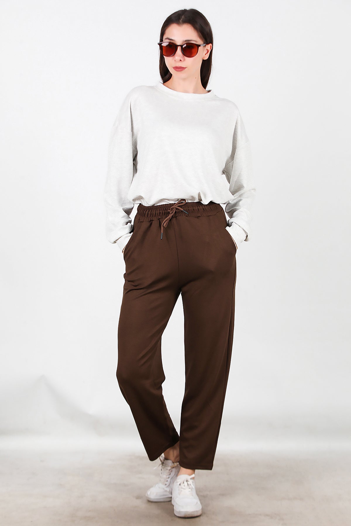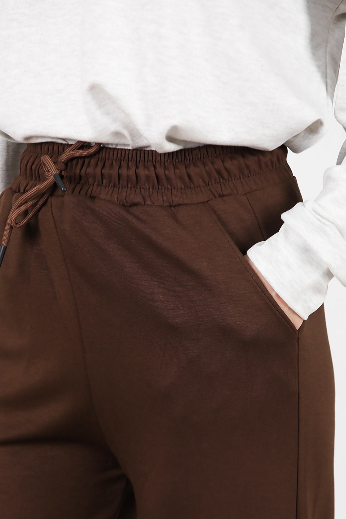 Kadın Düz Paça Cepli Eşofman Kahverengi
