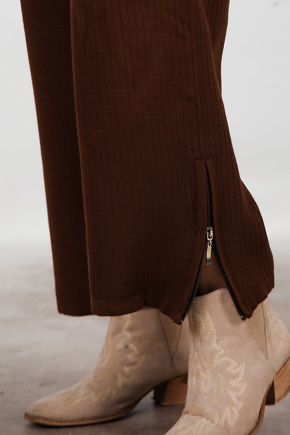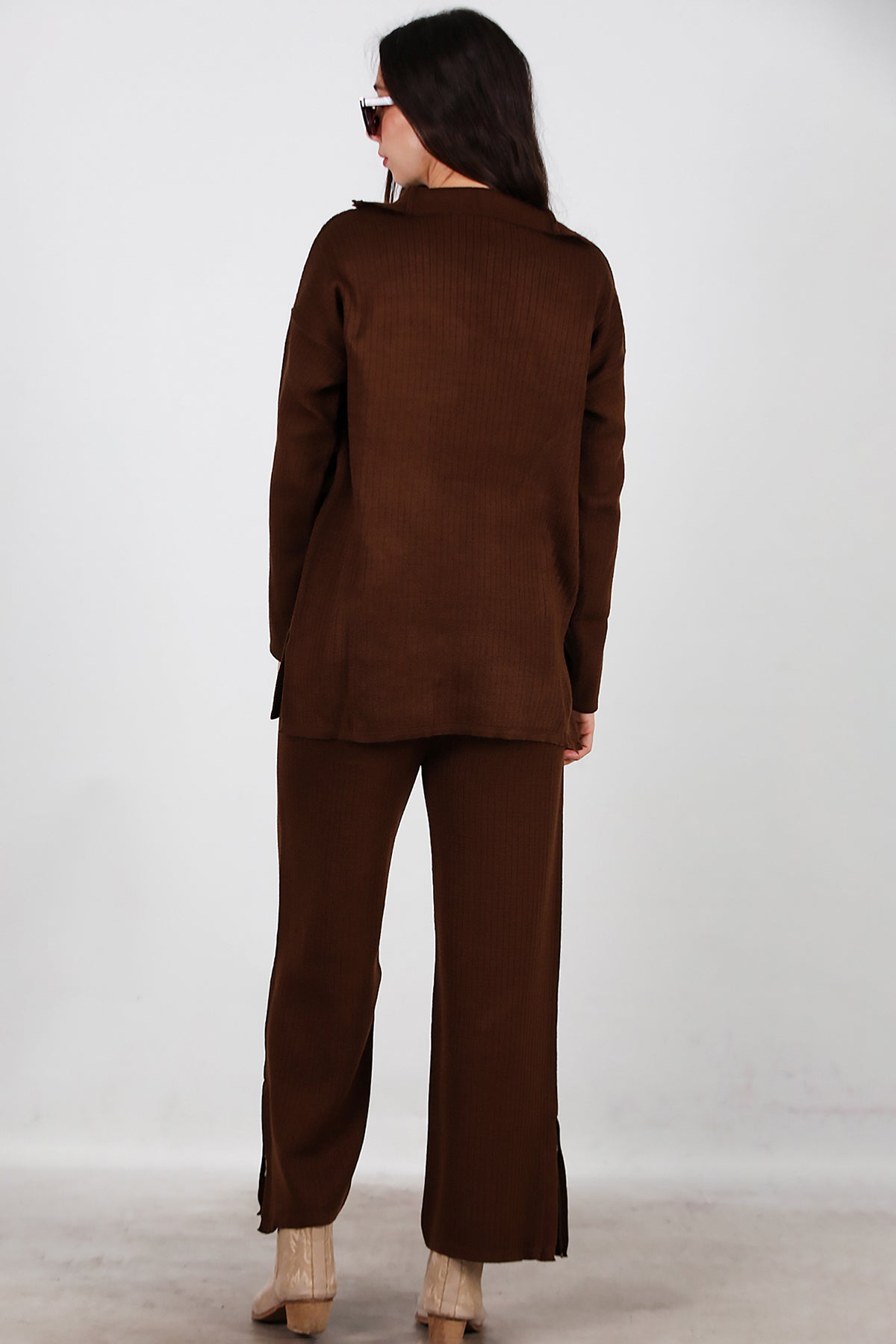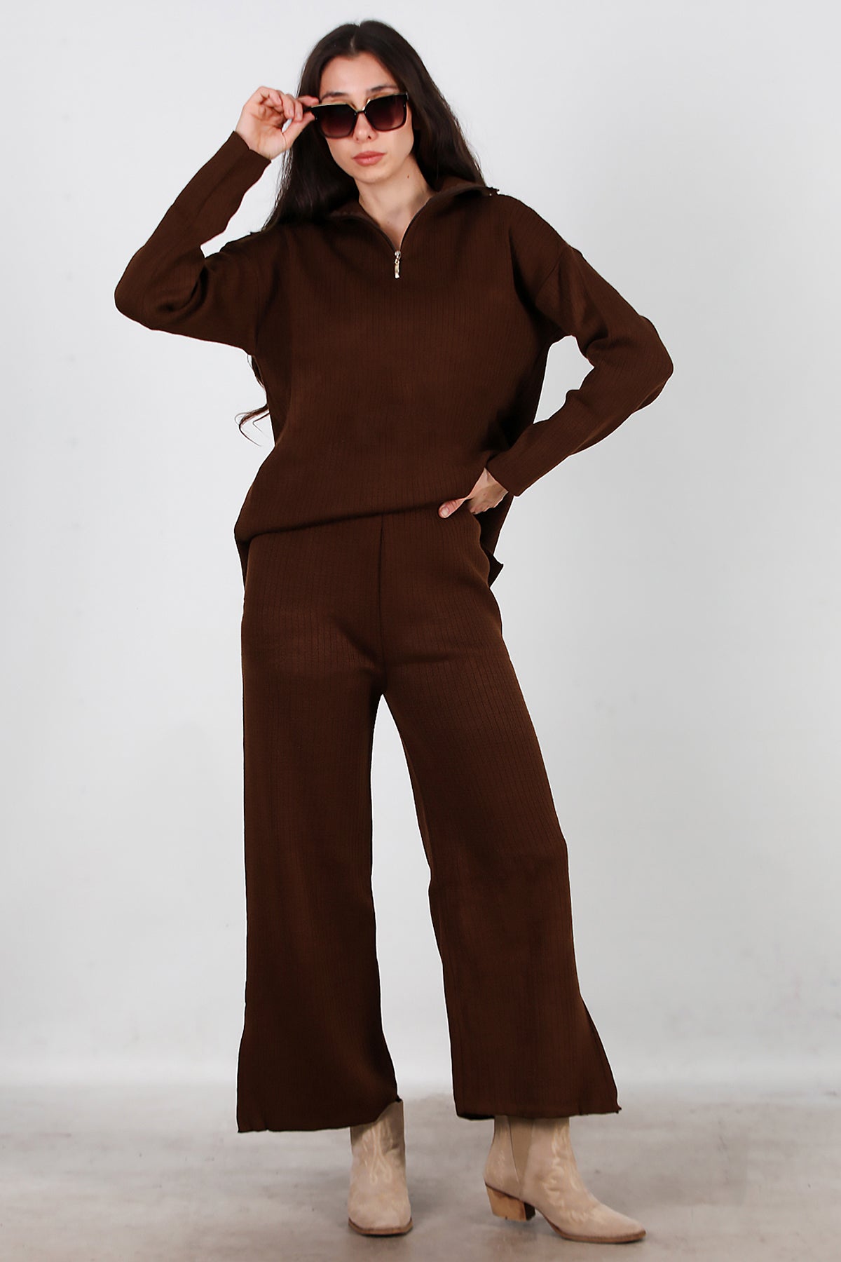 Kadın Fermuar Detay Triko Takım Kahverengi