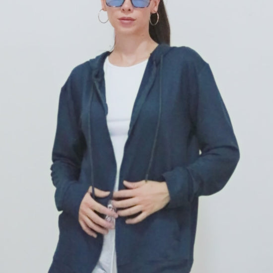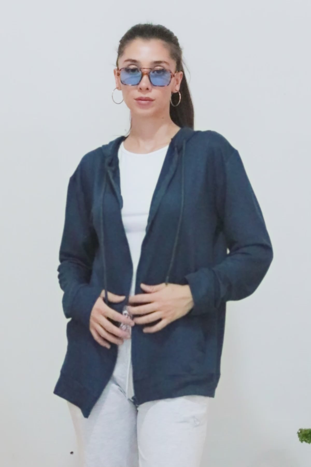 Kadın Fermuarlı Cepli Kapşonlu Ceket Lacivert