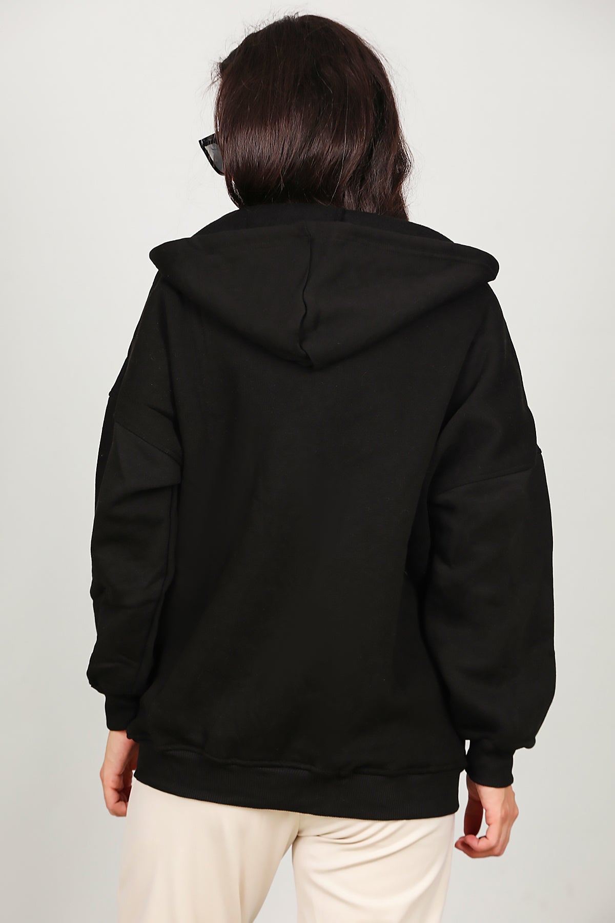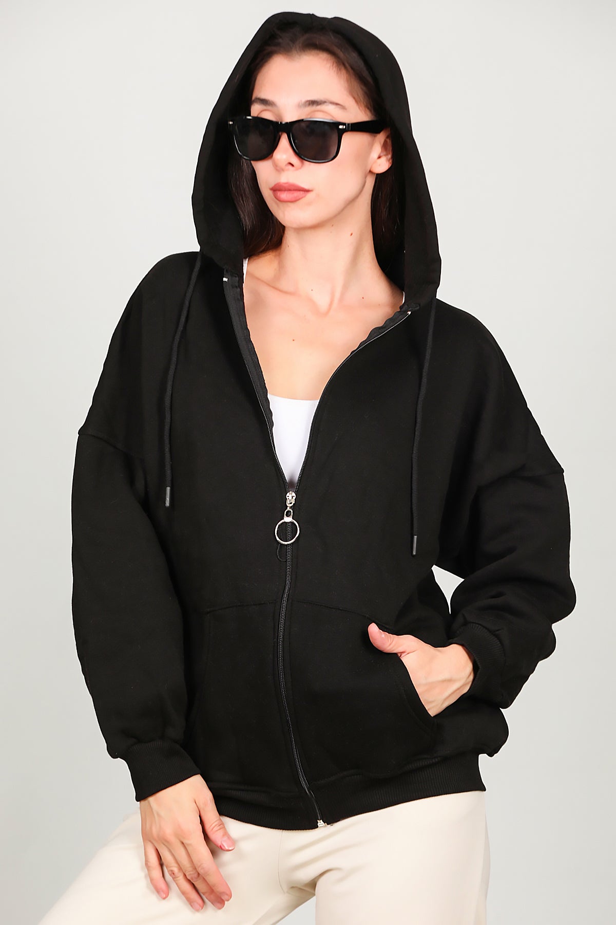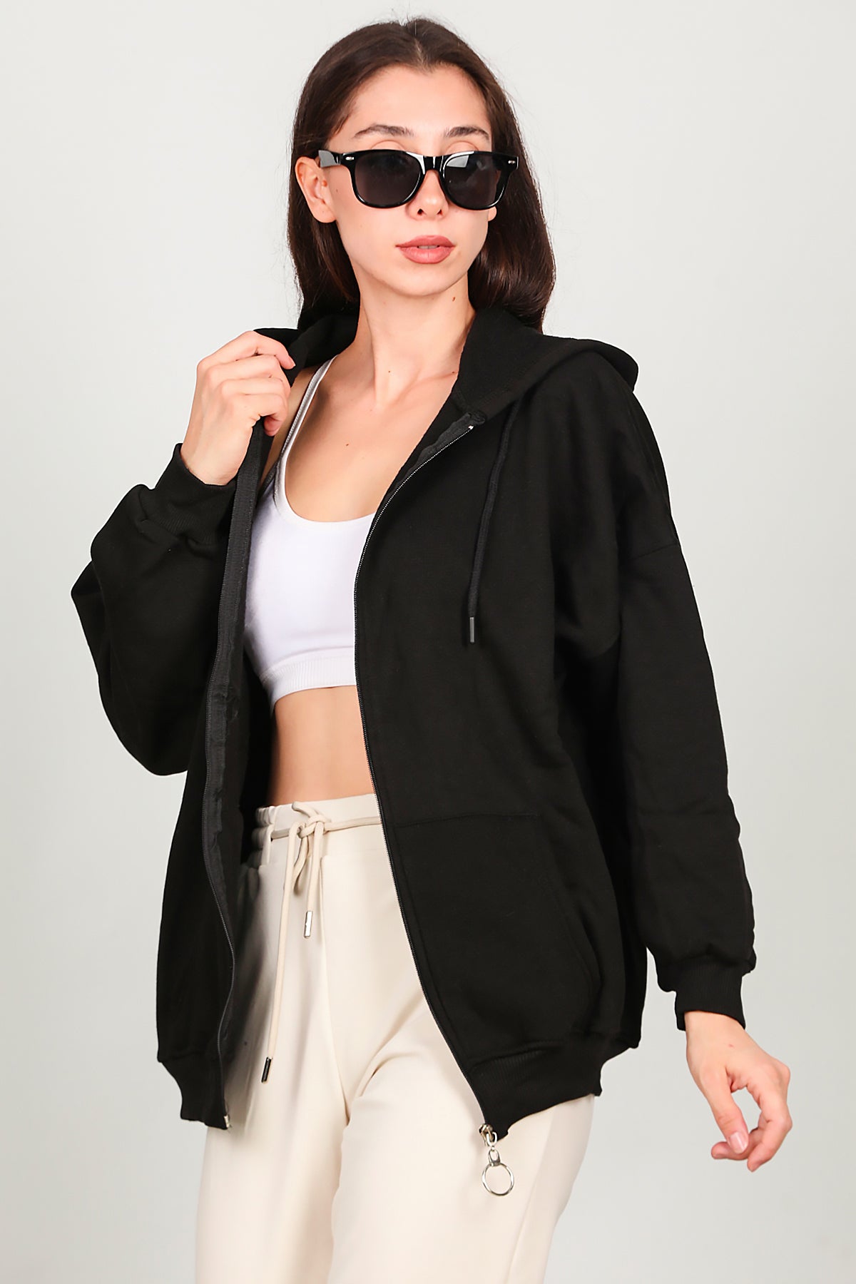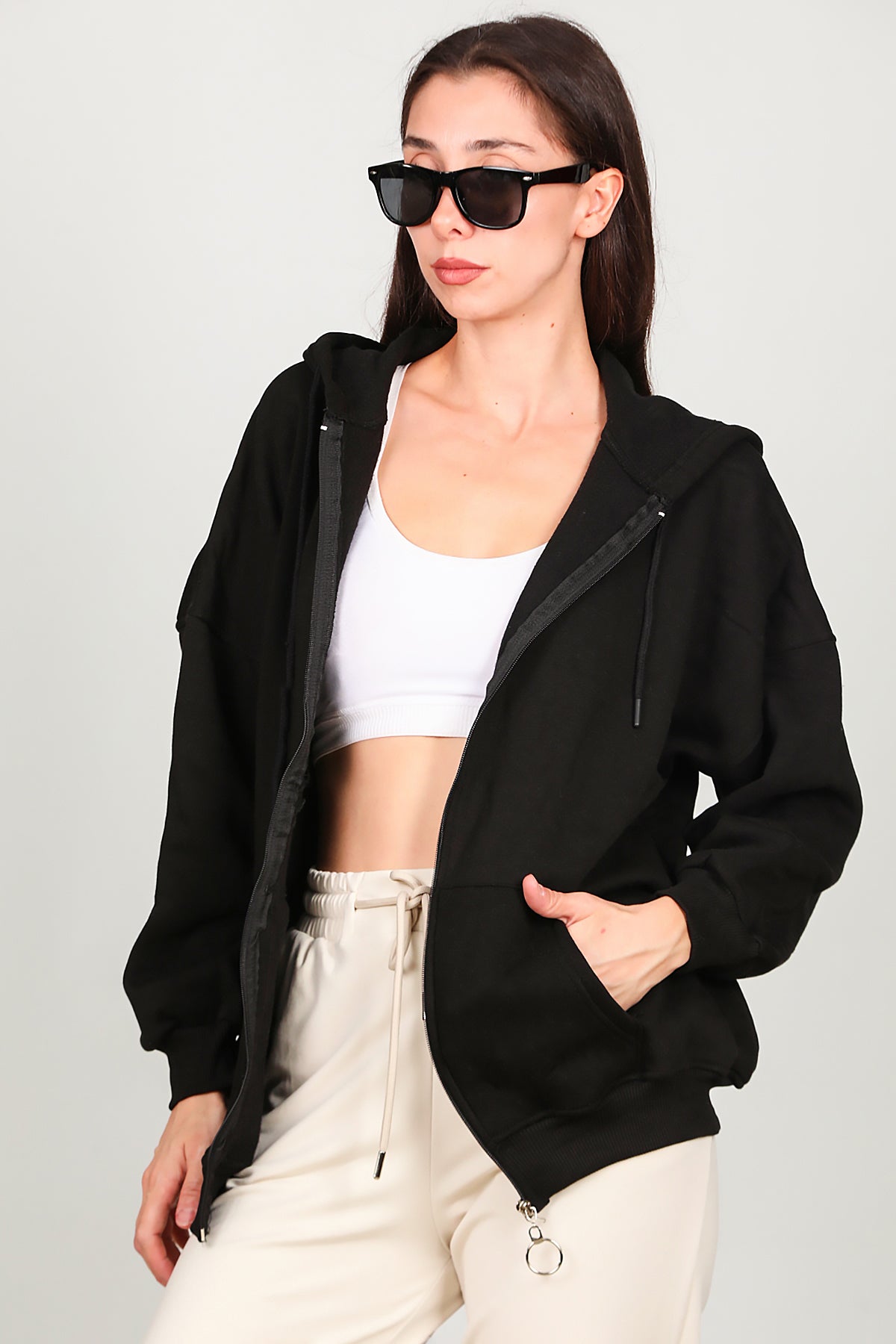 Kadın Fermuarlı Kapşonlu Sweat Siyah