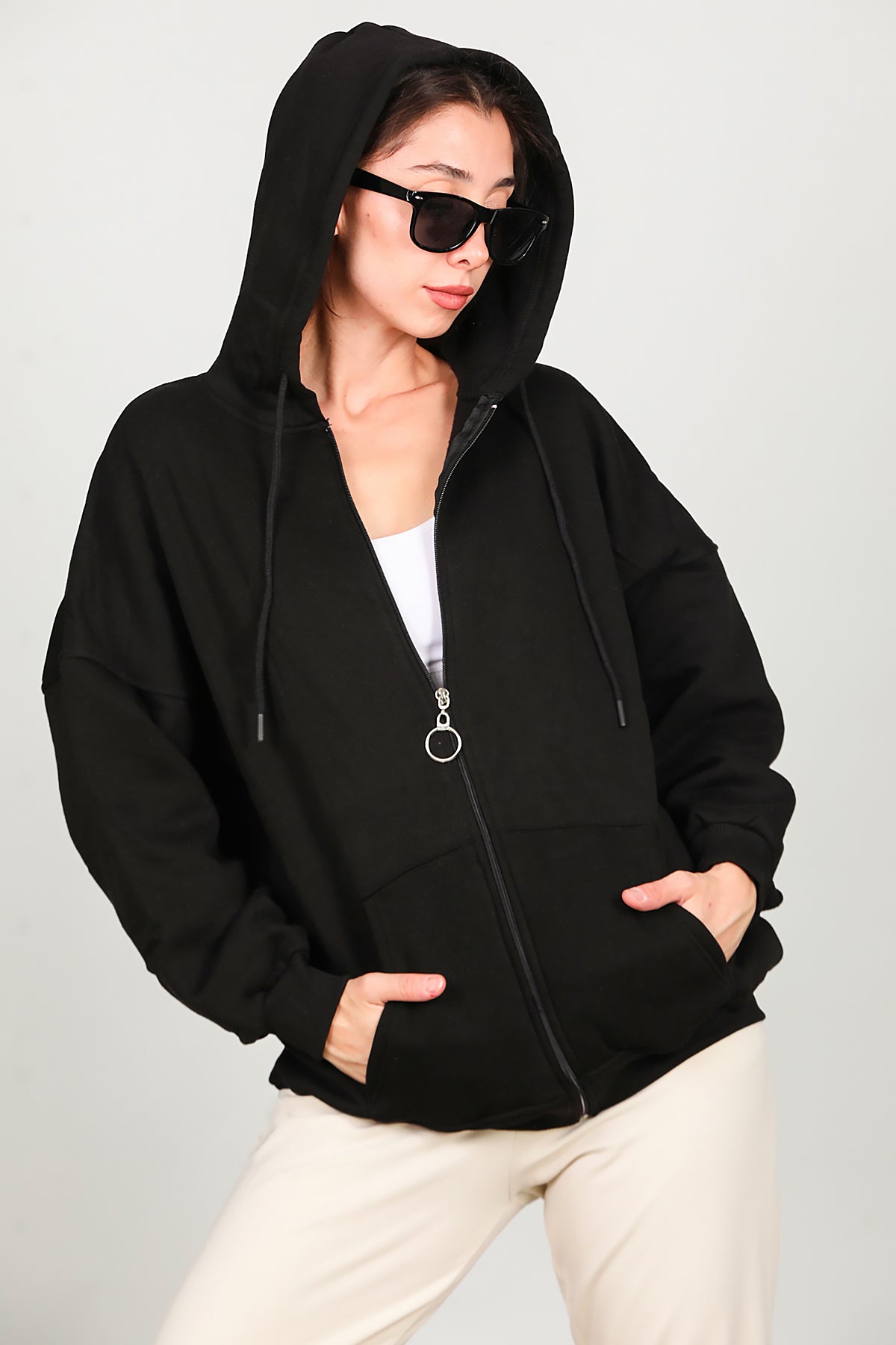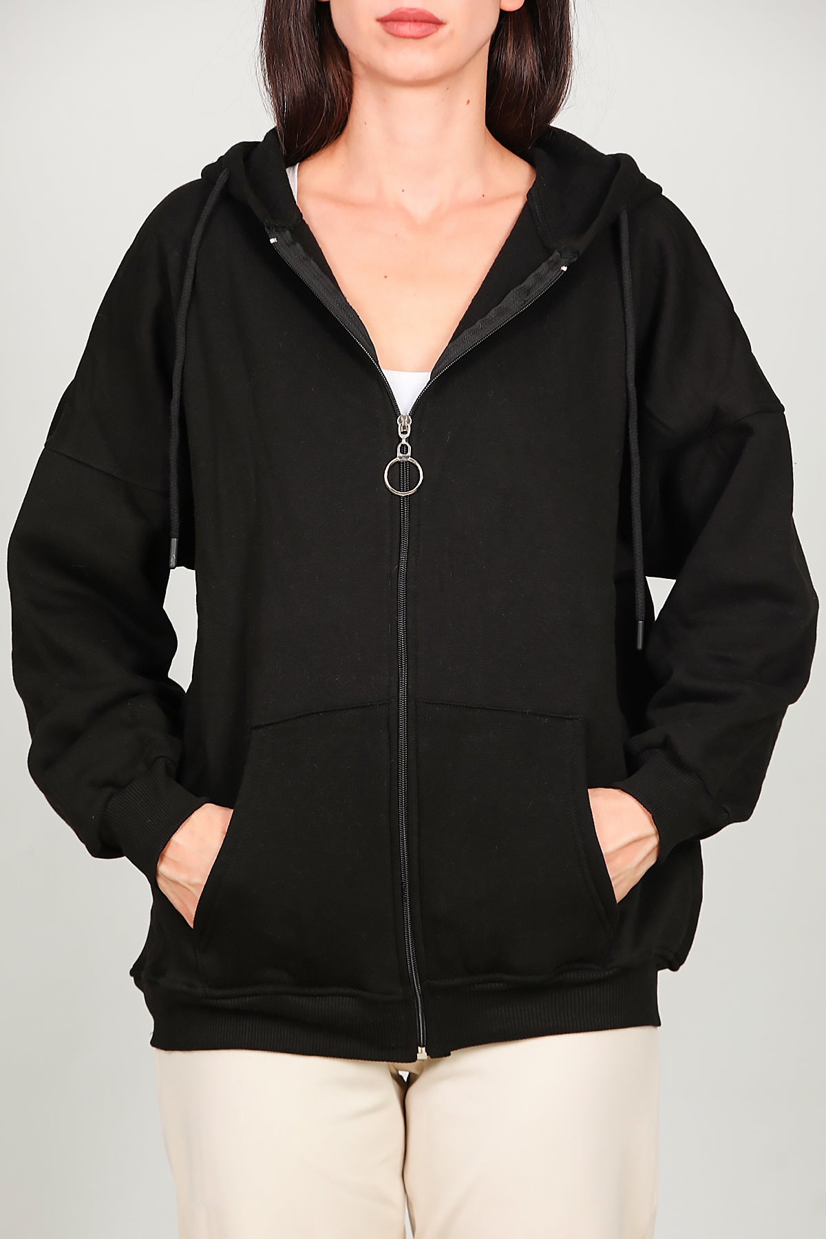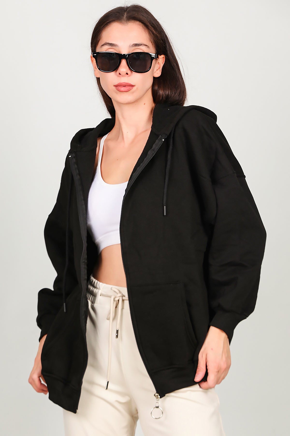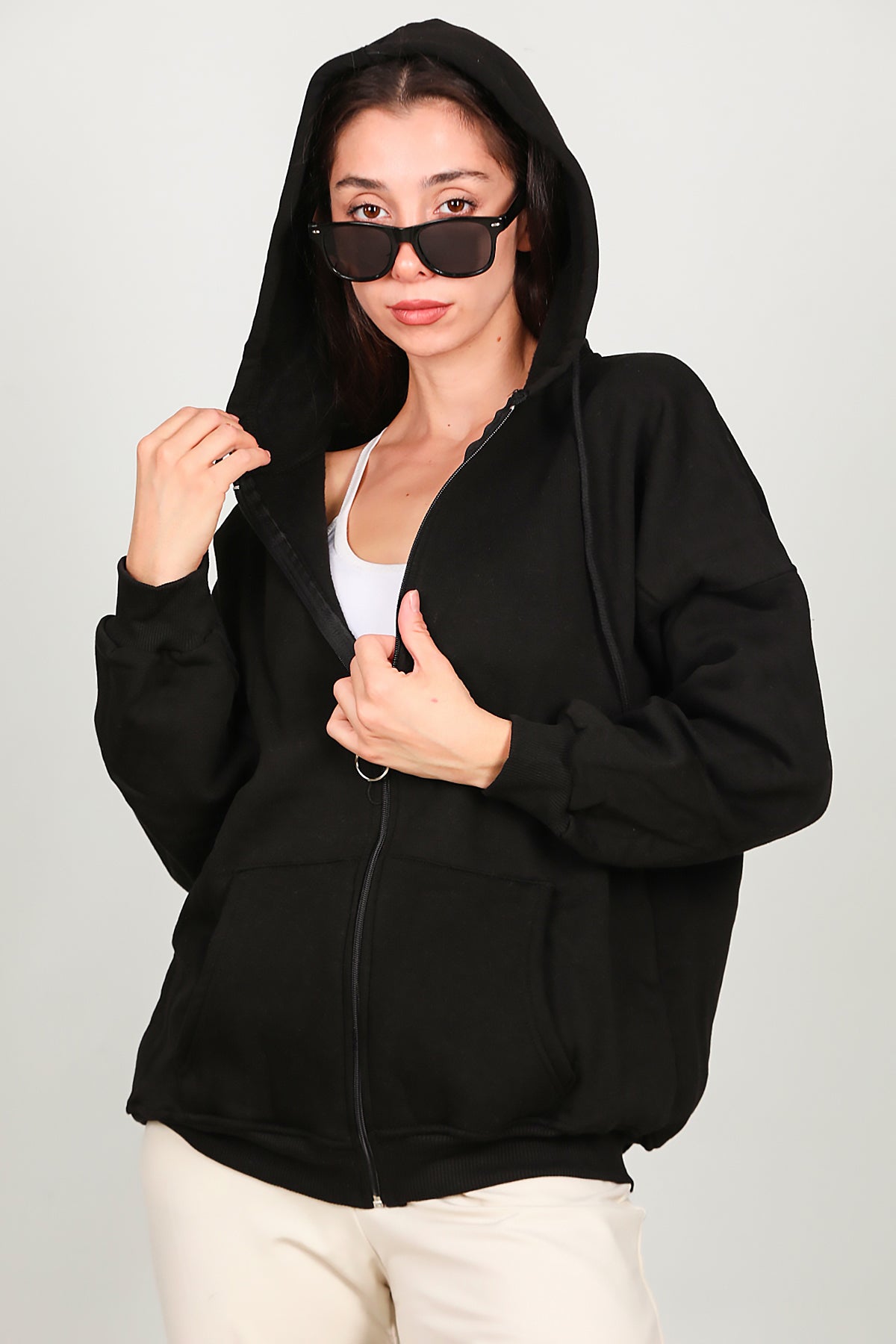 Kadın Fermuarlı Kapşonlu Sweat Siyah