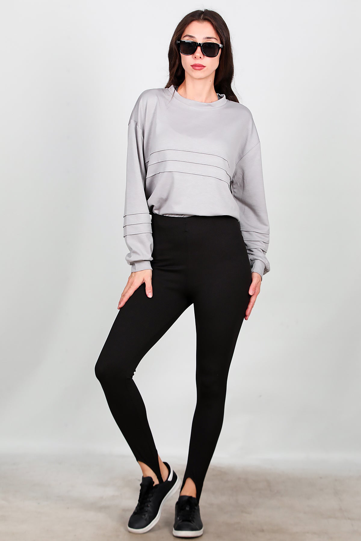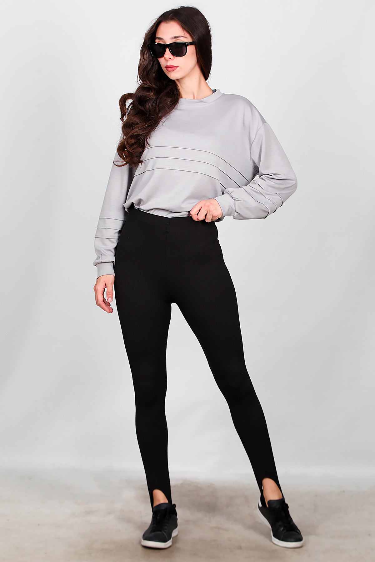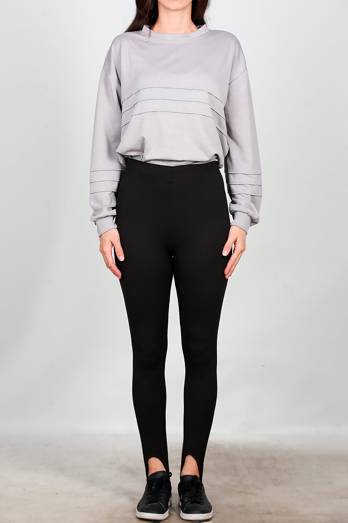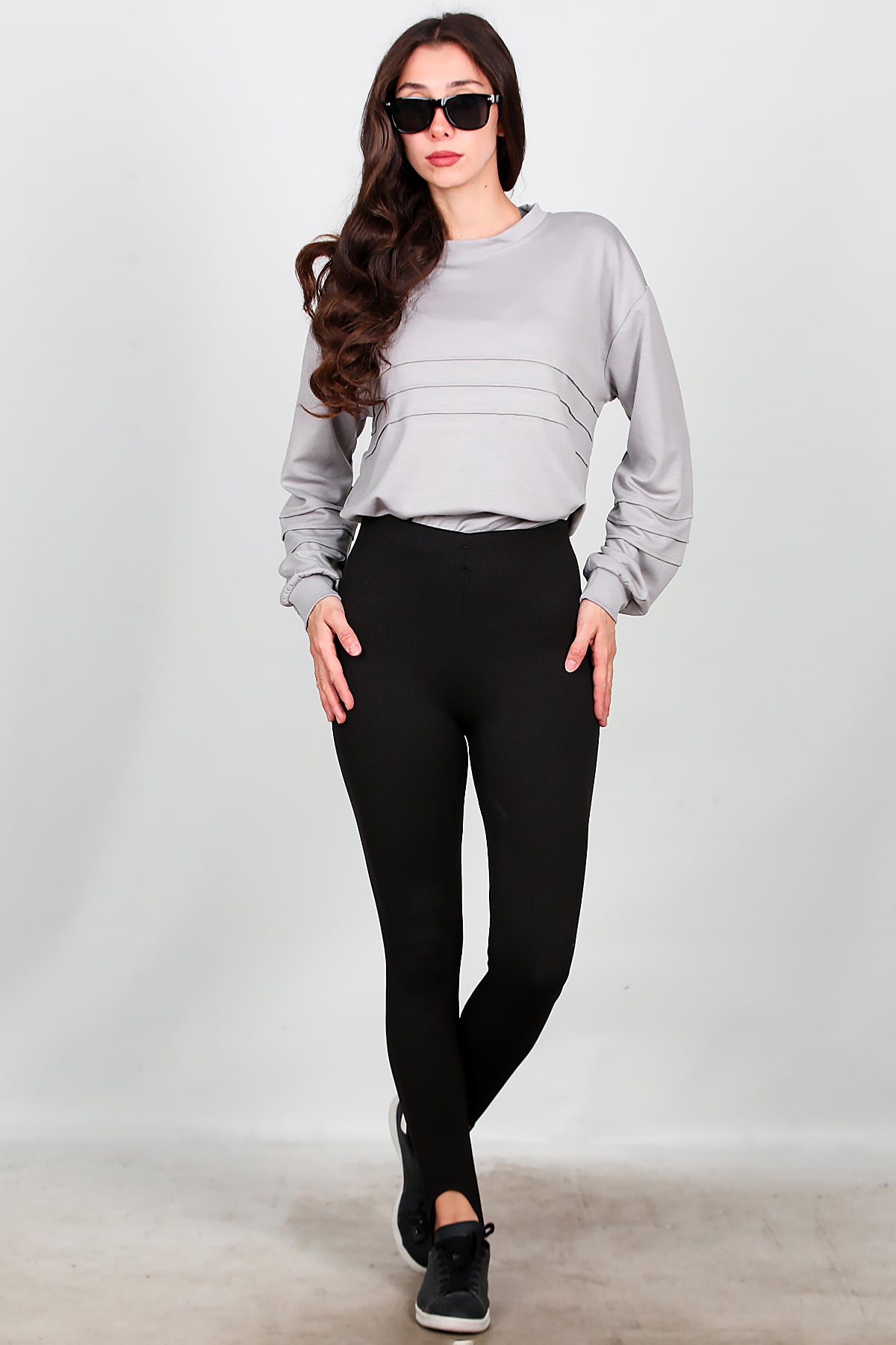 Kadın Fitilli Ayaktan Geçmeli Tayt Siyah
