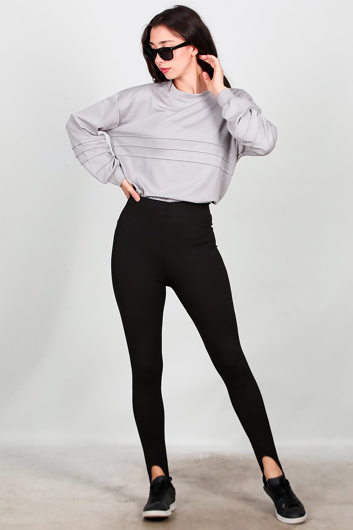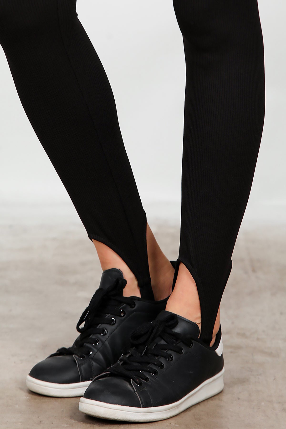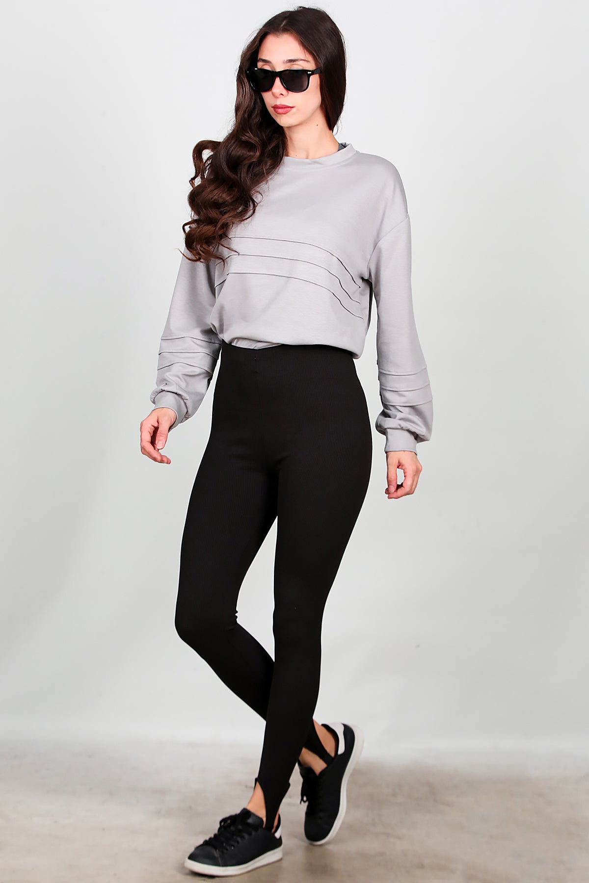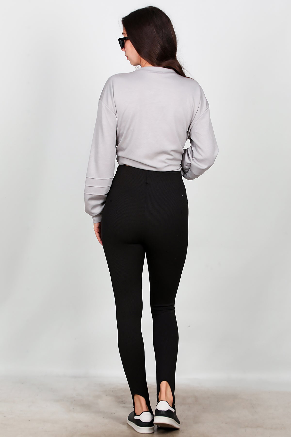 Kadın Fitilli Ayaktan Geçmeli Tayt Siyah