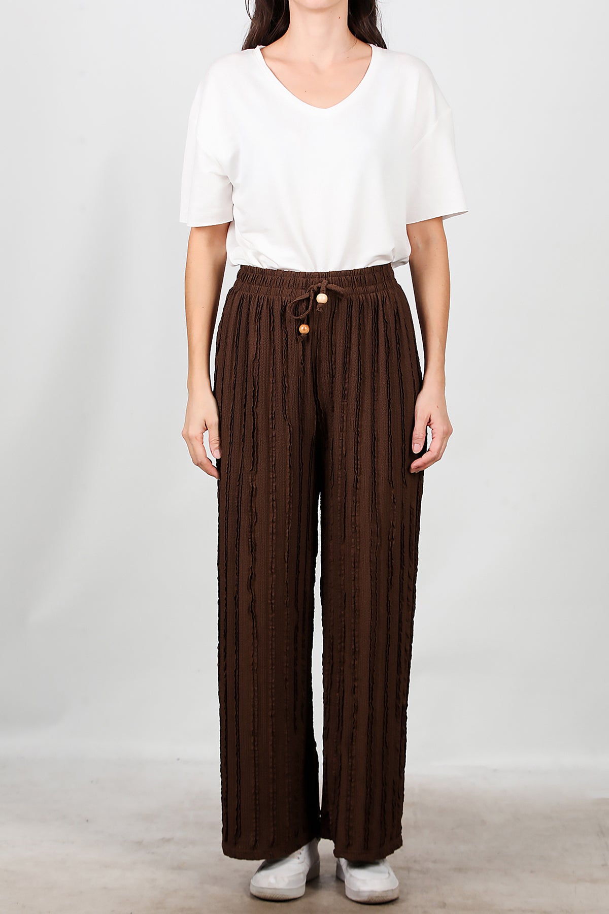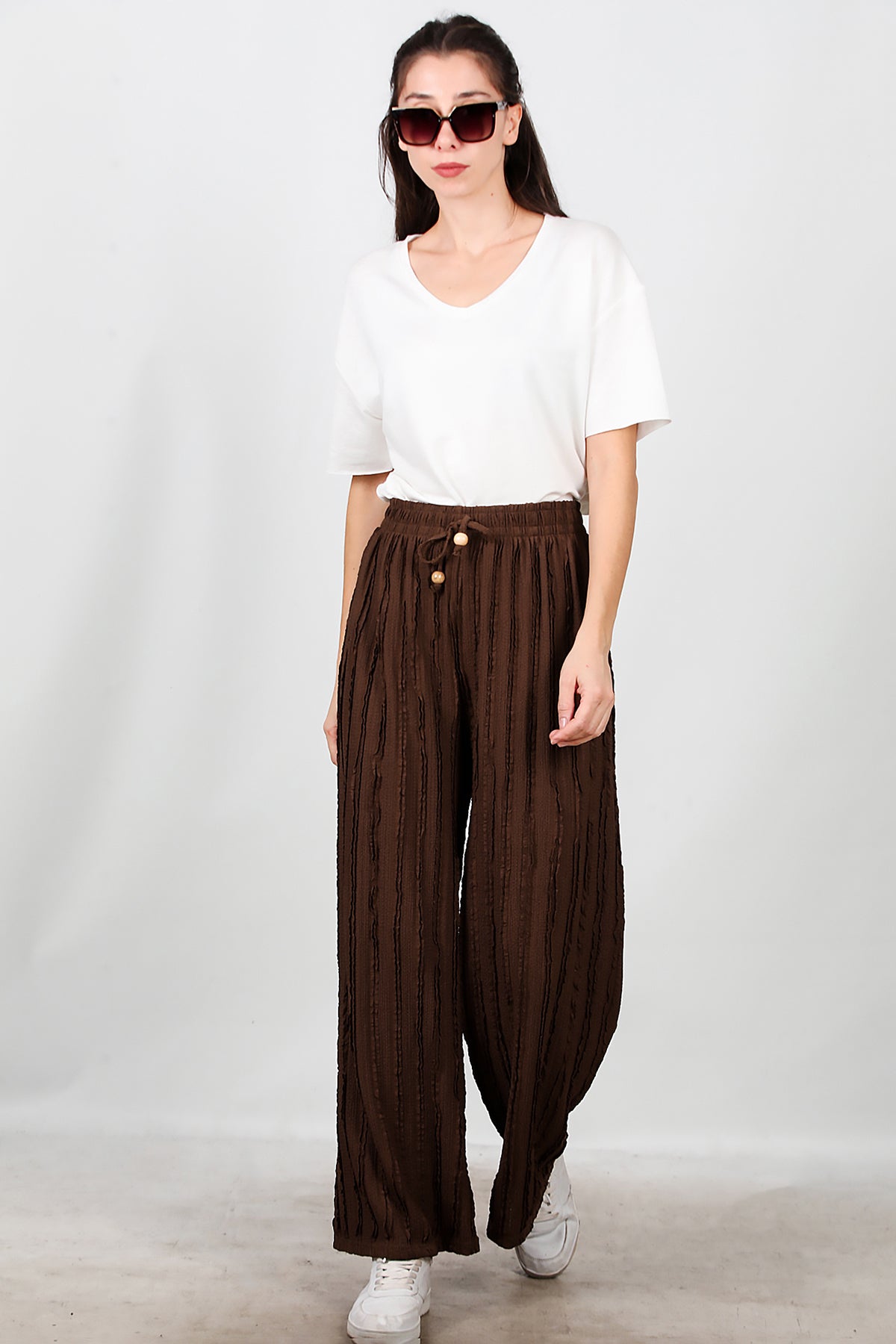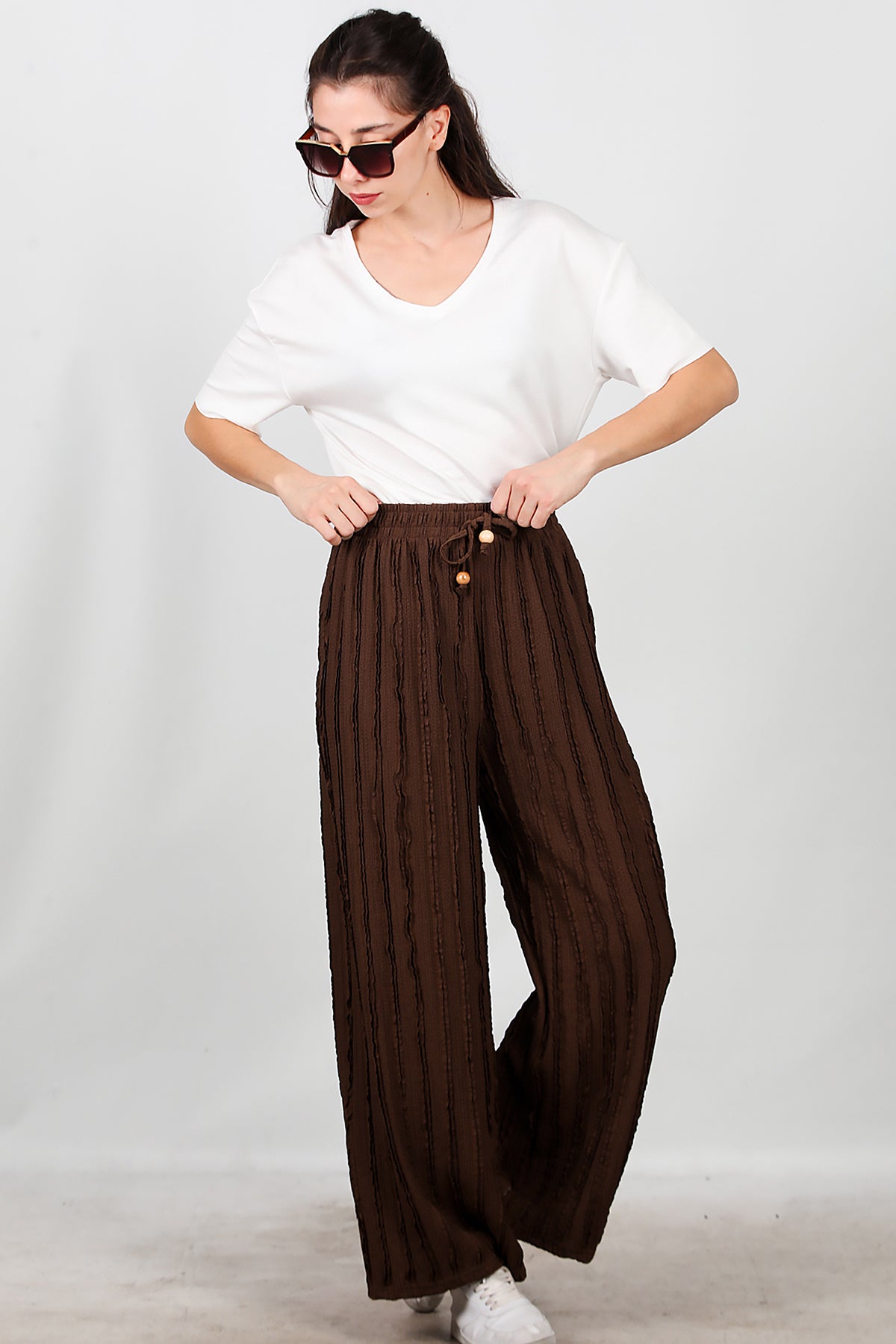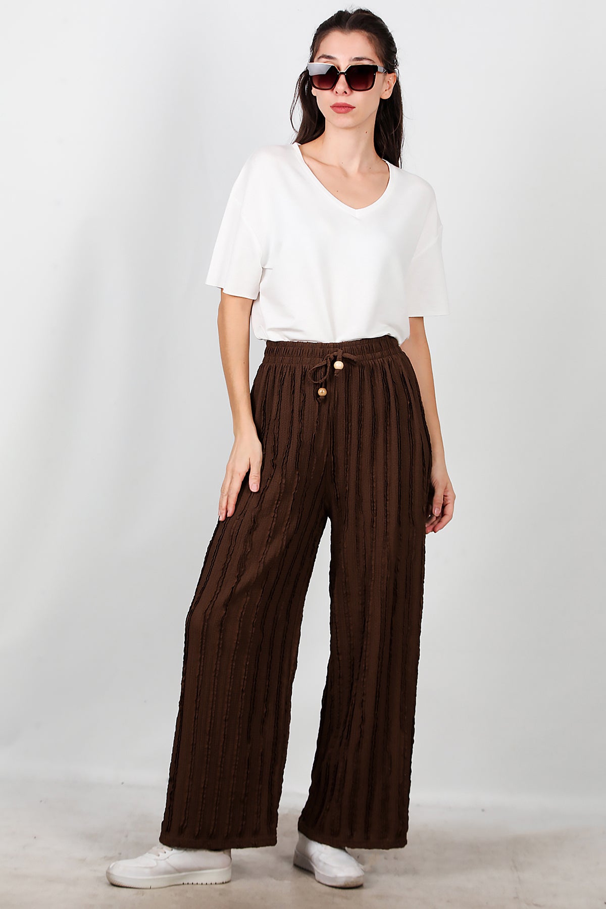 Kadın Fitilli Bol Paça Pantolon Kahverengi