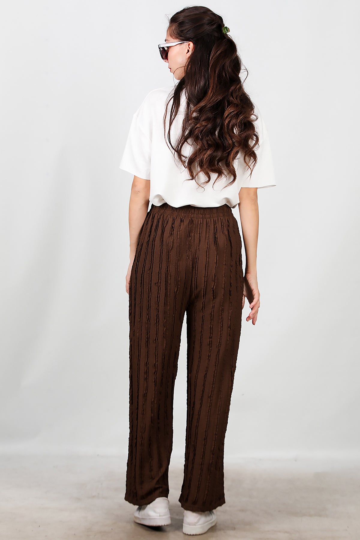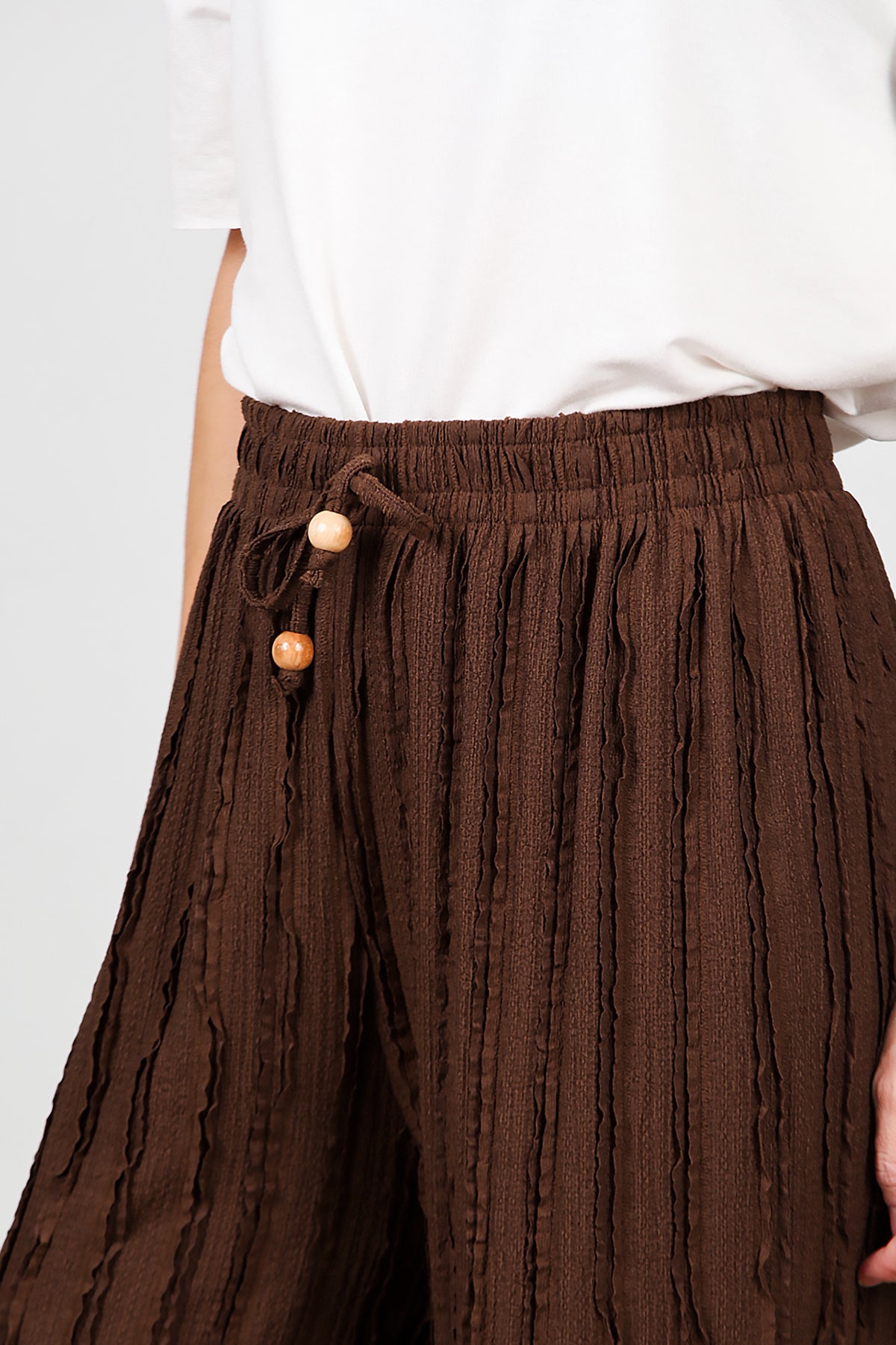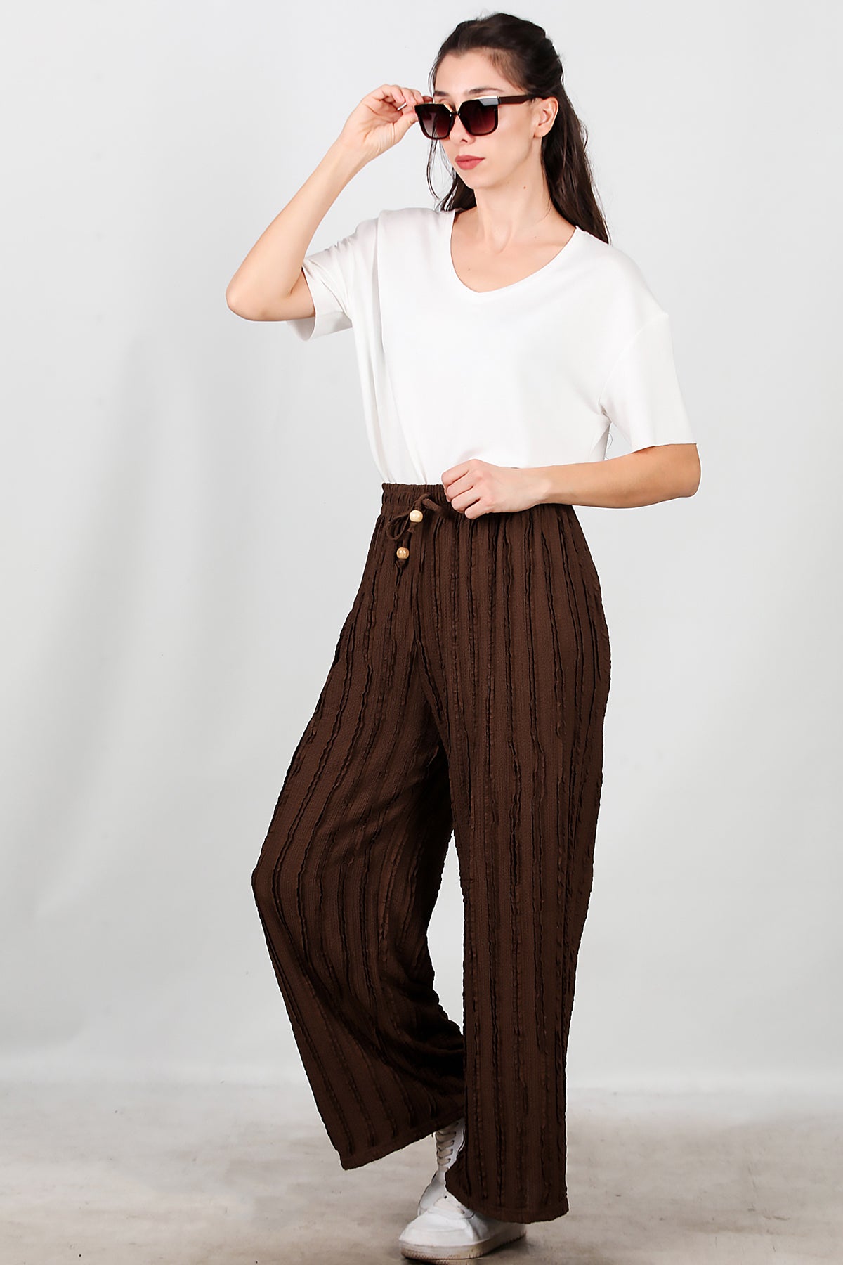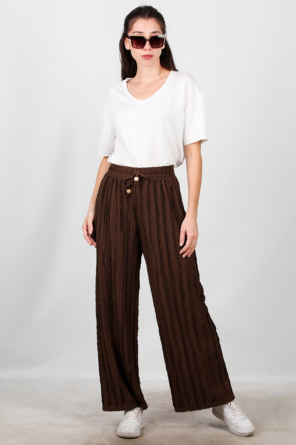 Kadın Fitilli Bol Paça Pantolon Kahverengi