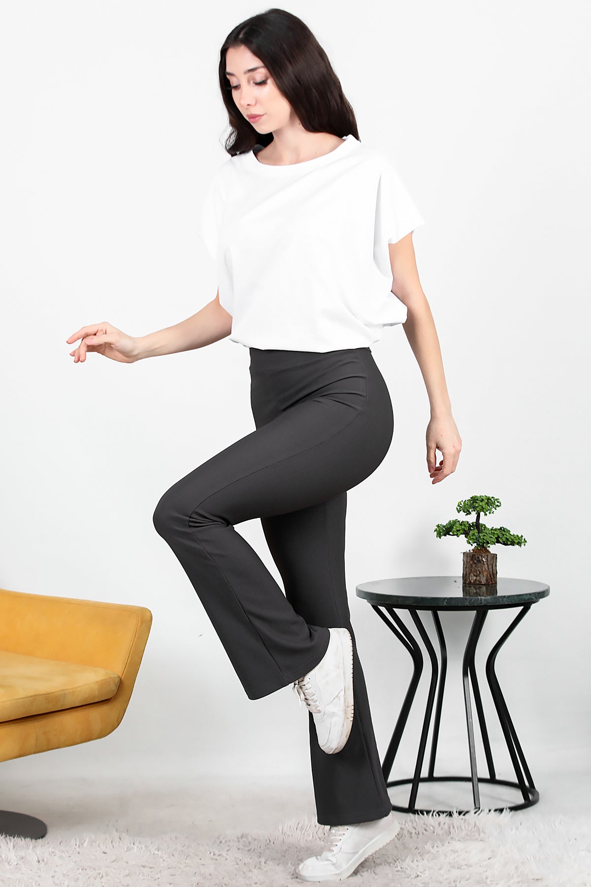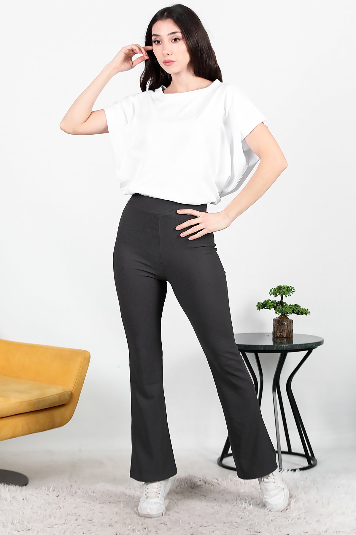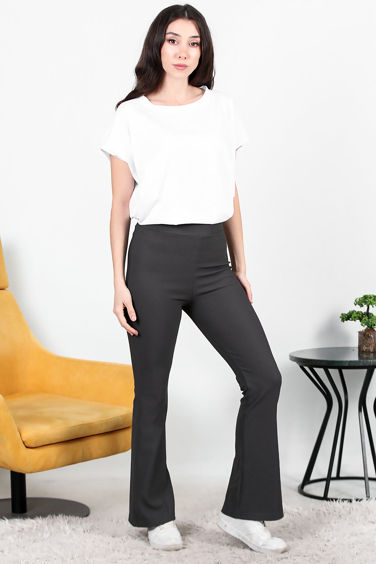 Kadın Fitilli İspanyol Paça Tayt Füme