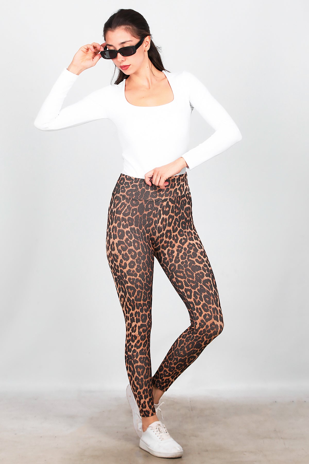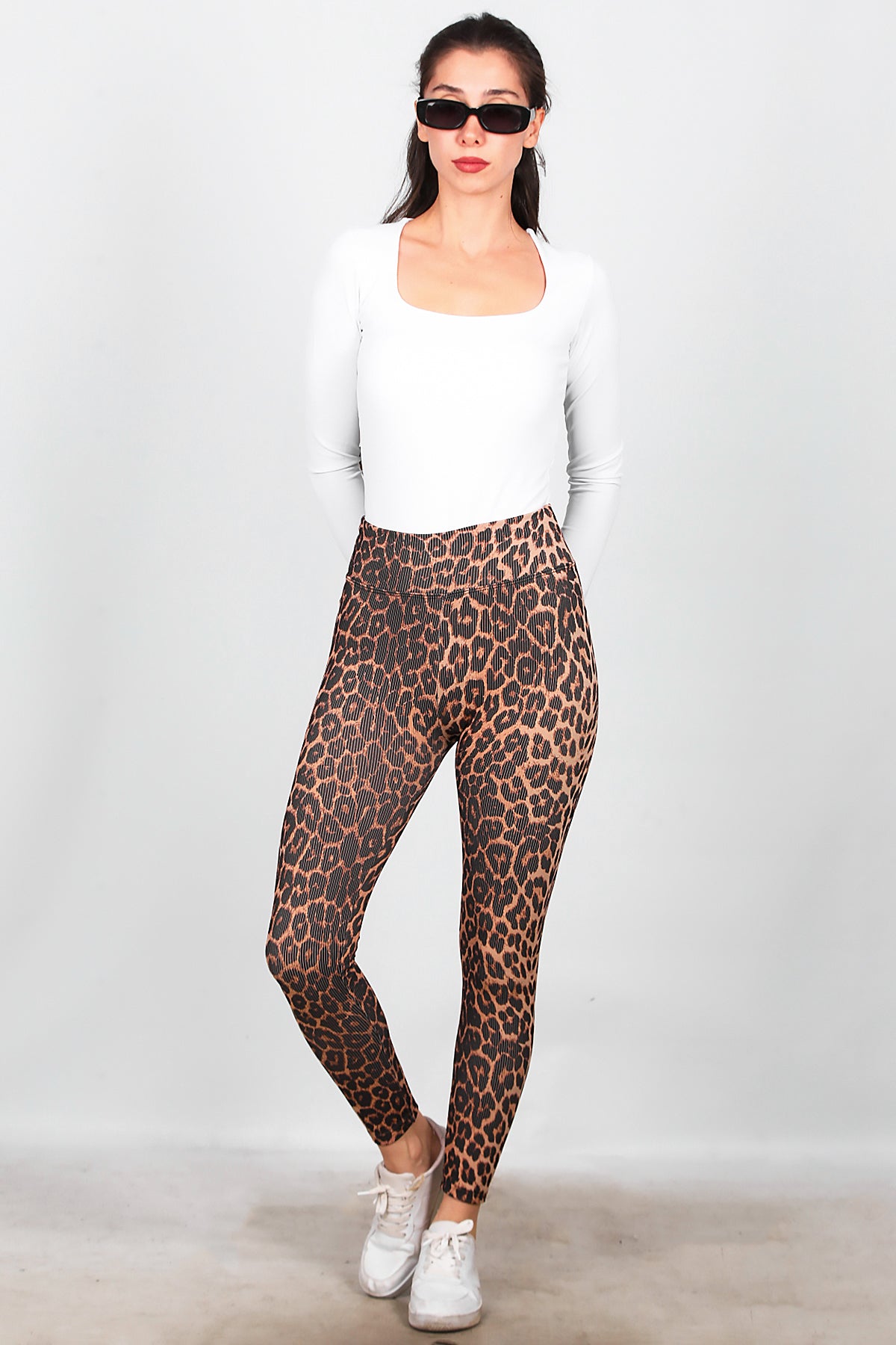 Kadın Fitilli Leopar Desenli Tayt Kahverengi