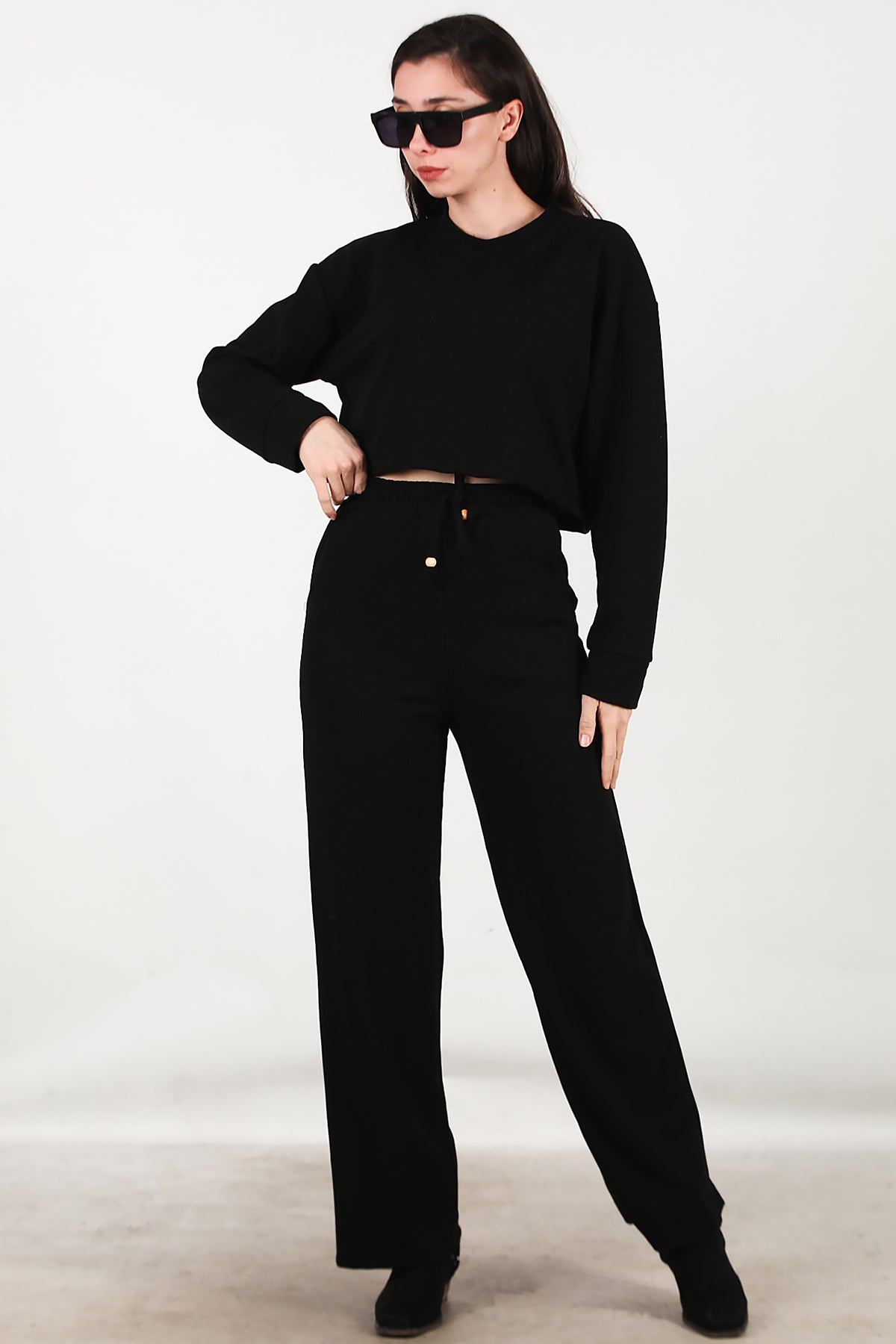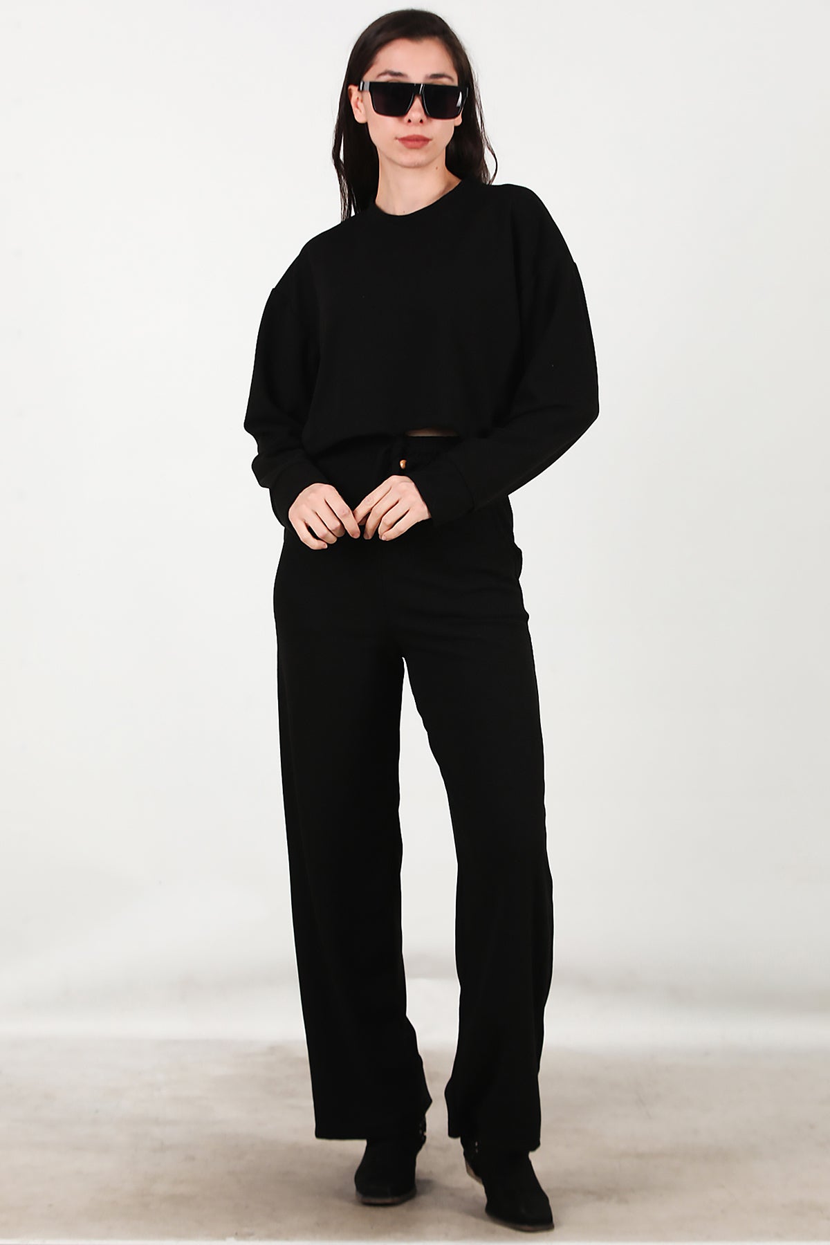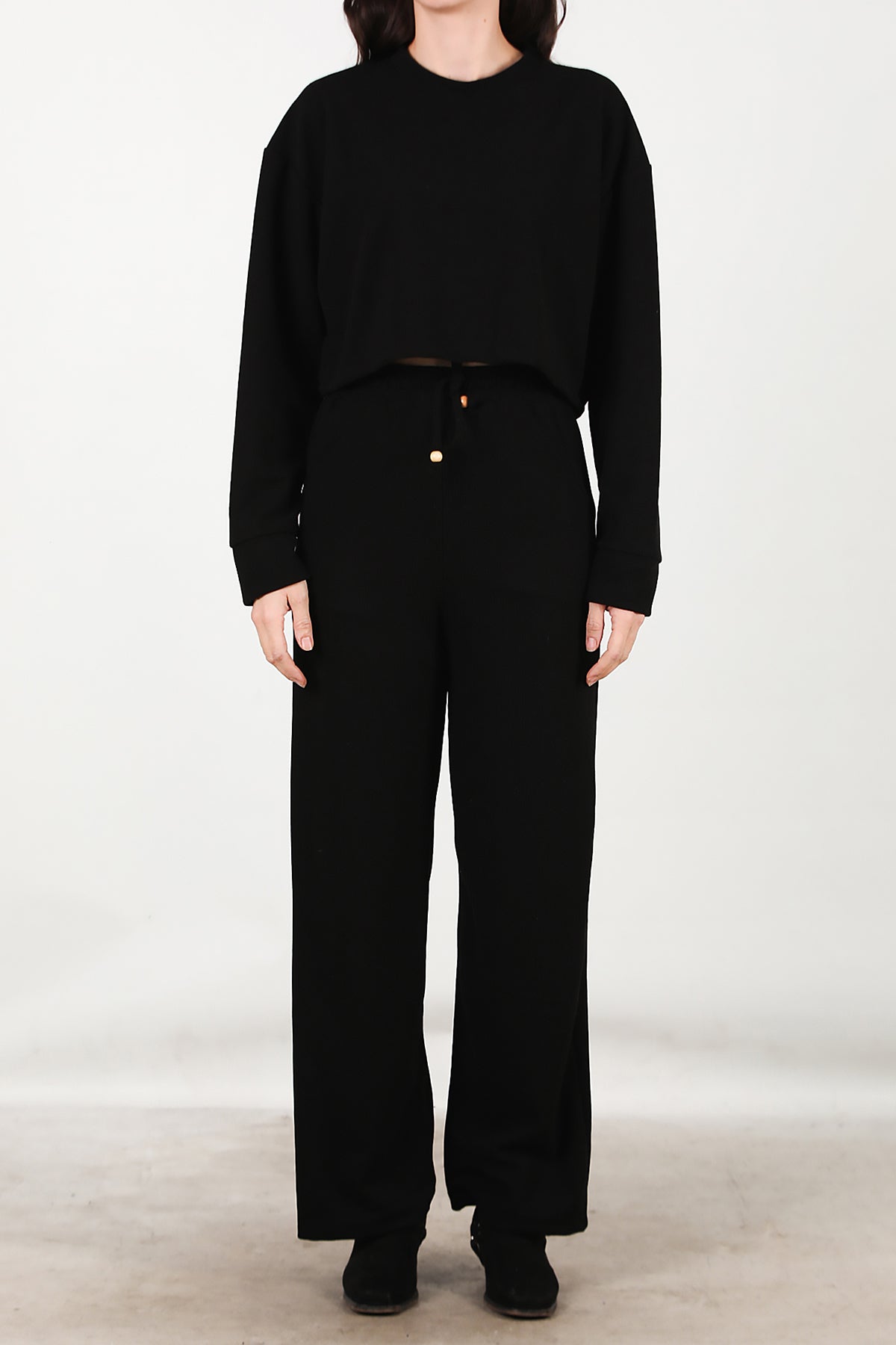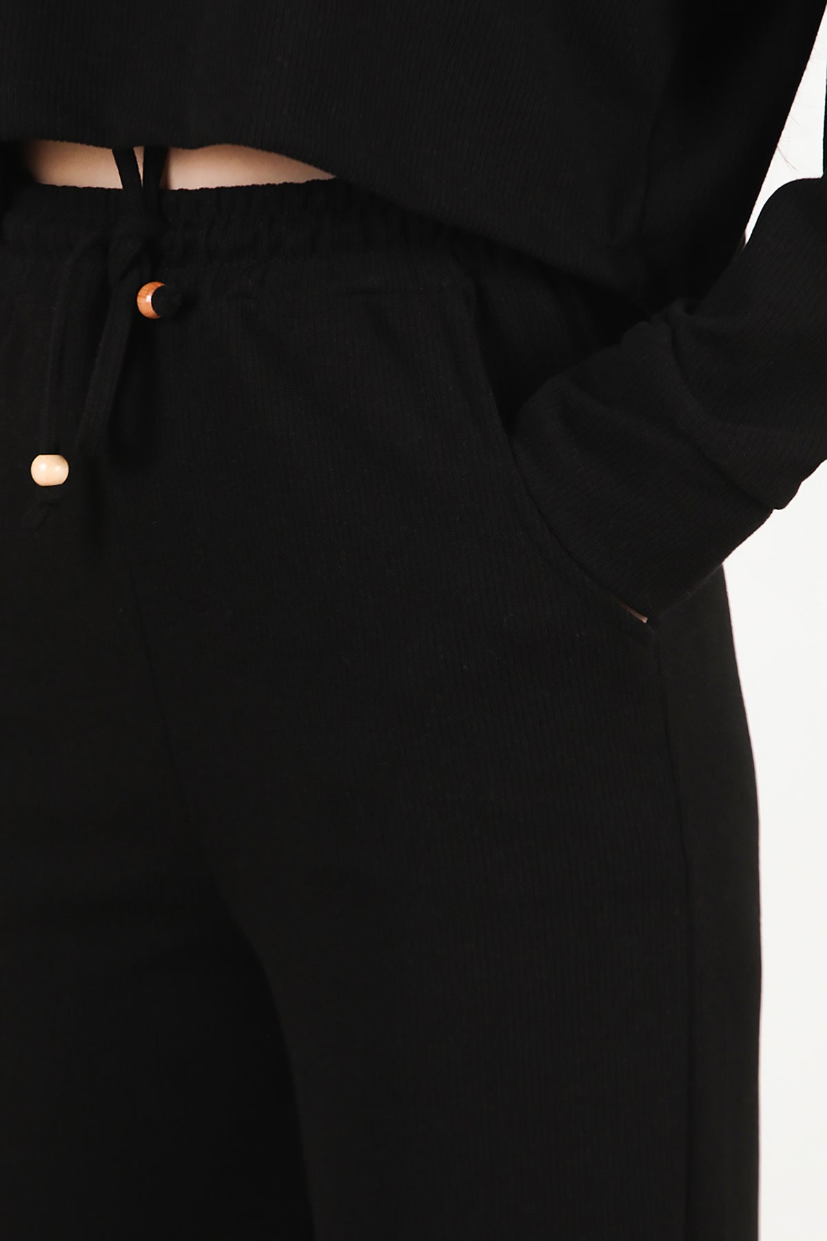Kadın Fitilli Üst Kısa Takım Siyah