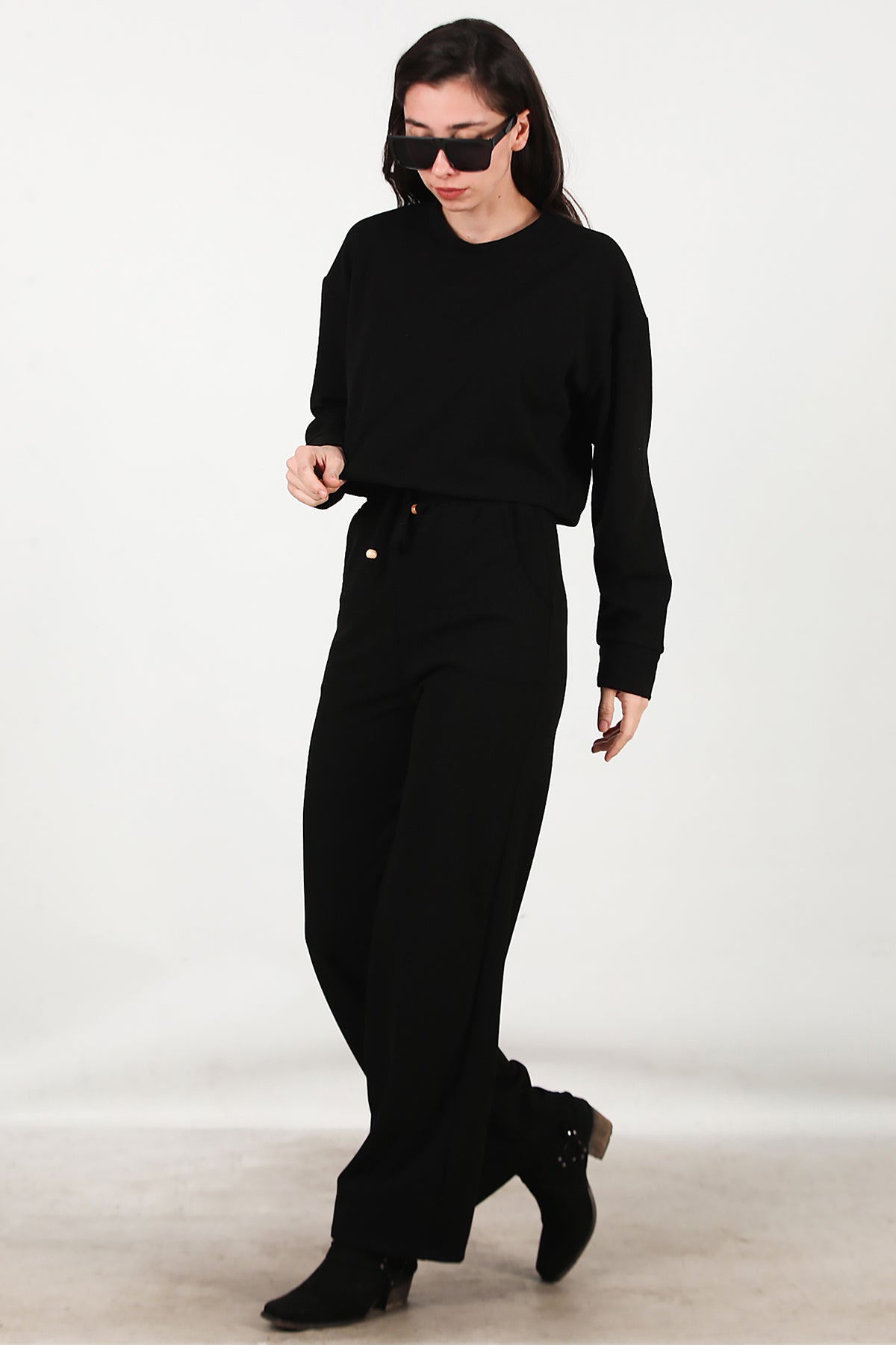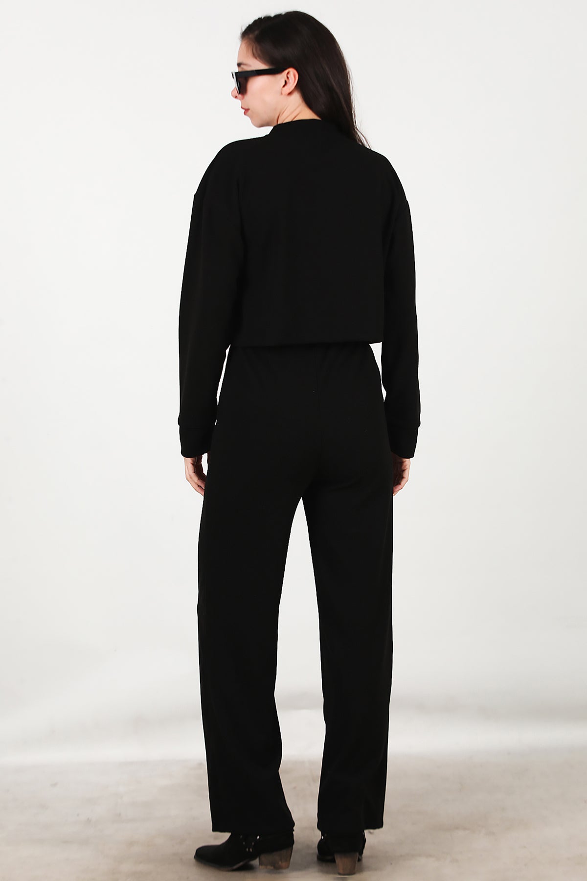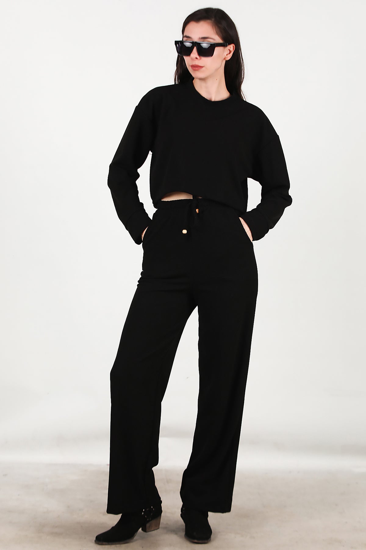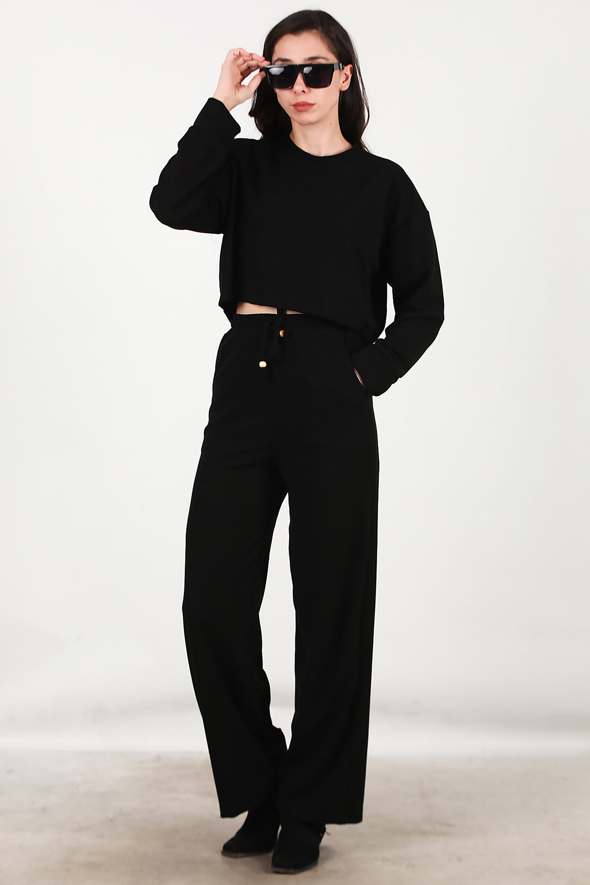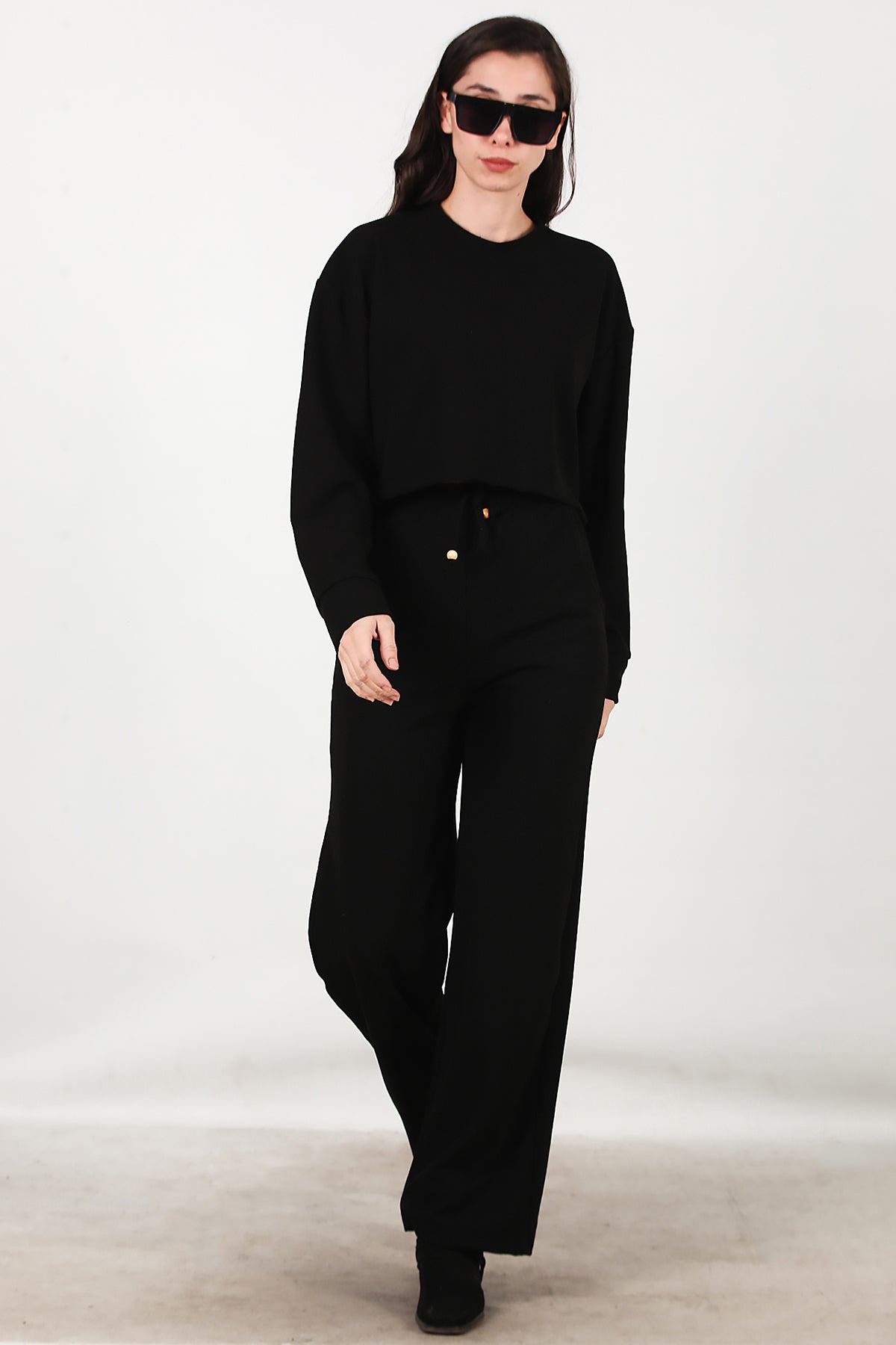 Kadın Fitilli Üst Kısa Takım Siyah