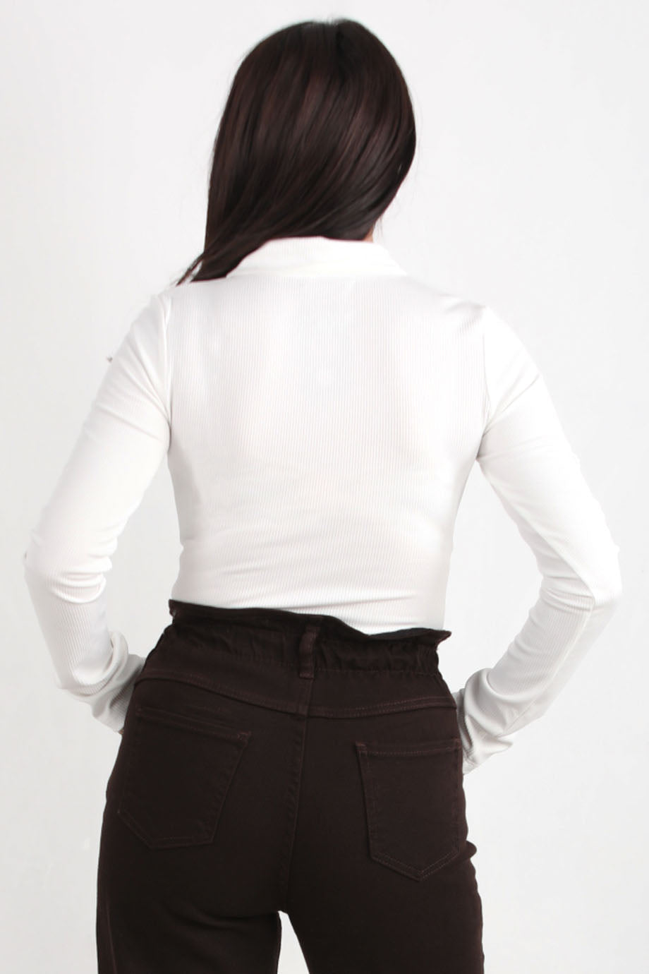 Kadın Fitilli Uzun Kol Yakalı Bluz Ekru