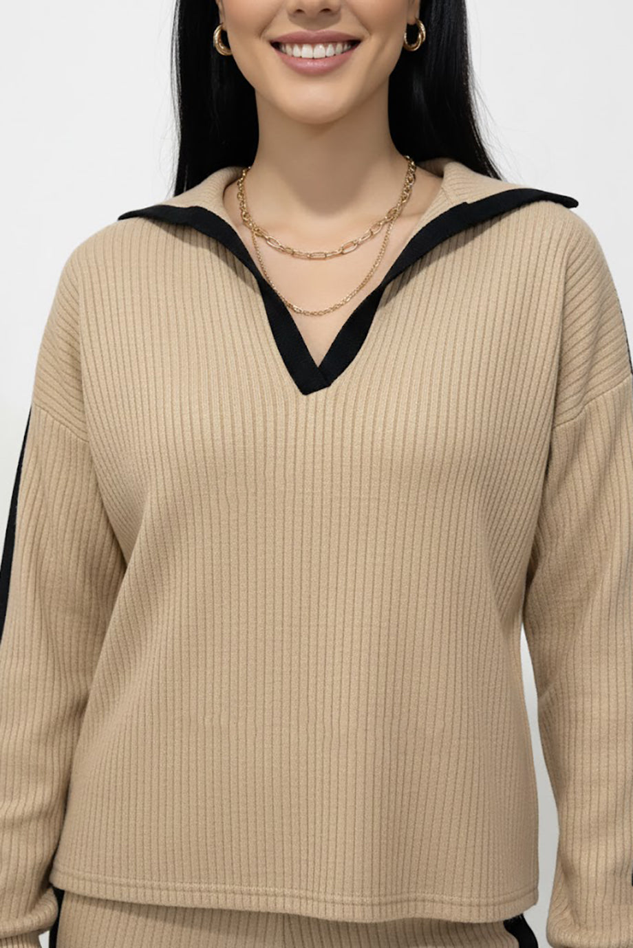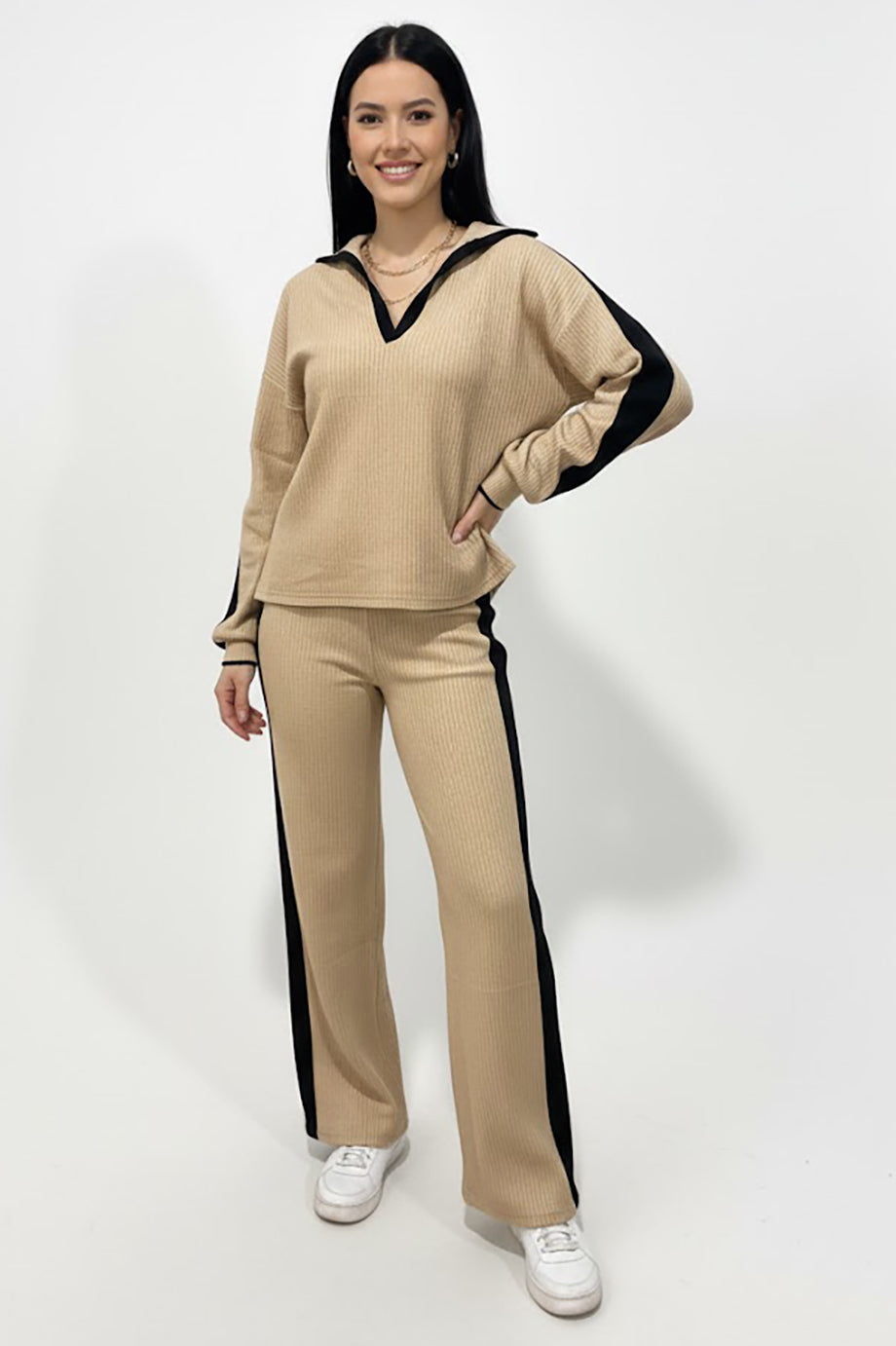 Vestra Kadın Garnili Önü V Yakalı Takım Bej