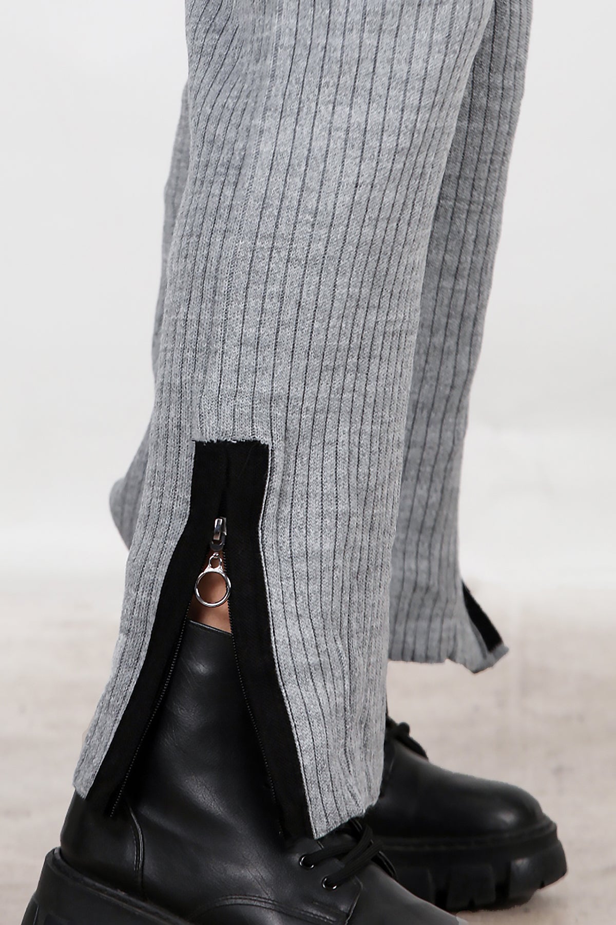 Kadın Garnili Paça Fermuarlı Triko Takım Antrasit