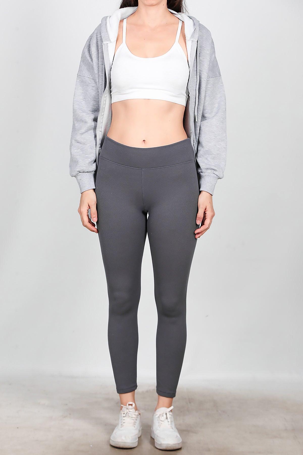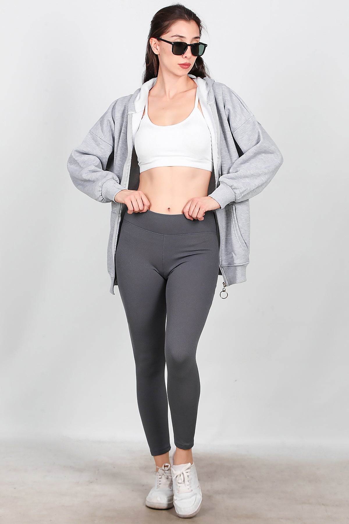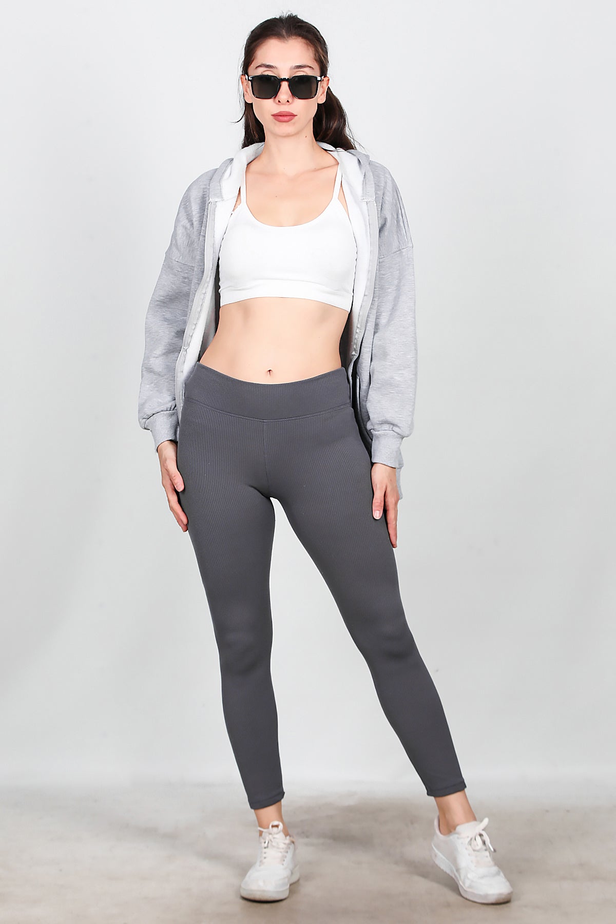 Kadın İçi Şardonlu Fitilli Tayt Füme