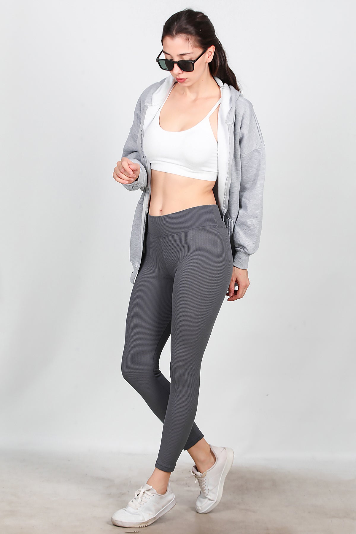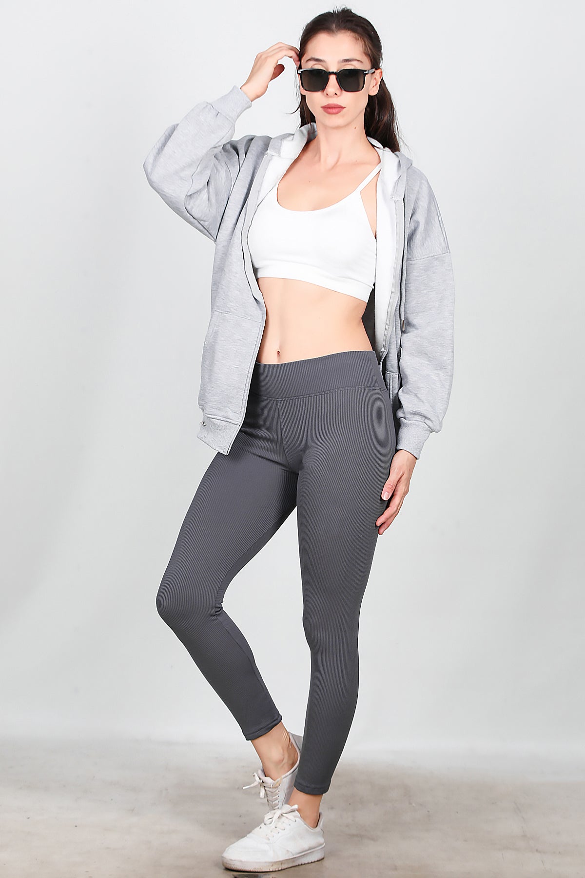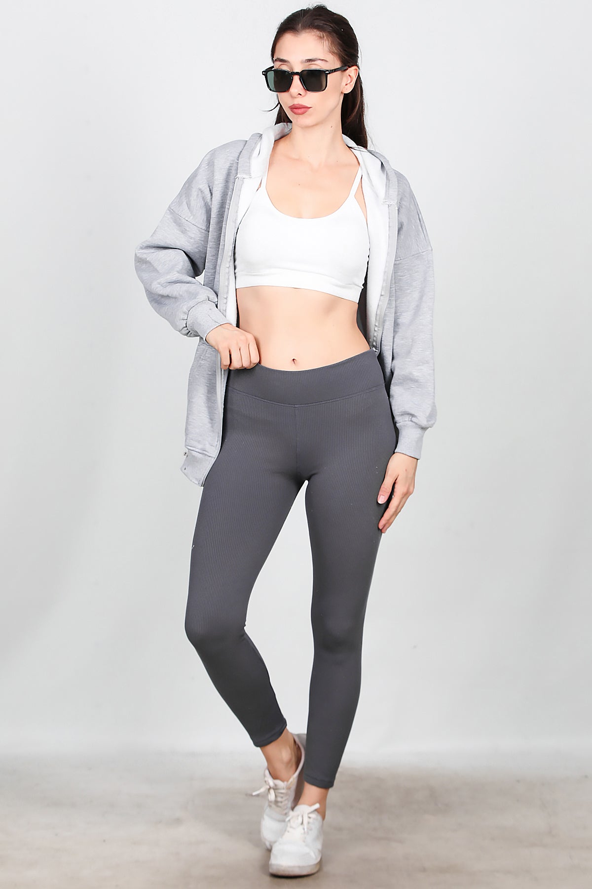 Kadın İçi Şardonlu Fitilli Tayt Füme