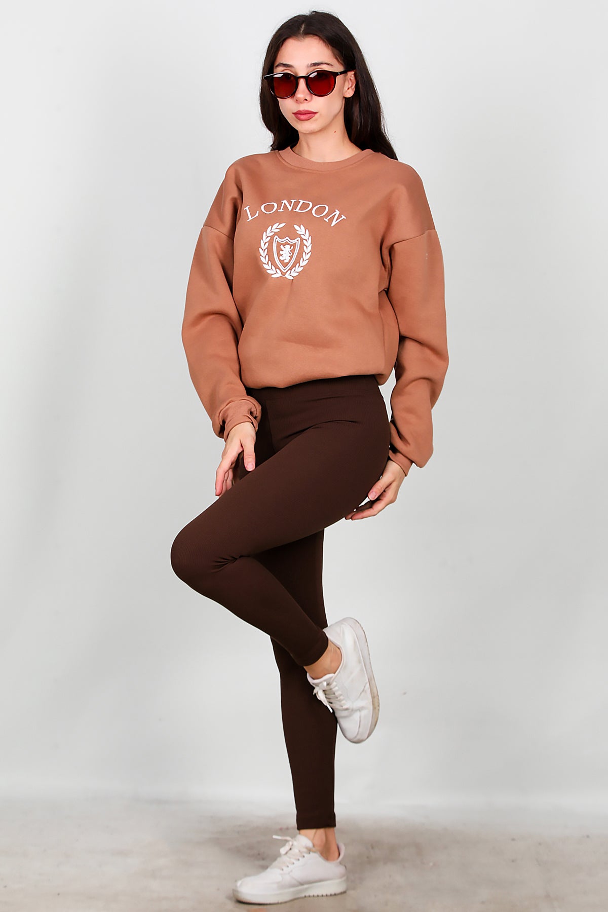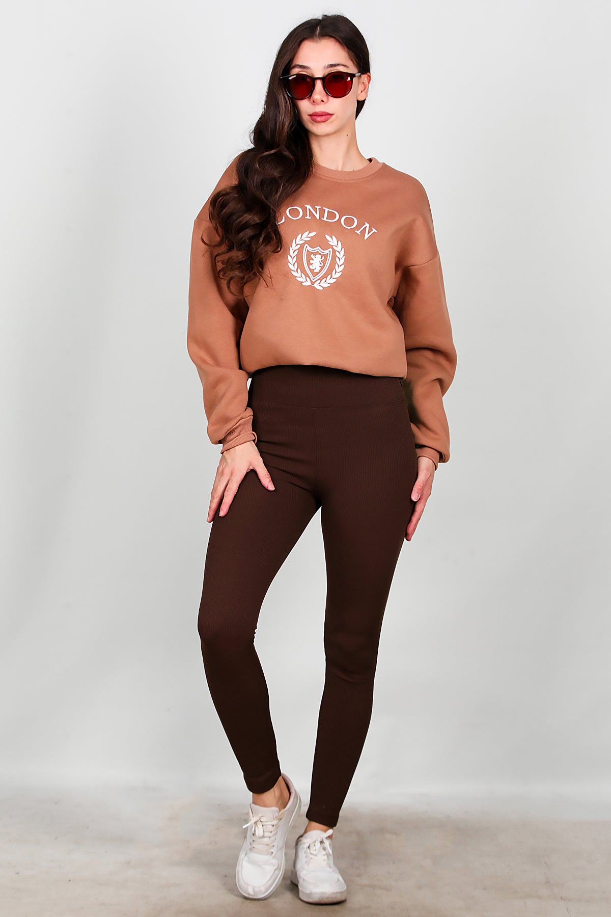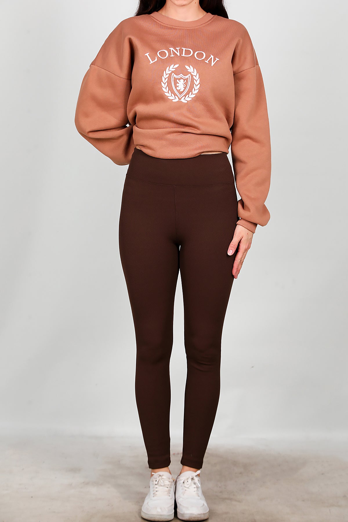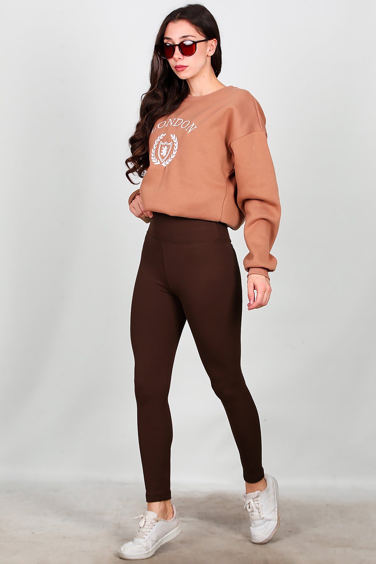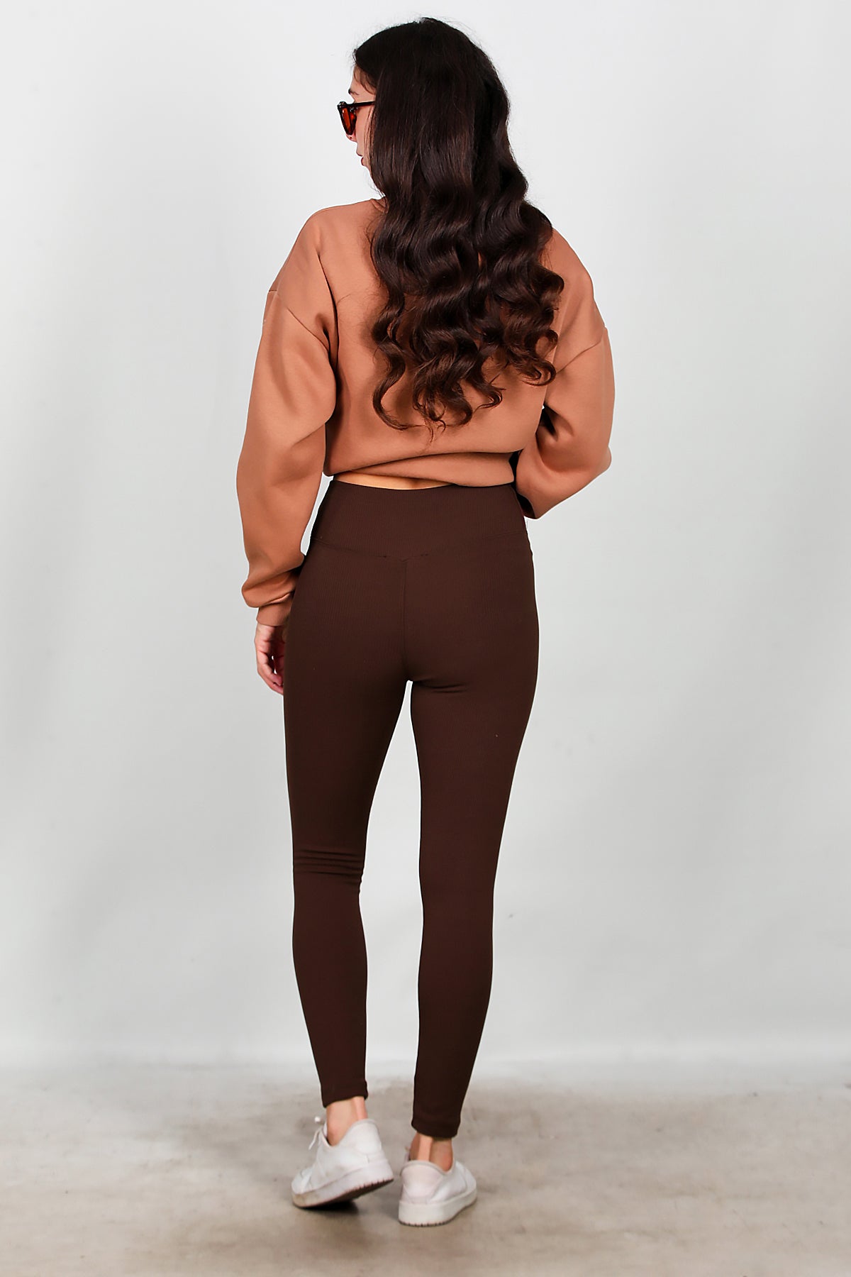 Kadın İçi Şardonlu Fitilli Tayt Kahverengi