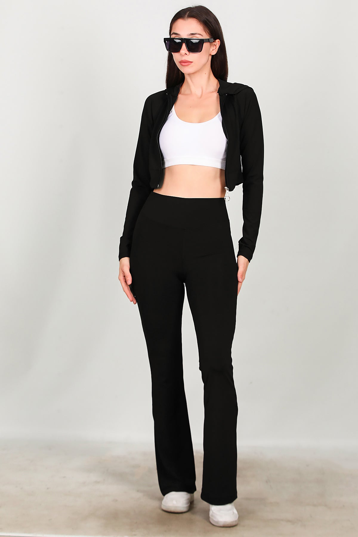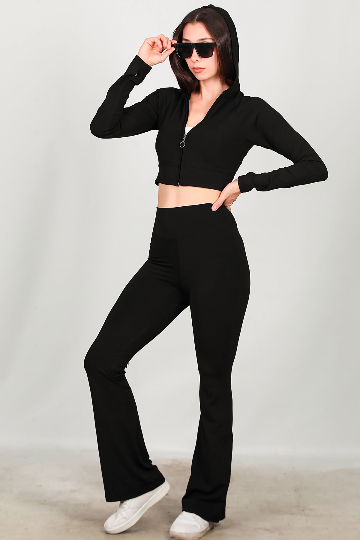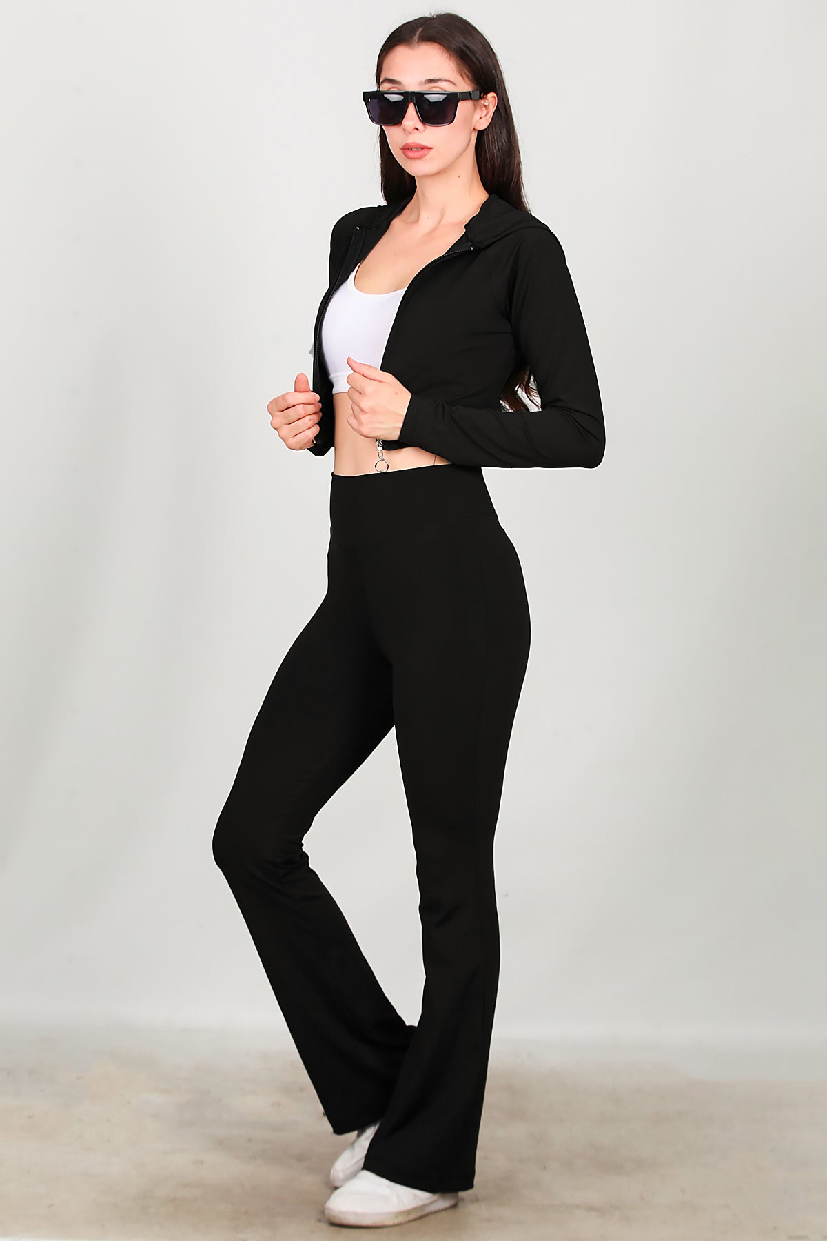 Kadın İspanyol Paça Taytlı İkili Takım Siyah