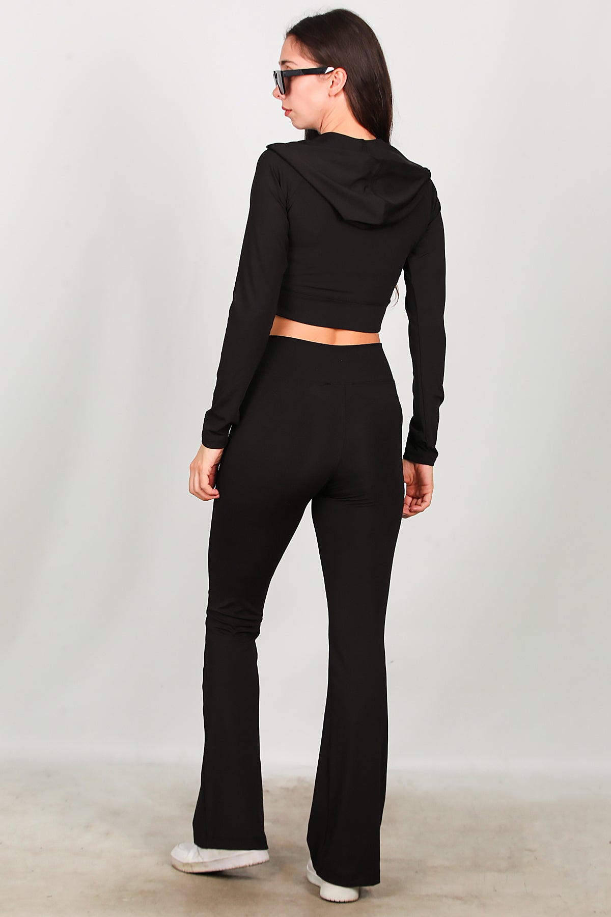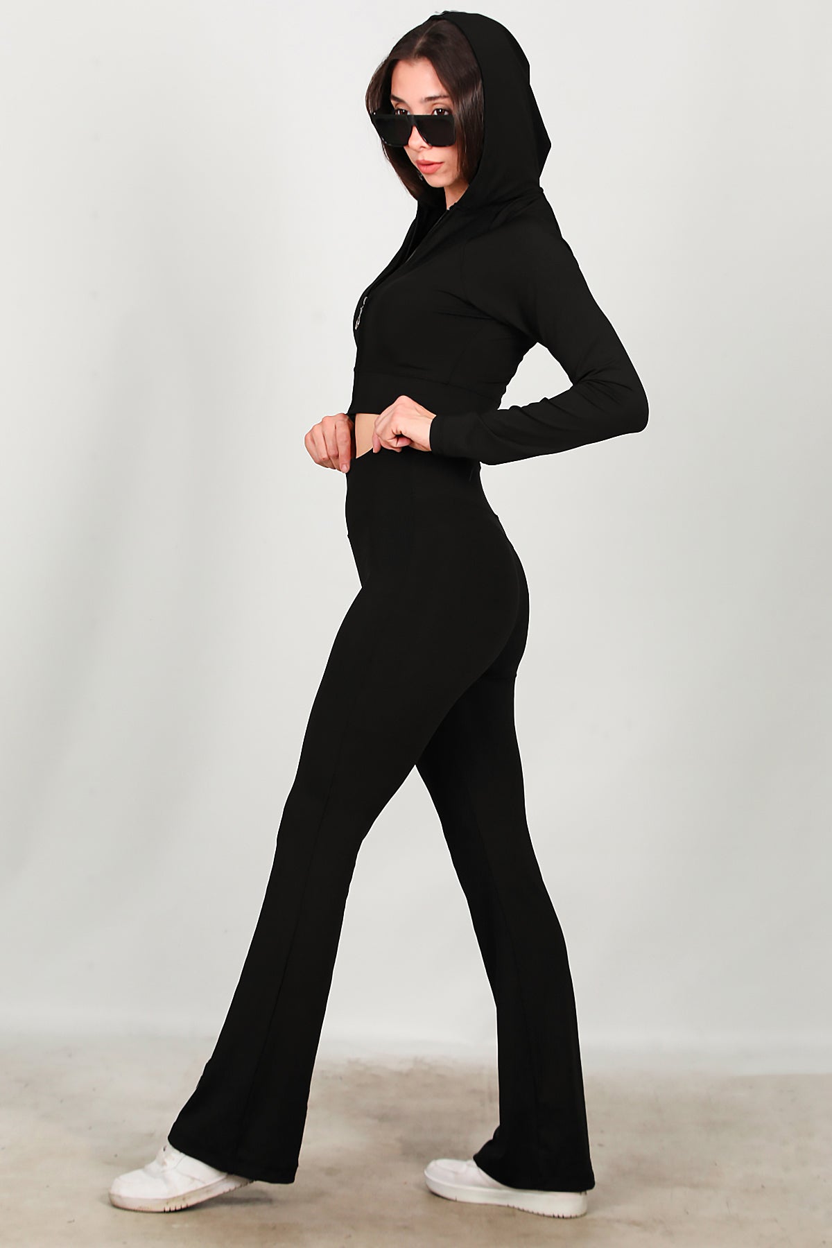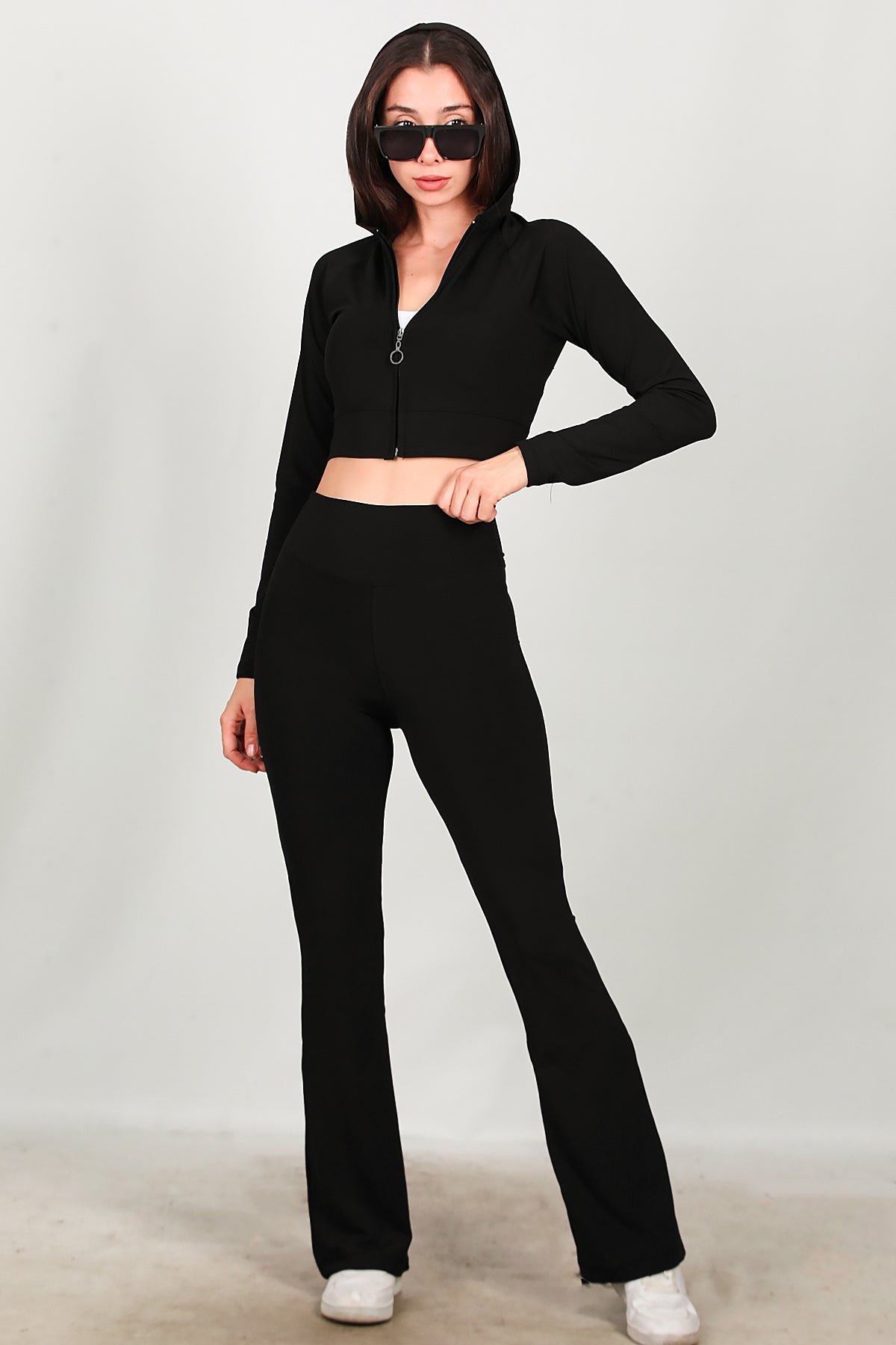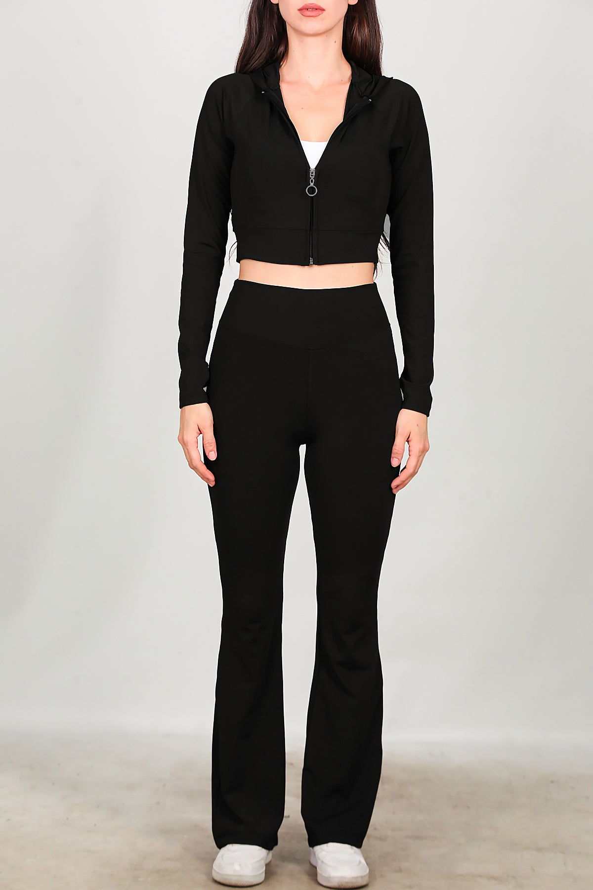 Kadın İspanyol Paça Taytlı İkili Takım Siyah