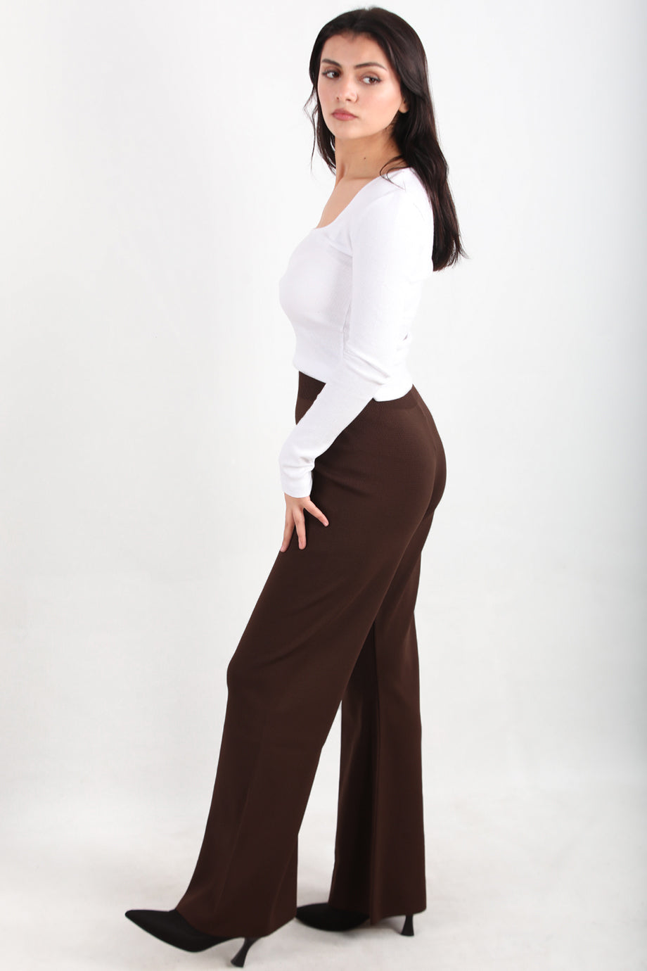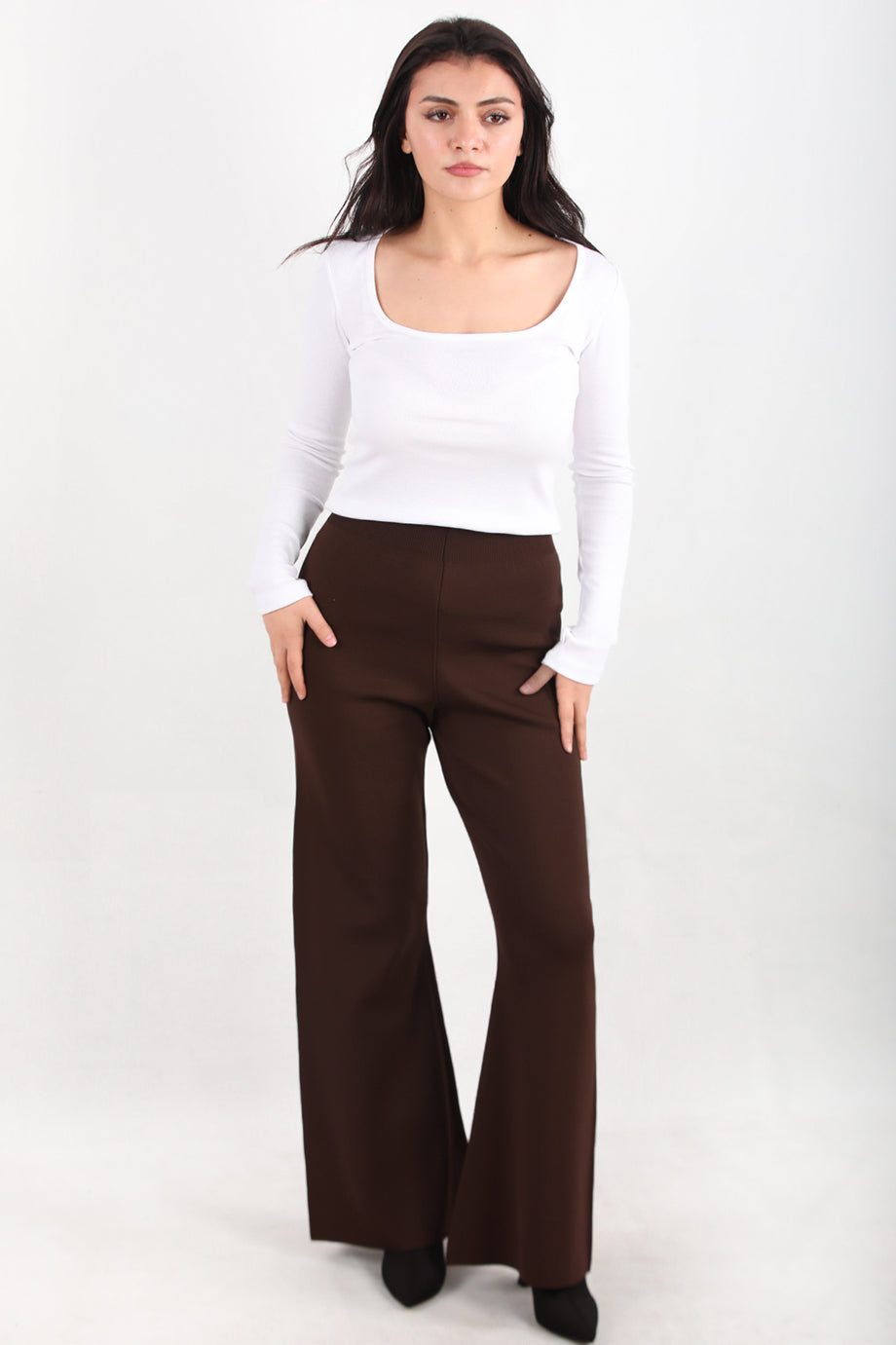 Flareknit Kadın İspanyol Paça Triko Pantolon Kahverengi