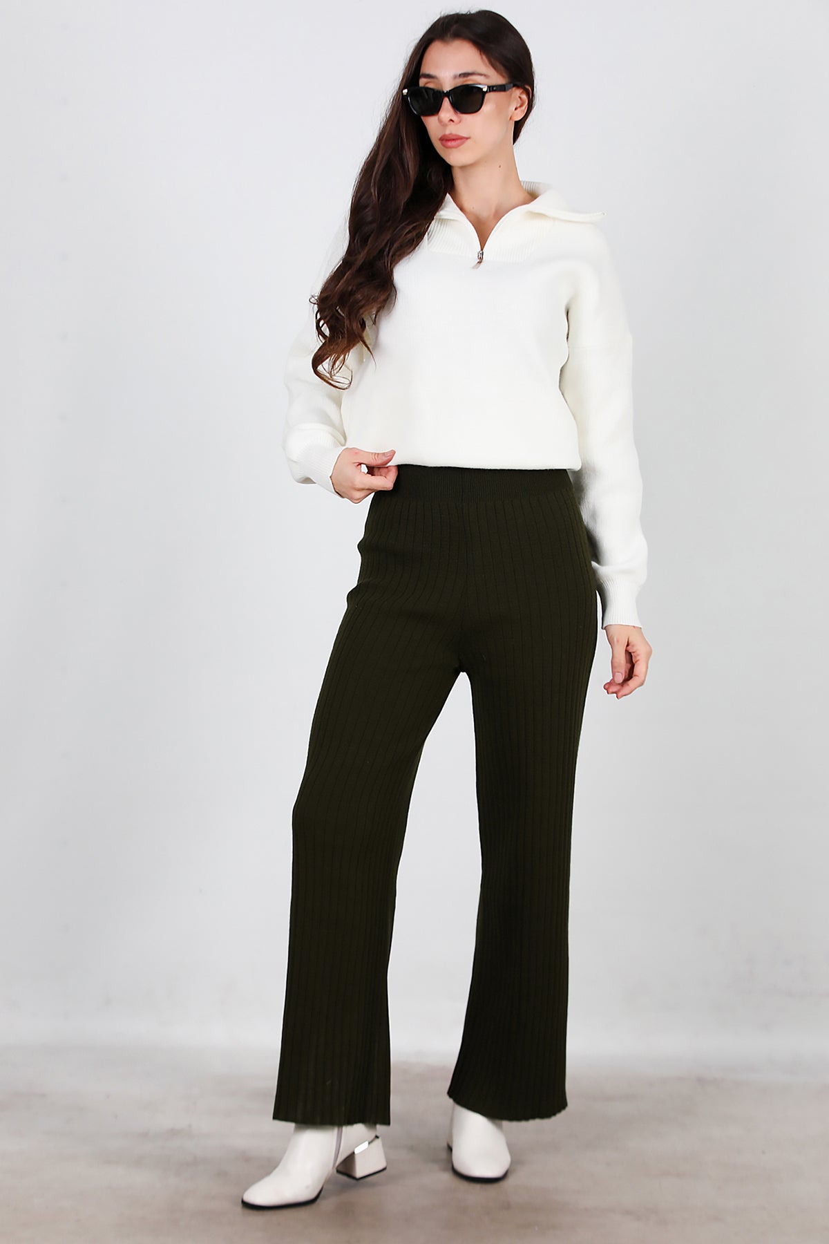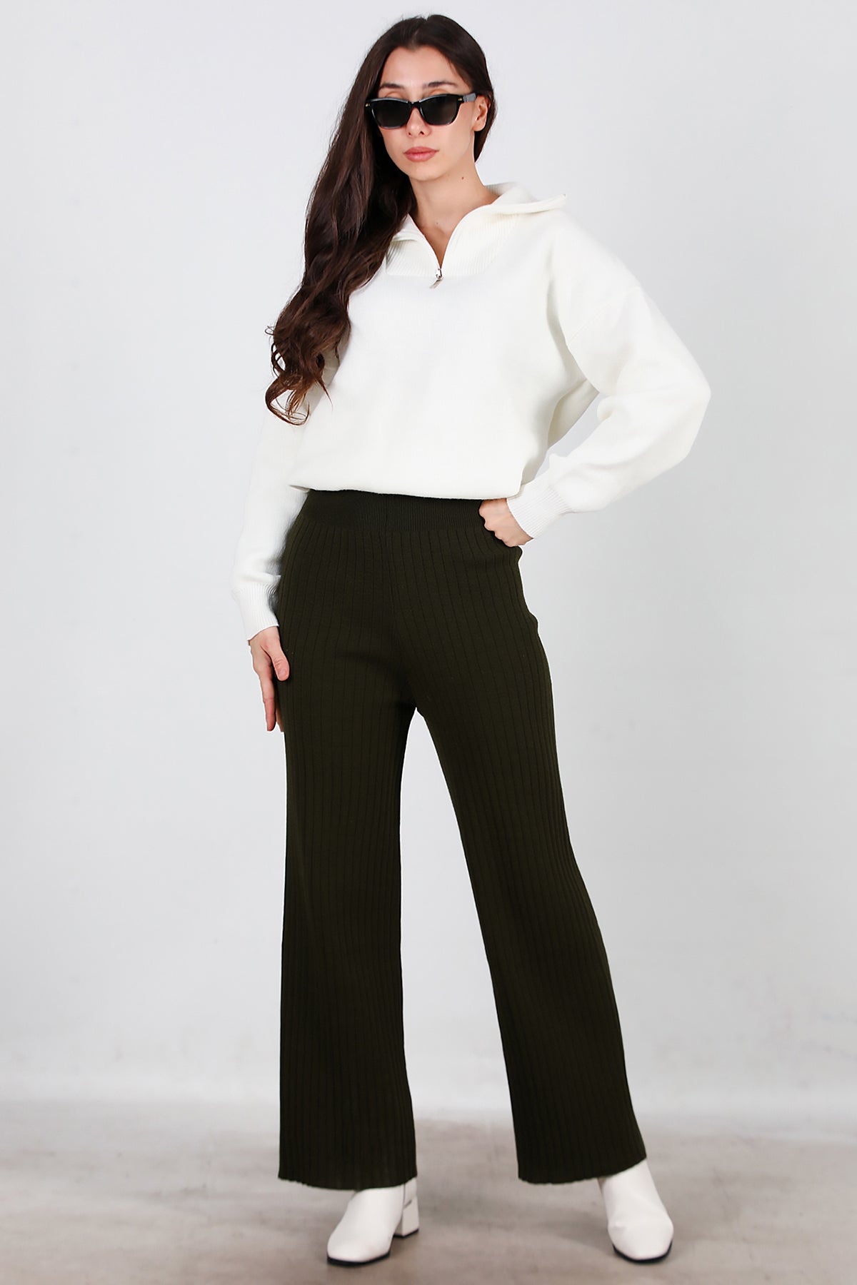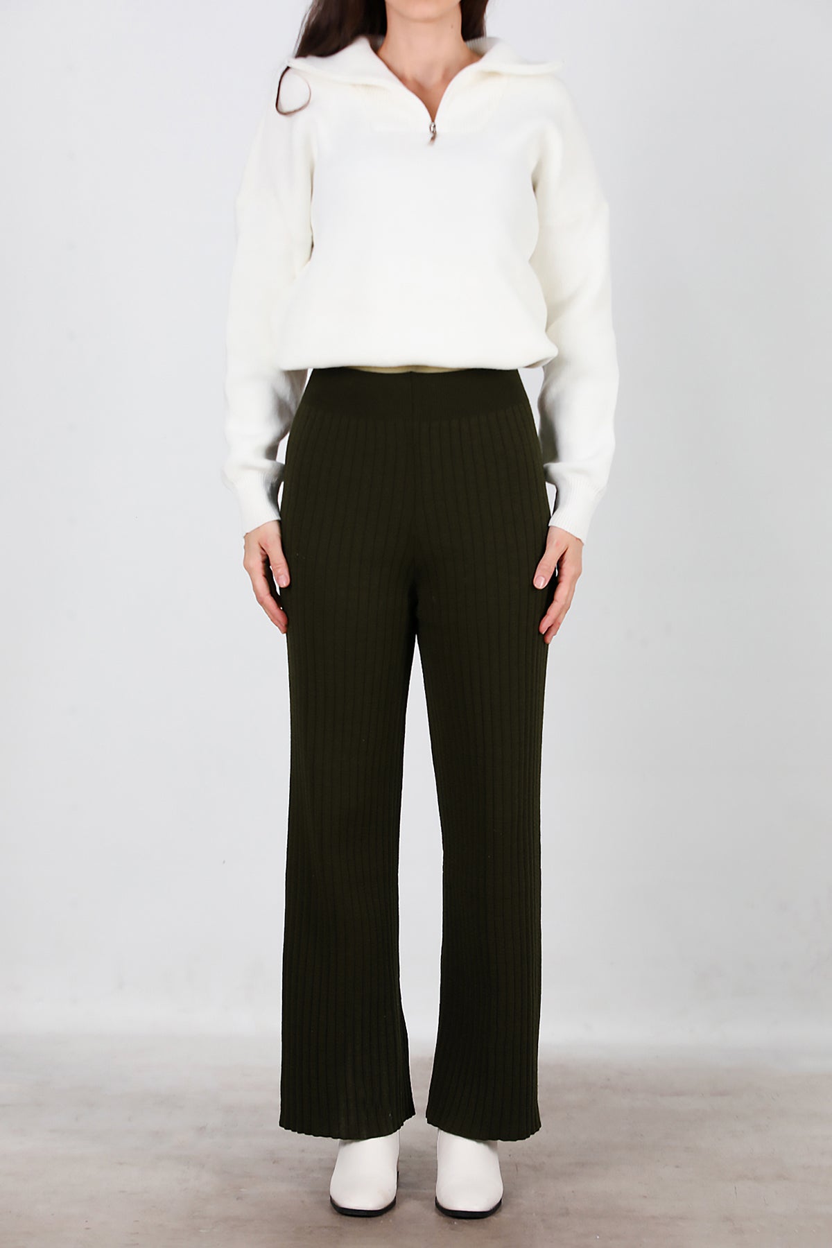 Kadın Kalın Fitilli Triko Pantolon Haki