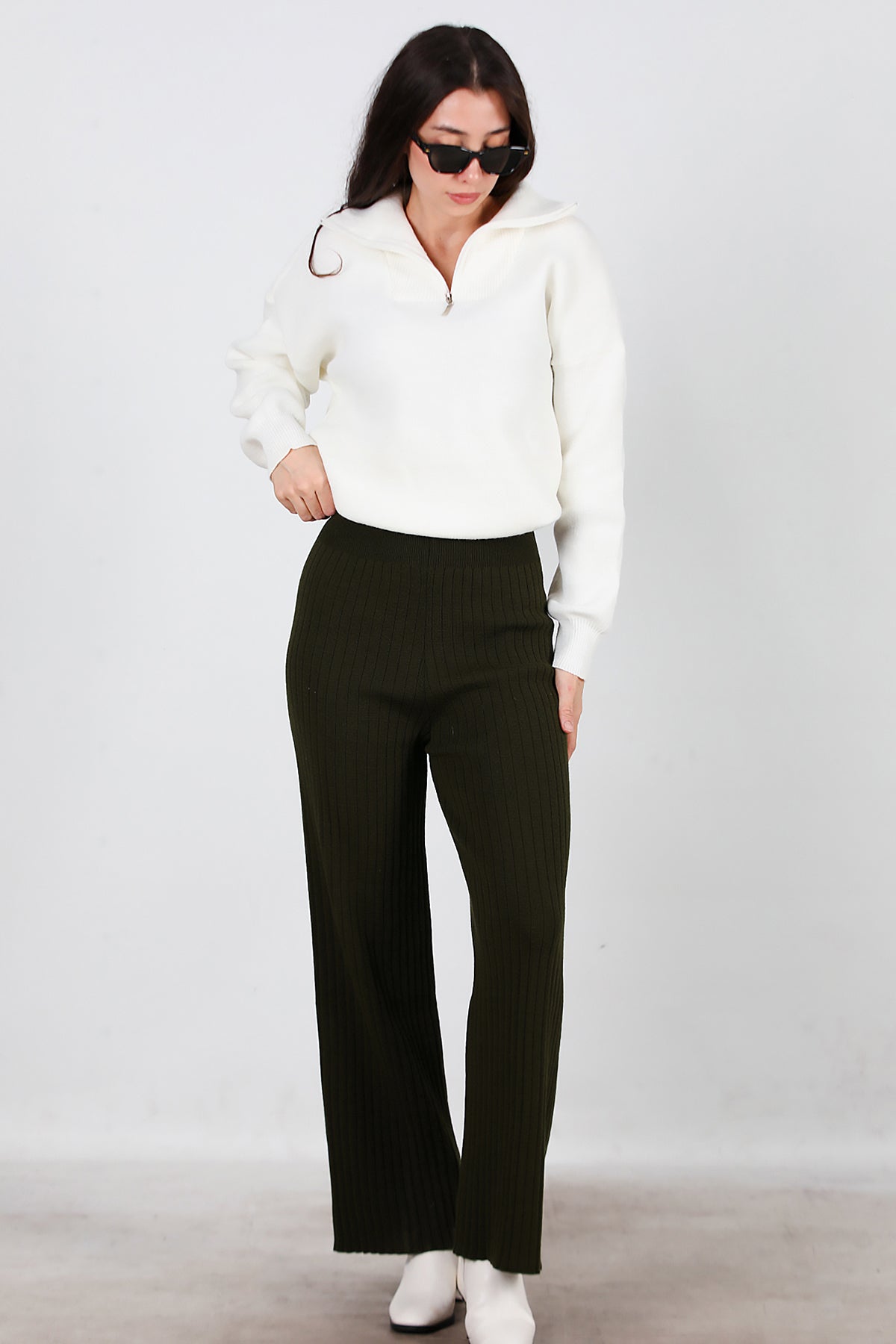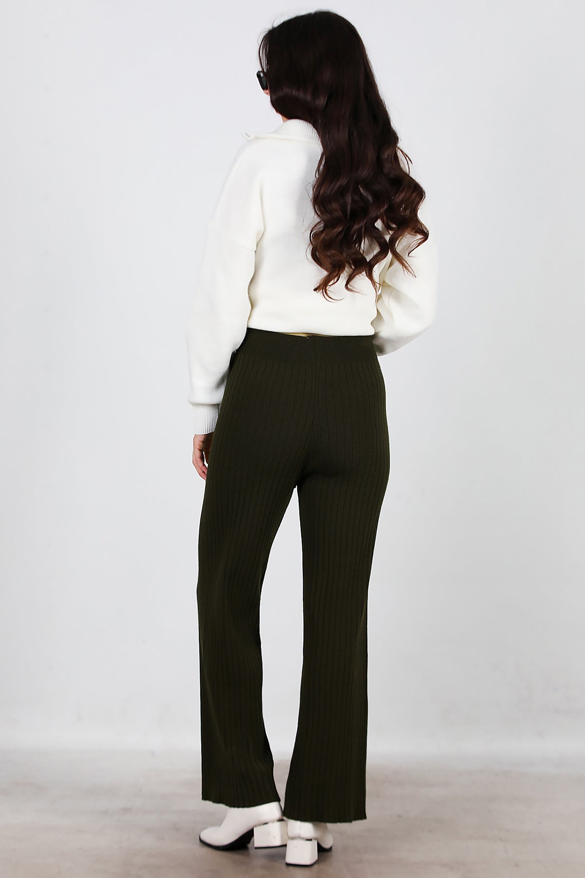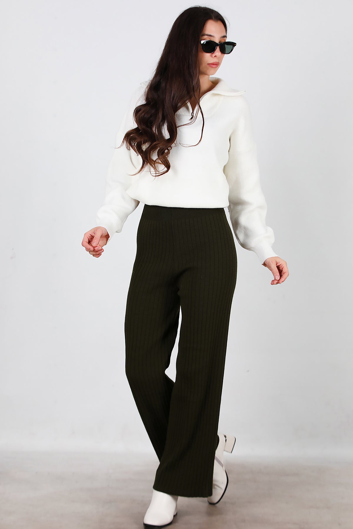 Kadın Kalın Fitilli Triko Pantolon Haki