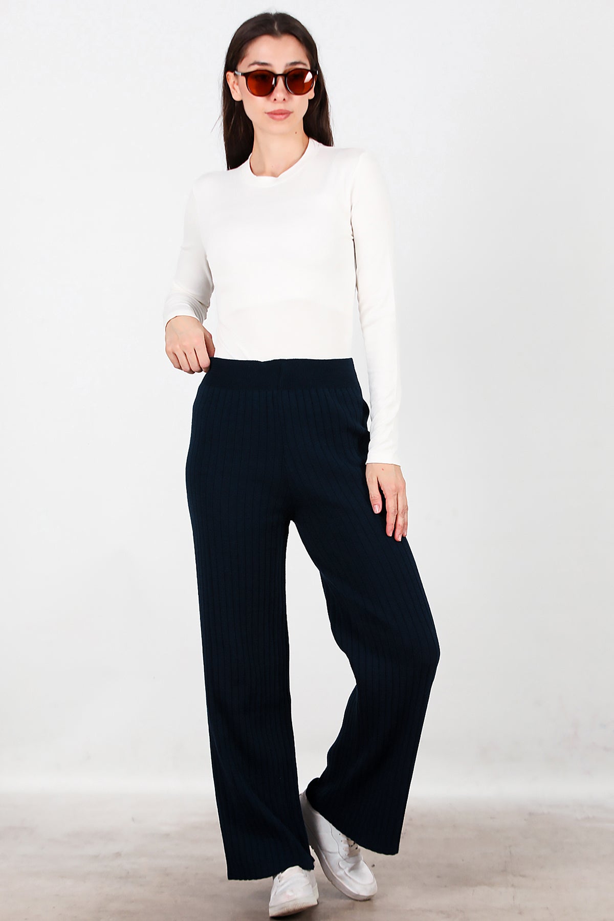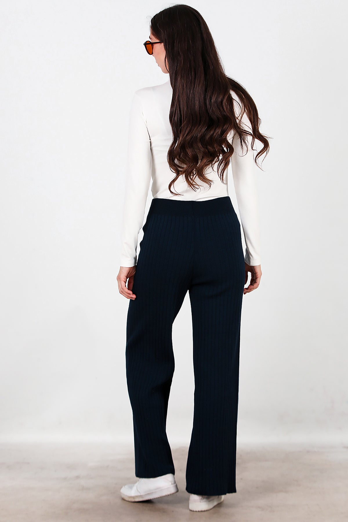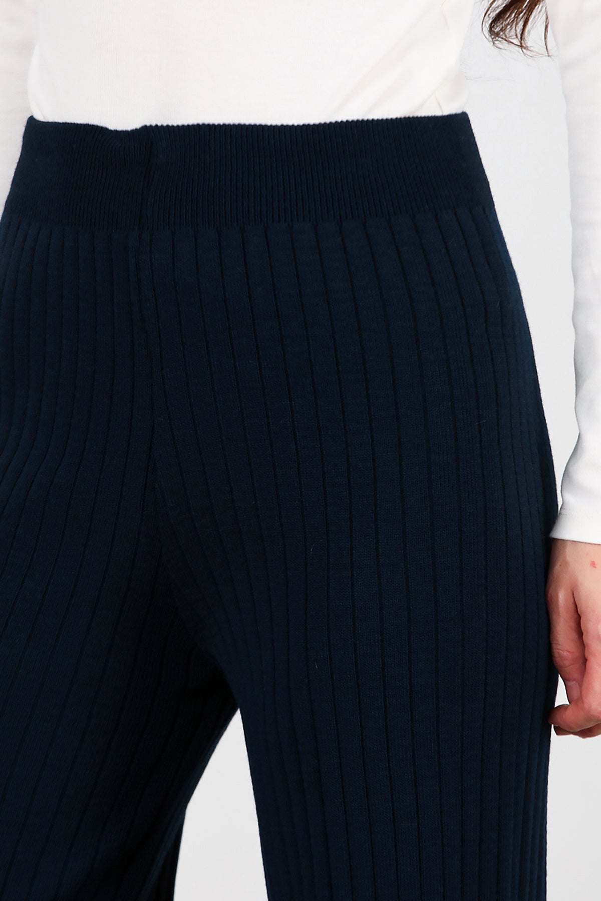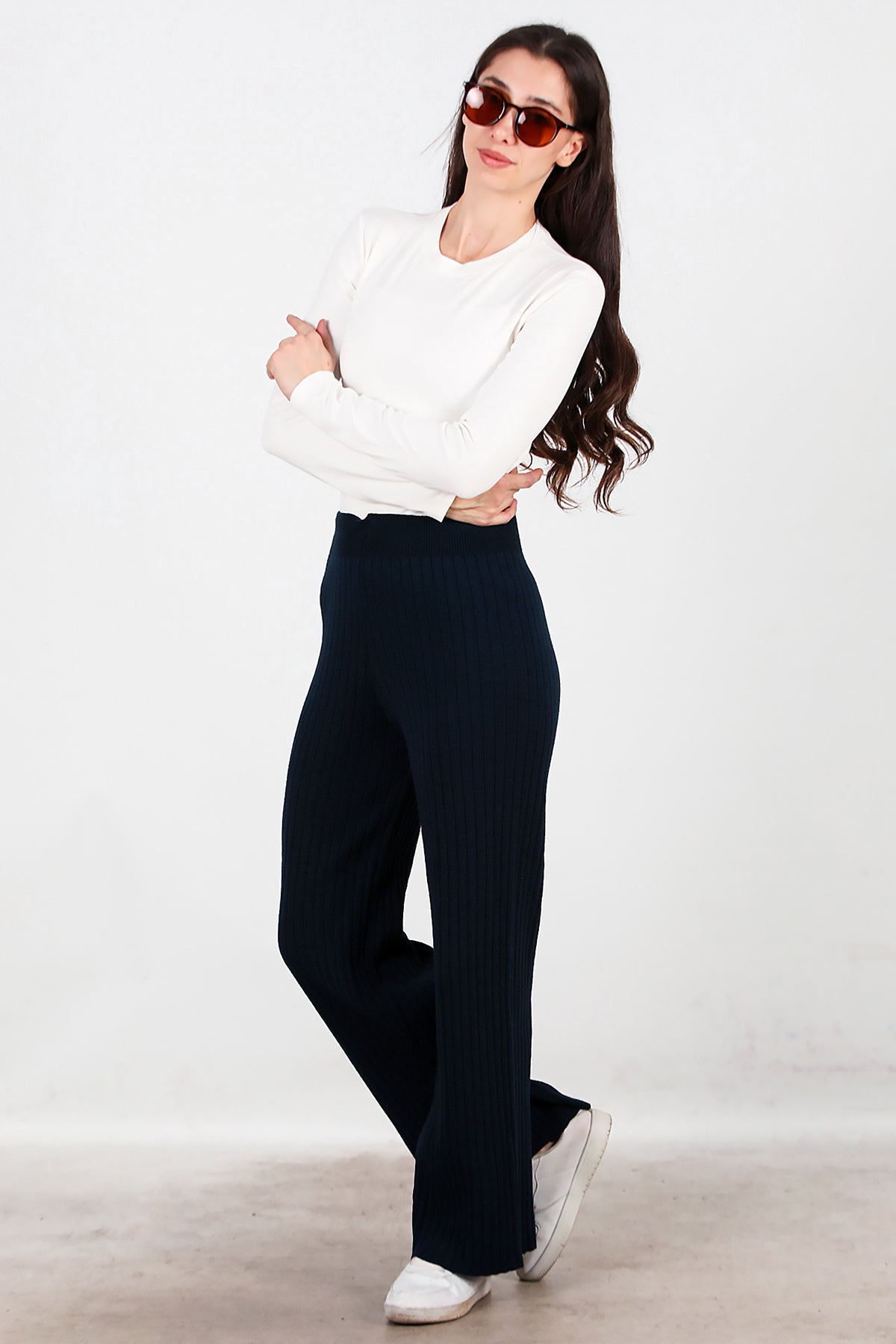 Kadın Kalın Fitilli Triko Pantolon Lacivert