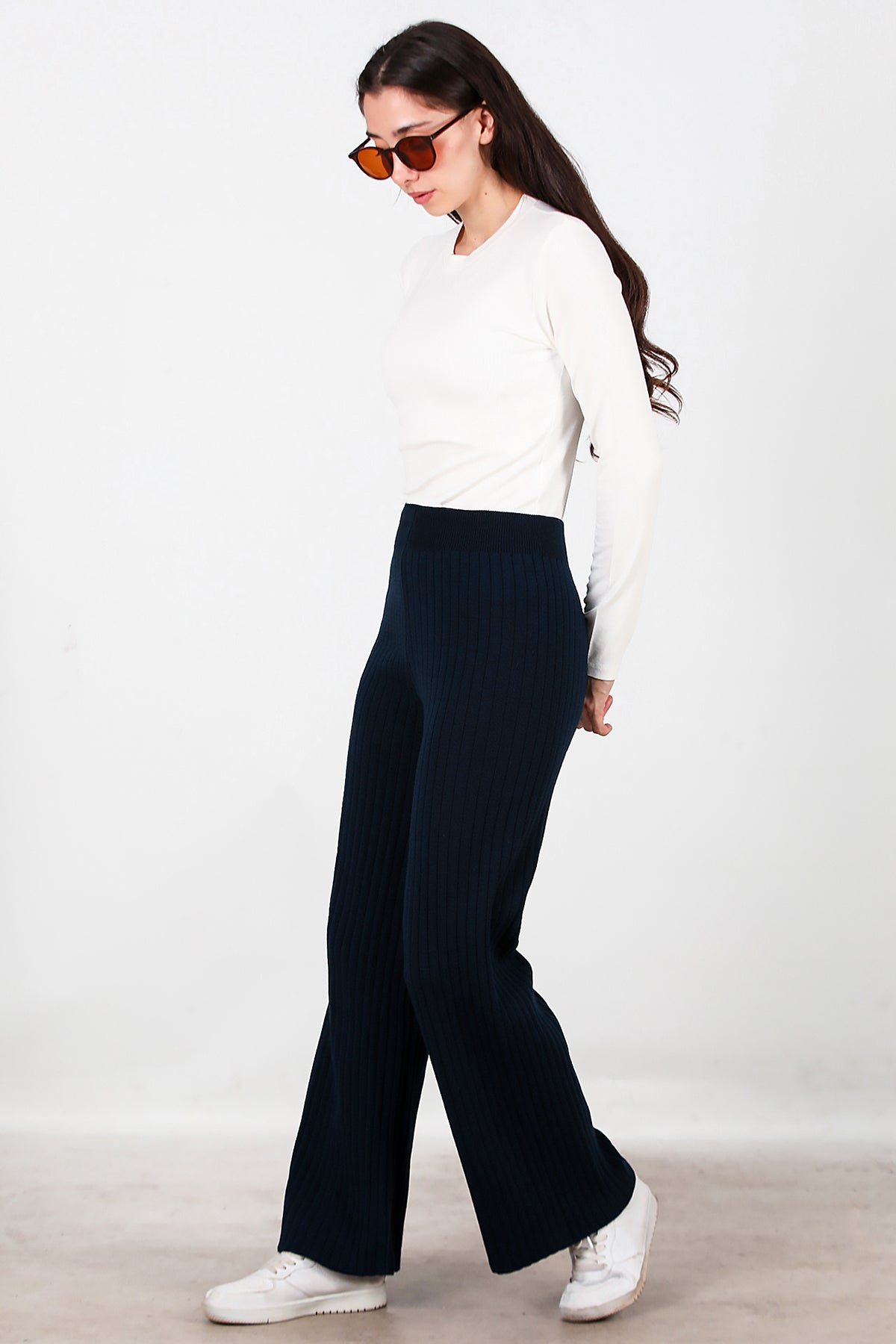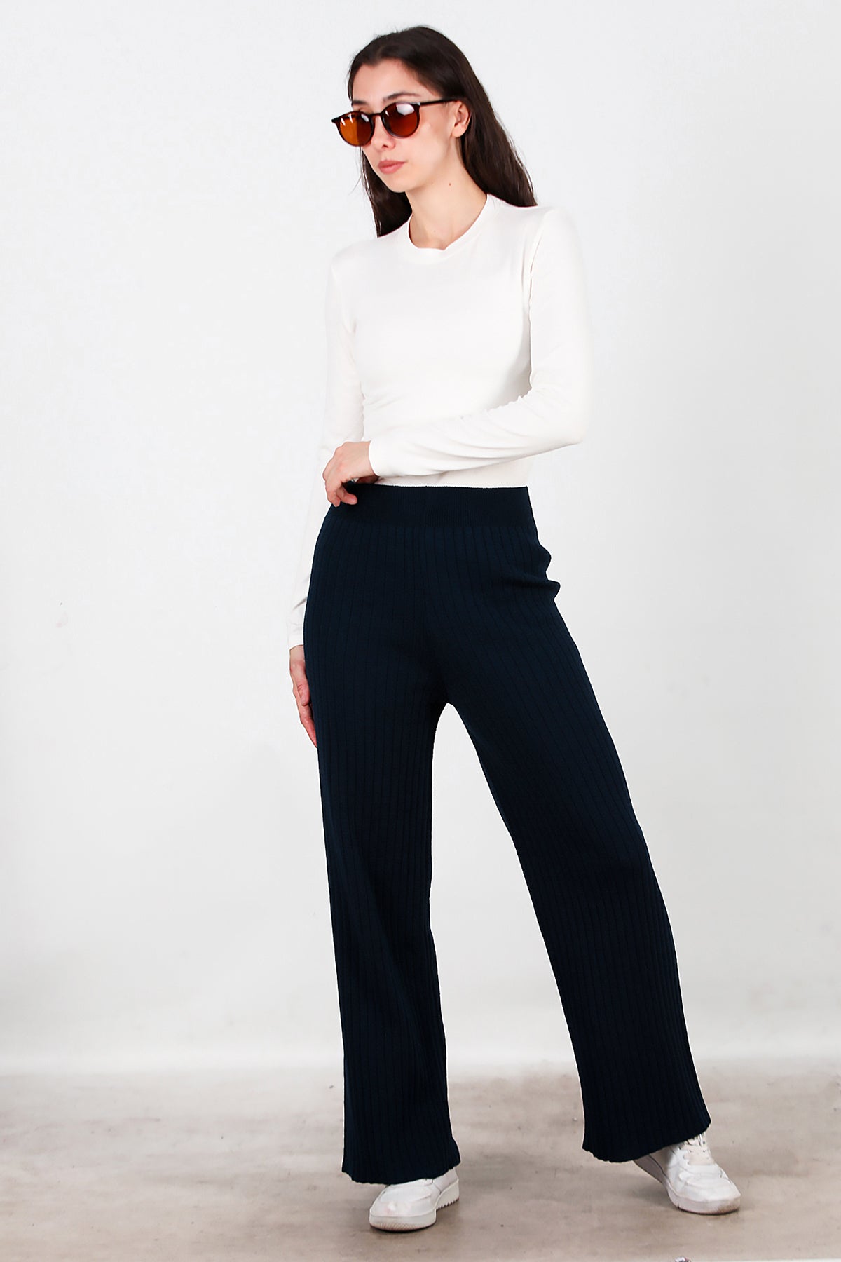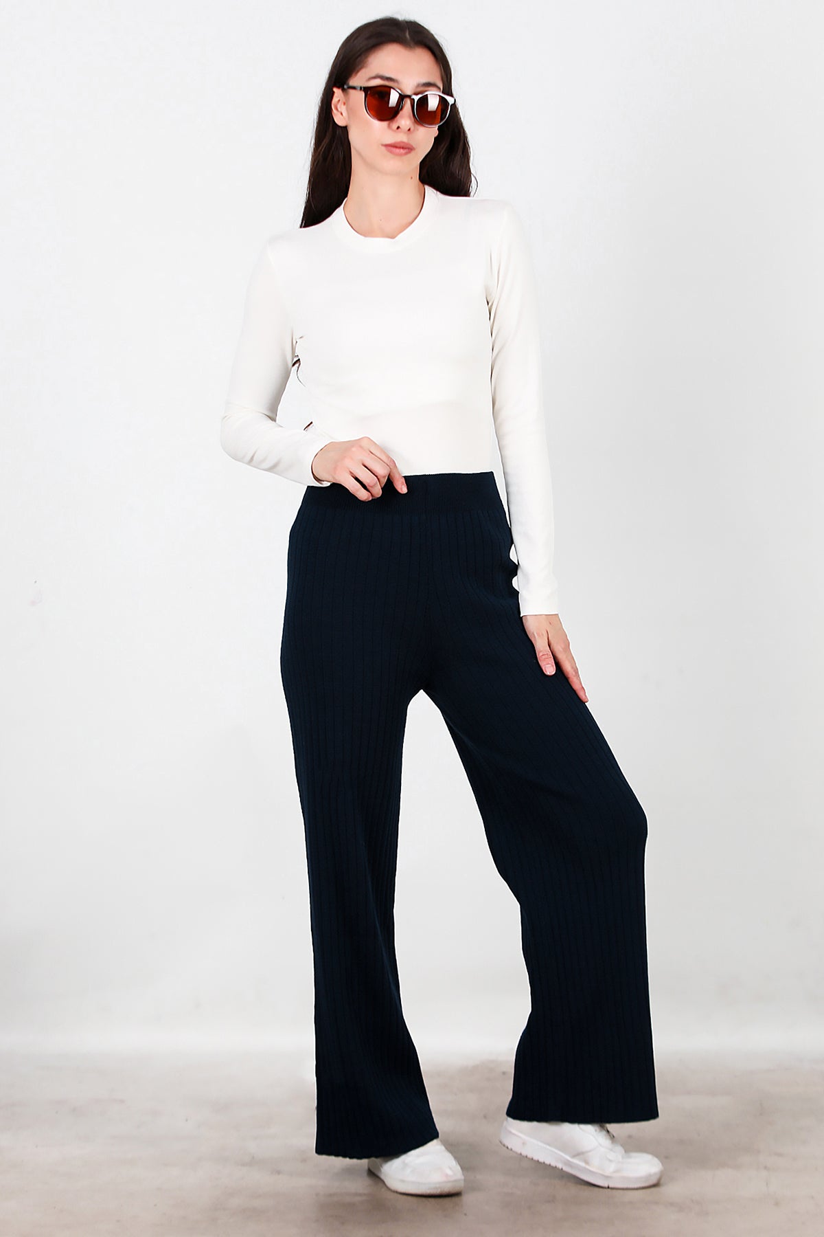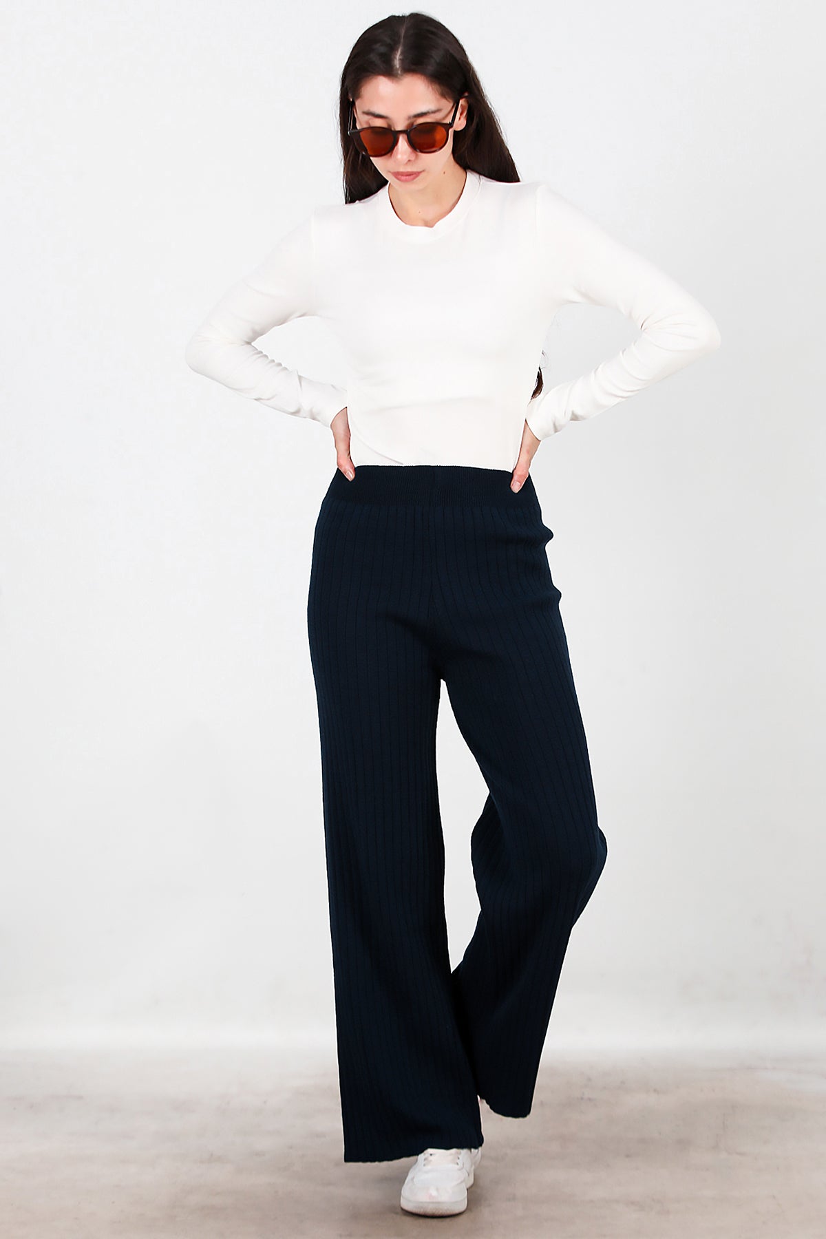 Kadın Kalın Fitilli Triko Pantolon Lacivert