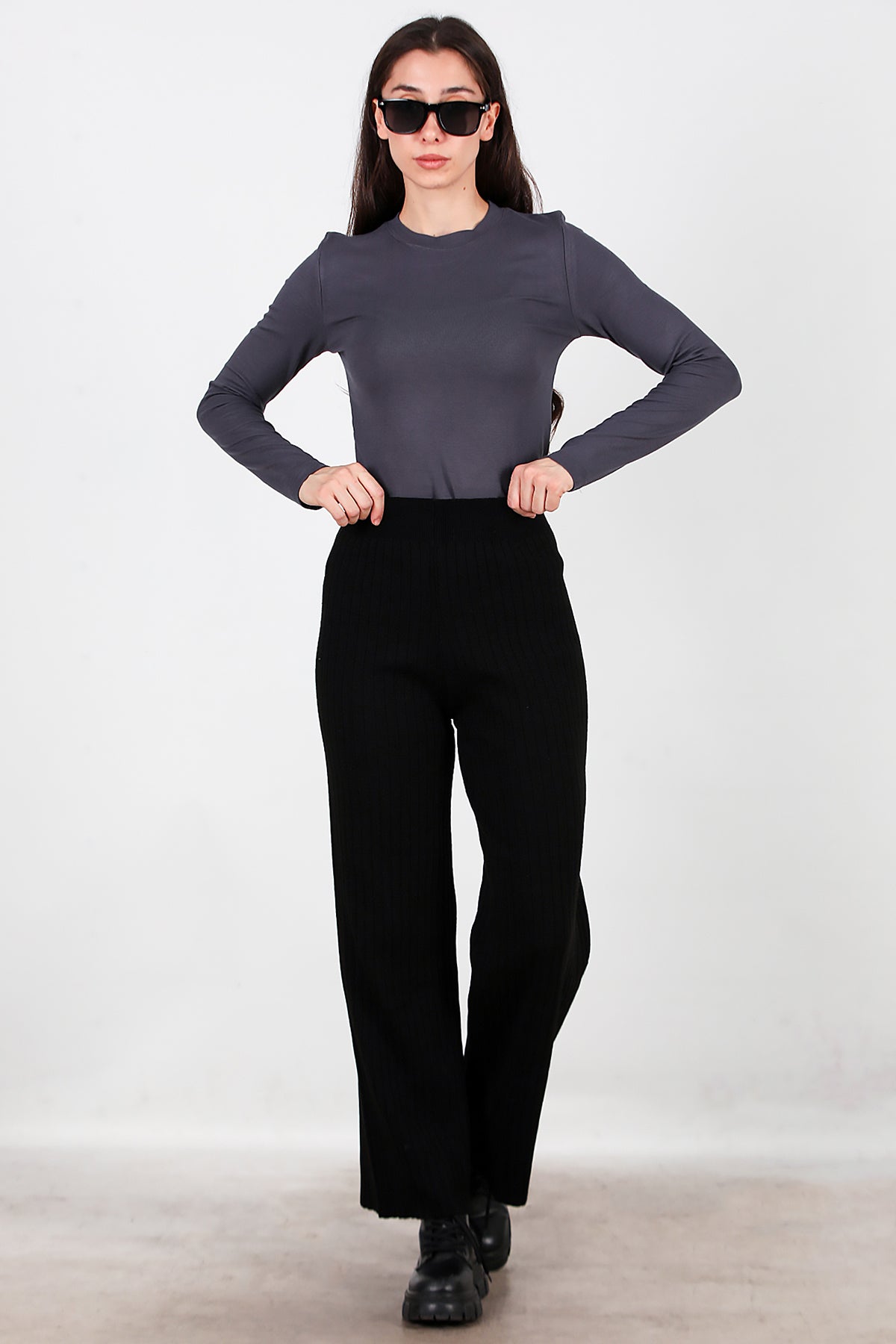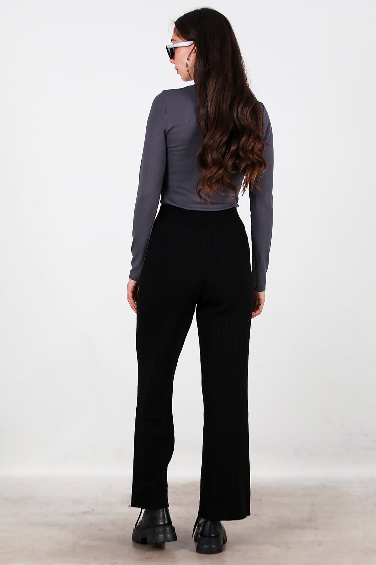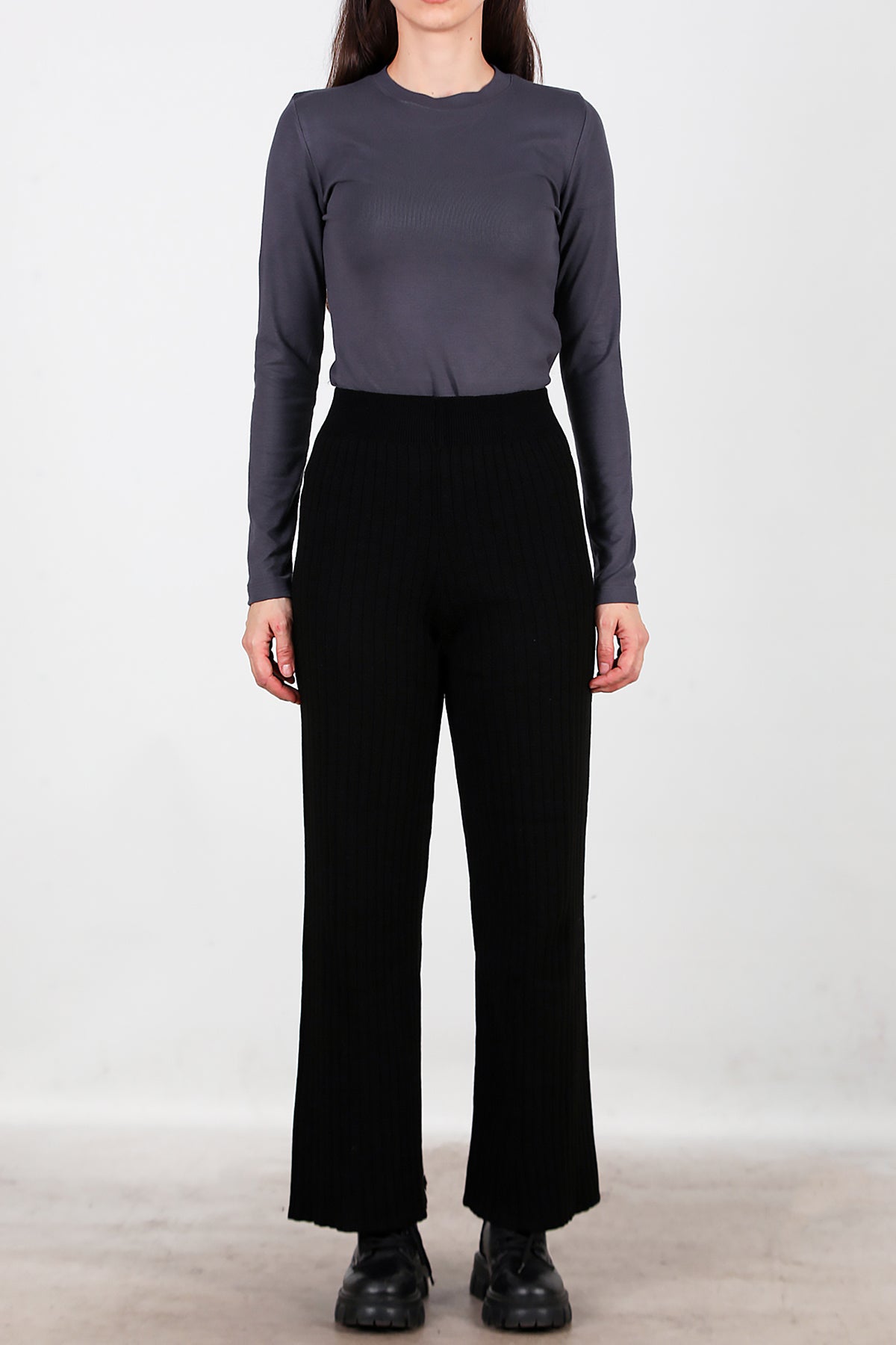 Kadın Kalın Fitilli Triko Pantolon Siyah