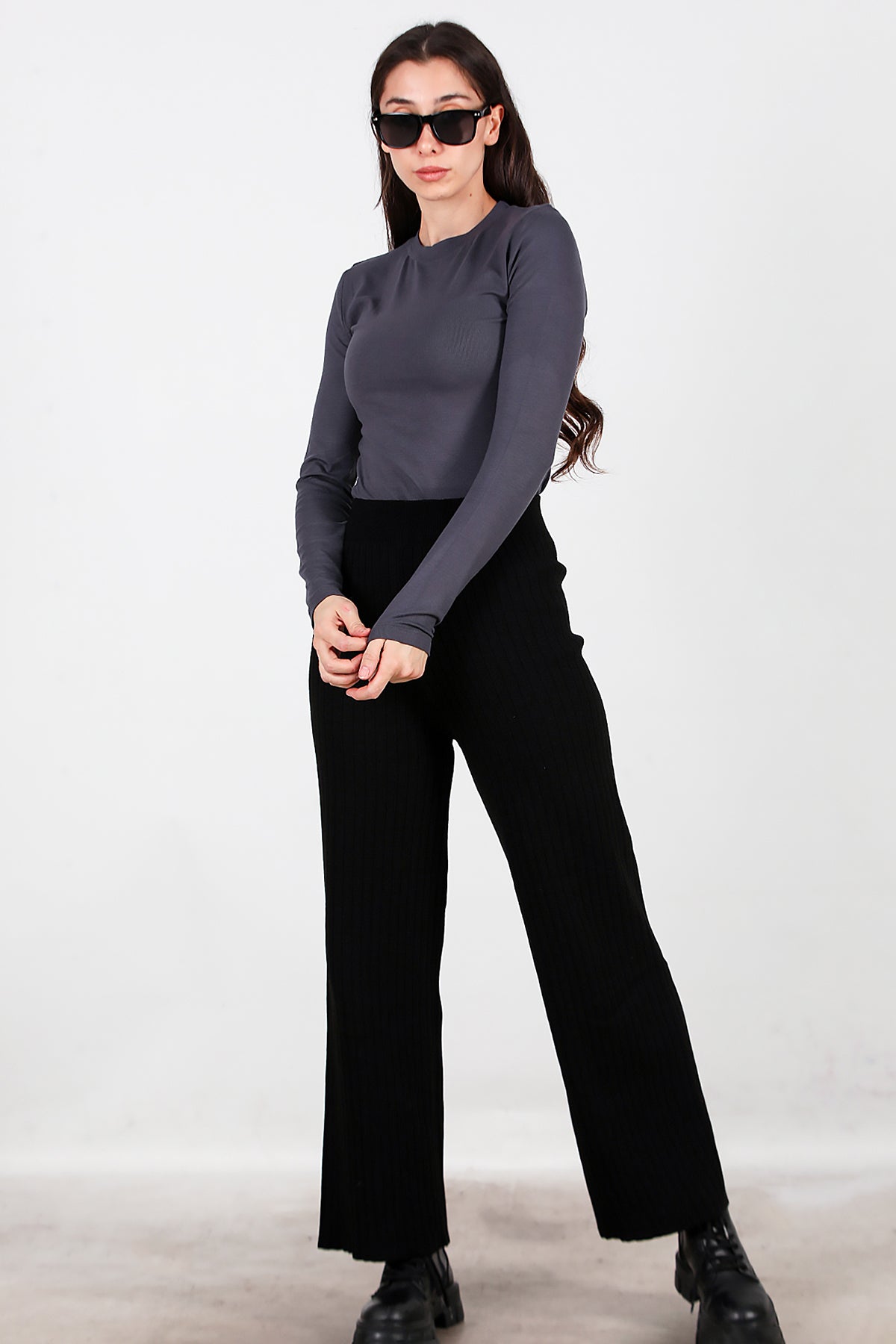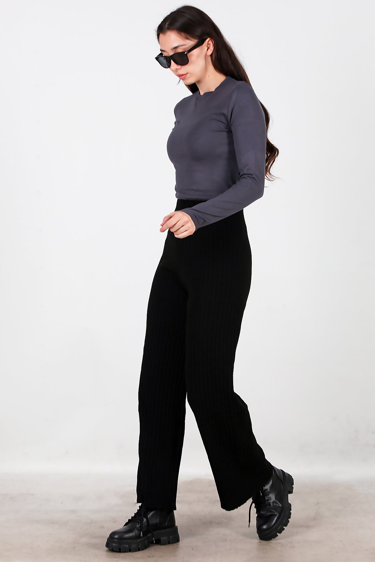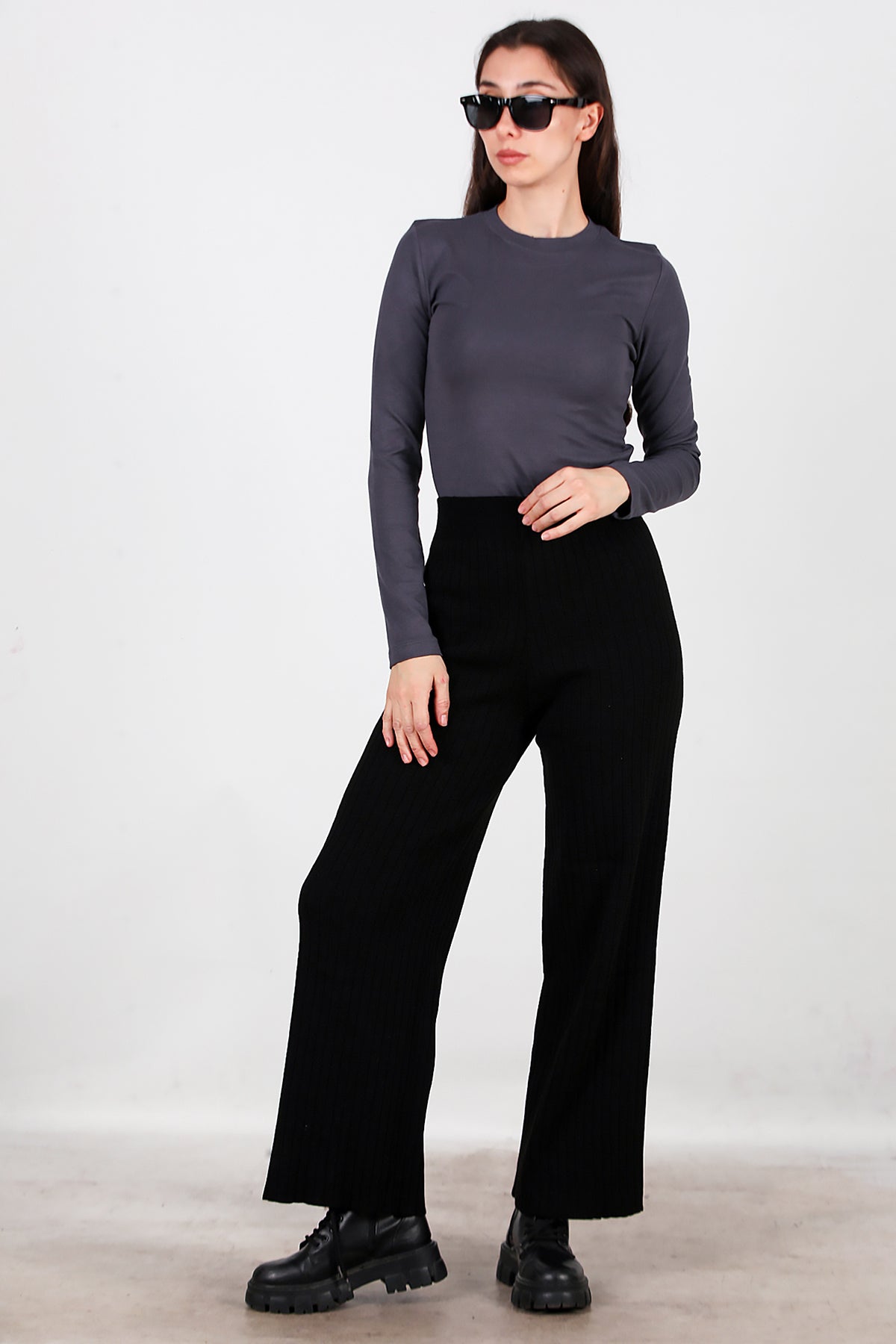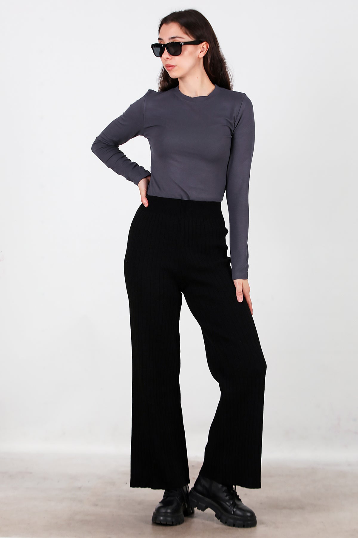 Kadın Kalın Fitilli Triko Pantolon Siyah