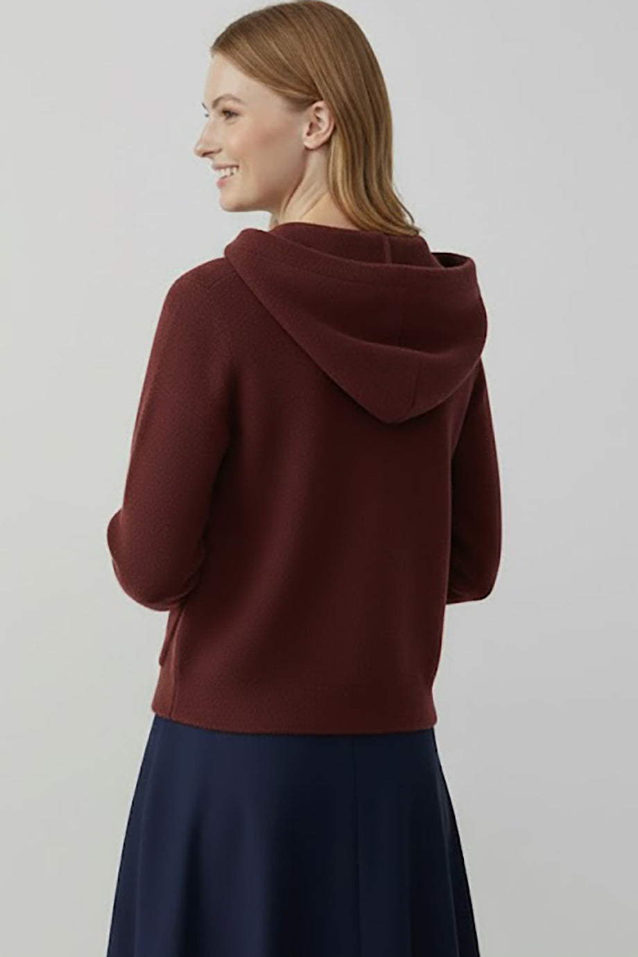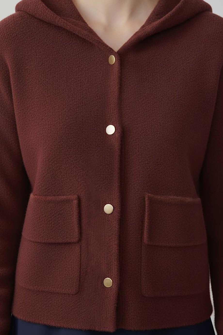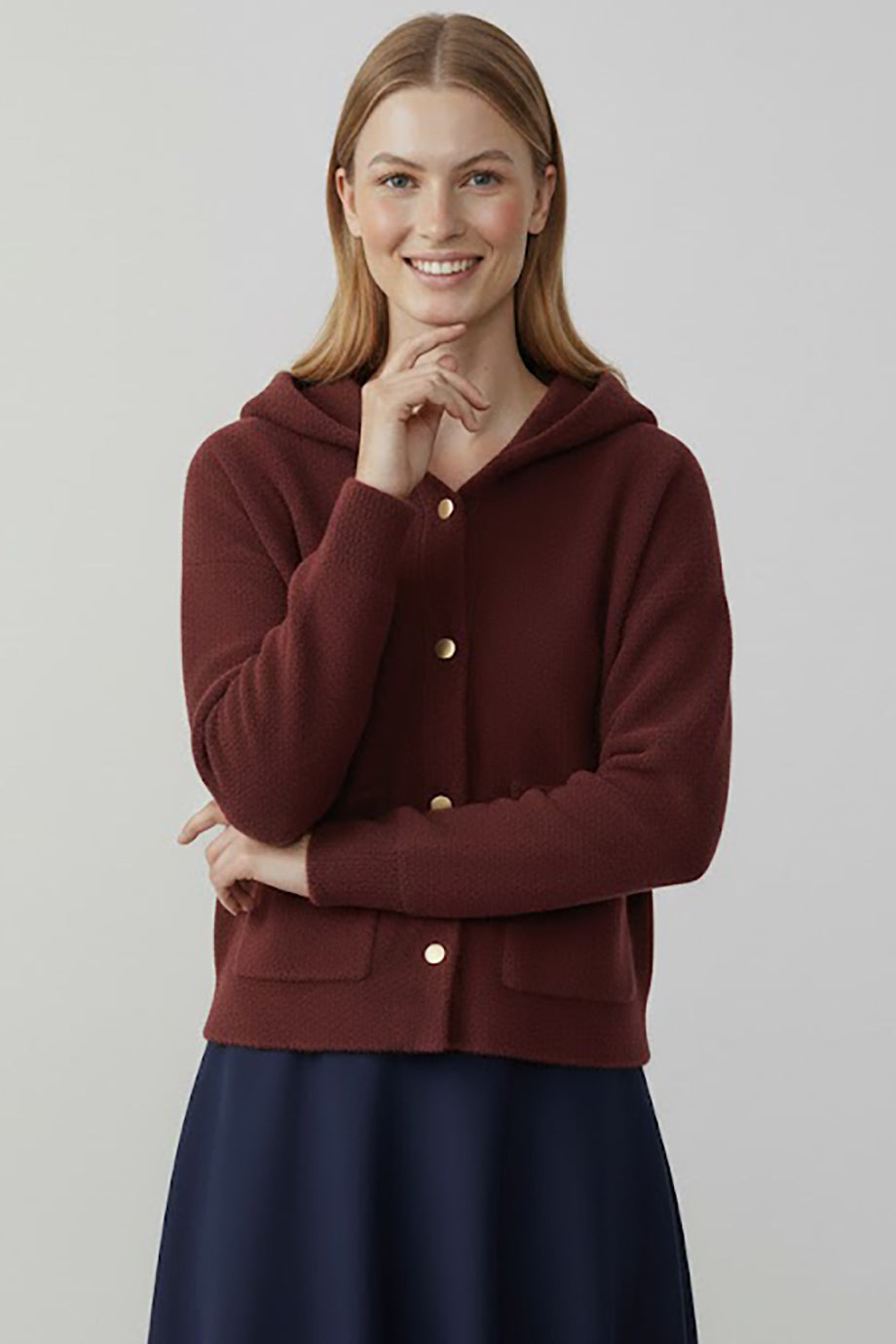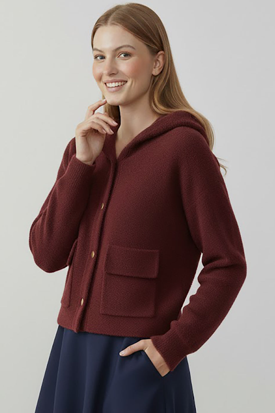 Fluffcardy Kadın Kapşonlu Ön Düğmeli Sakallı Hırka Bordo