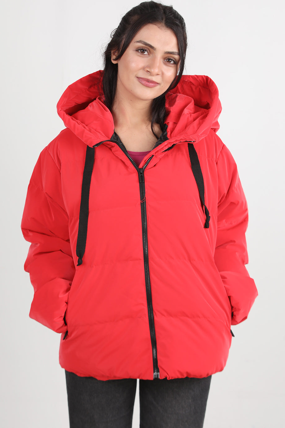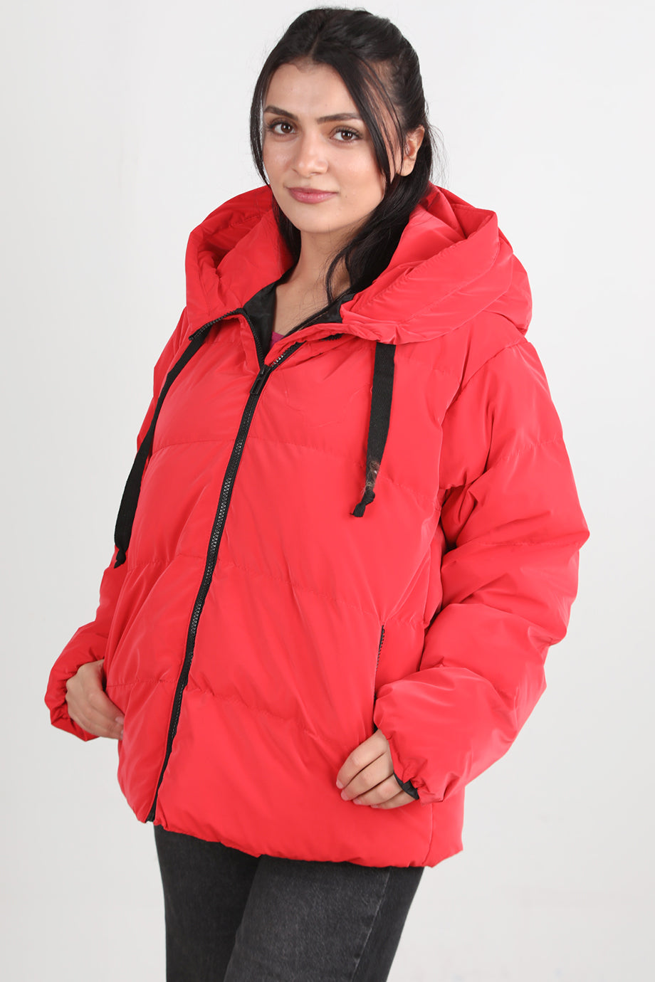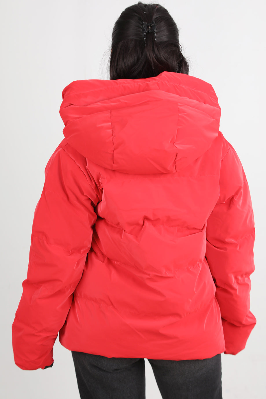 Glowhood Kadın Kapşonlu Parlak Mont Kırmızı