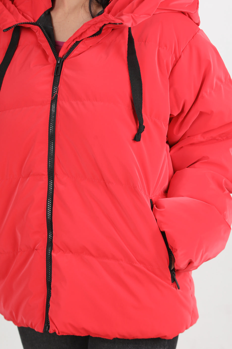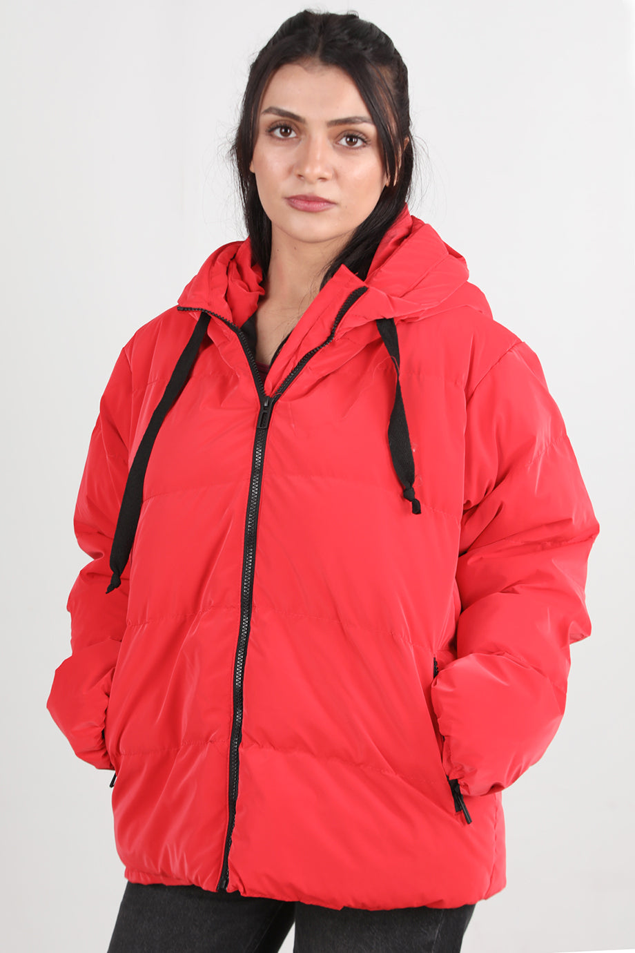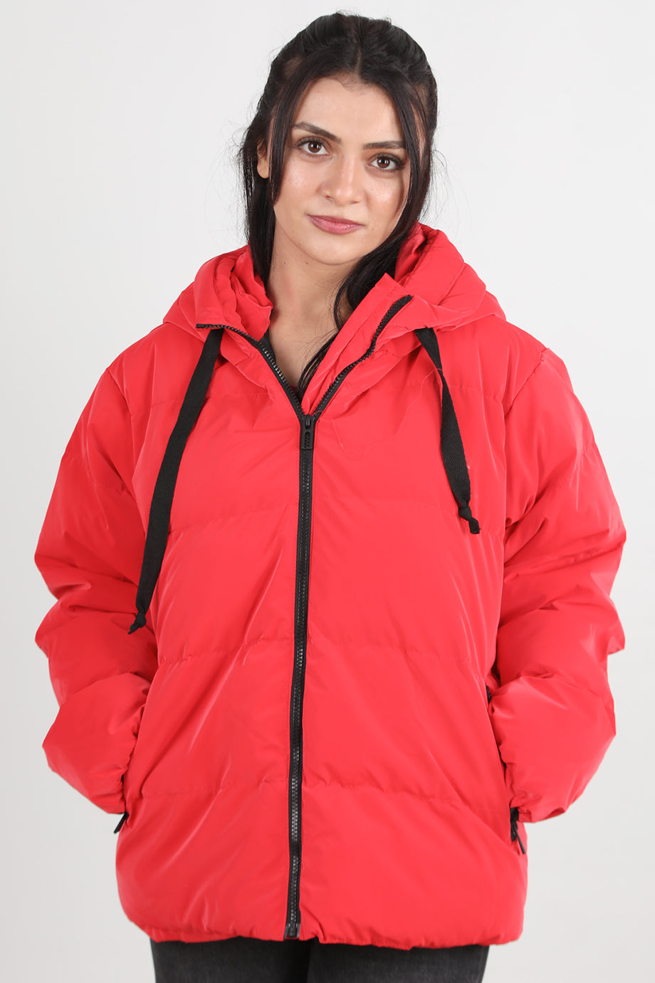 Glowhood Kadın Kapşonlu Parlak Mont Kırmızı
