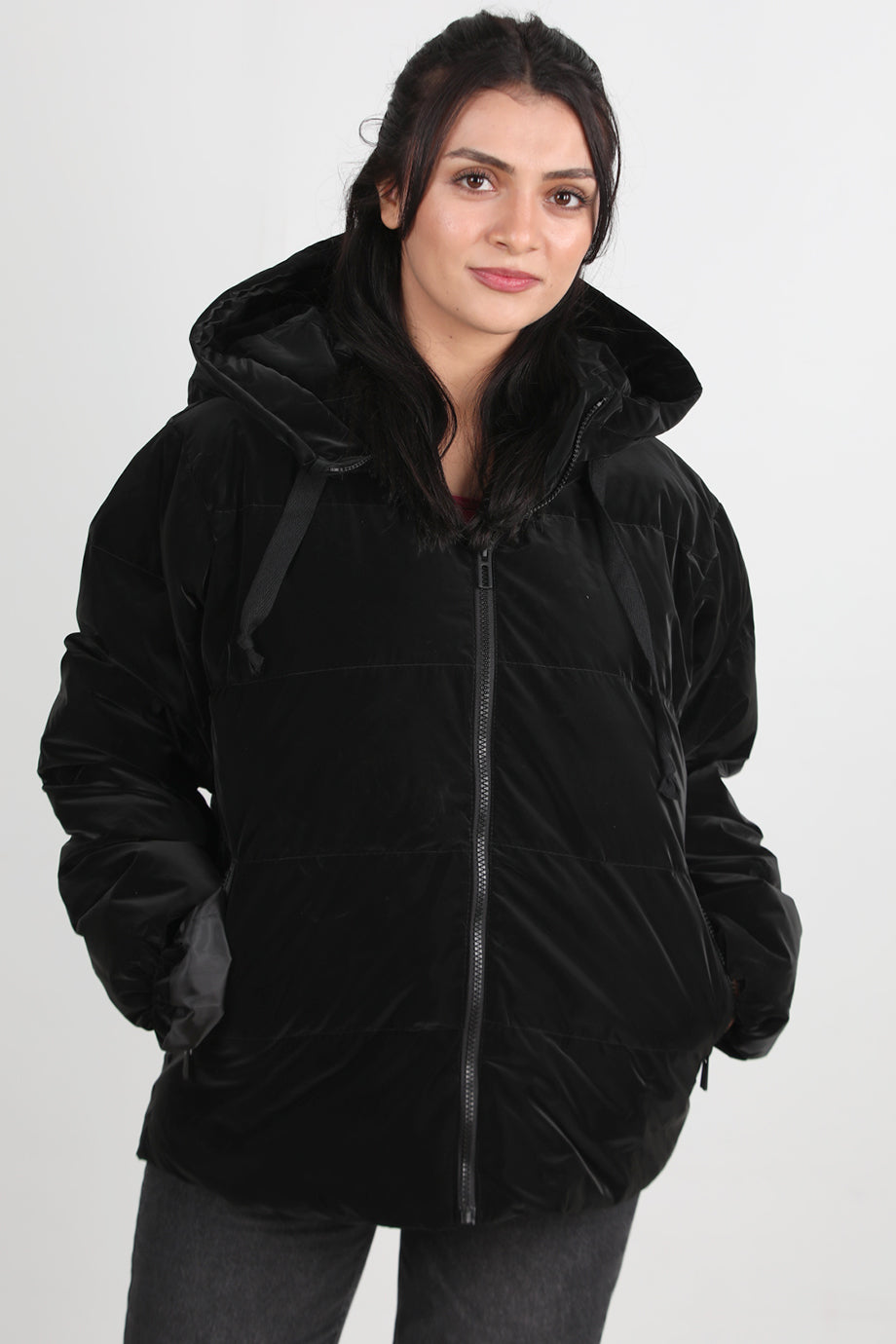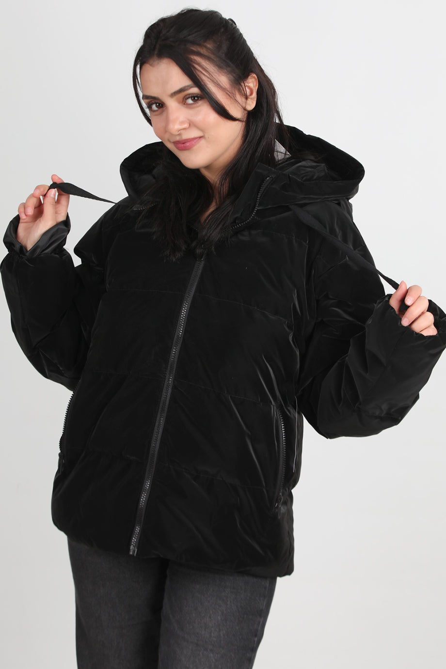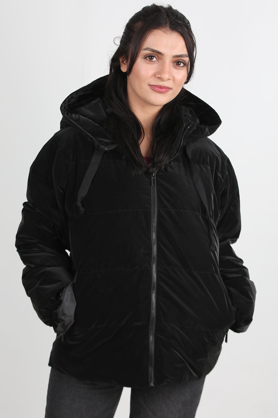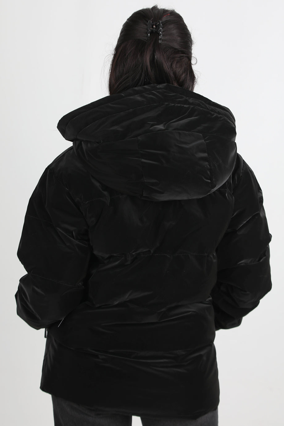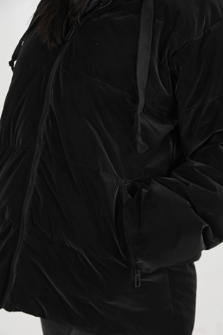 Glowhood Kadın Kapşonlu Parlak Mont Siyah